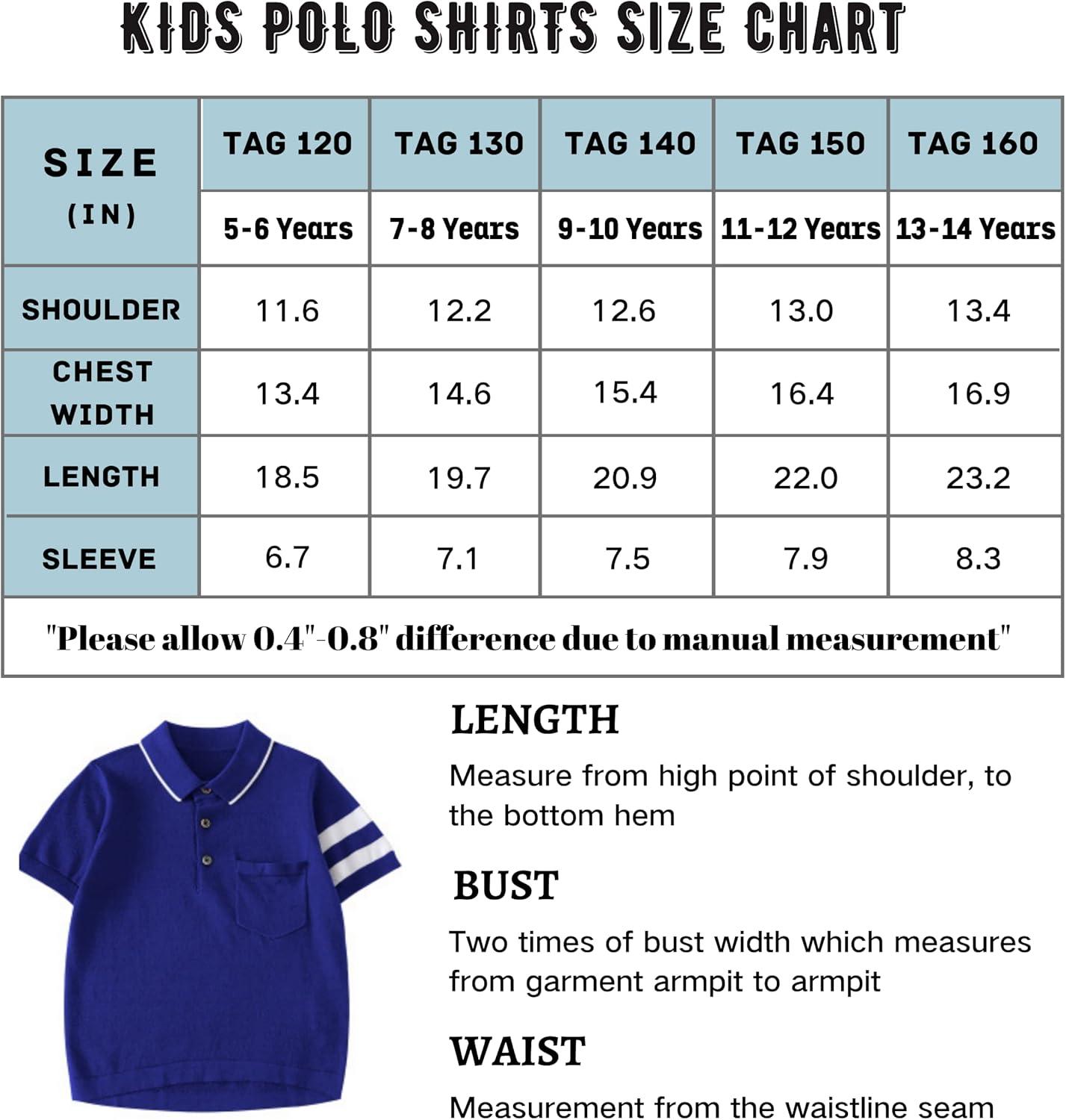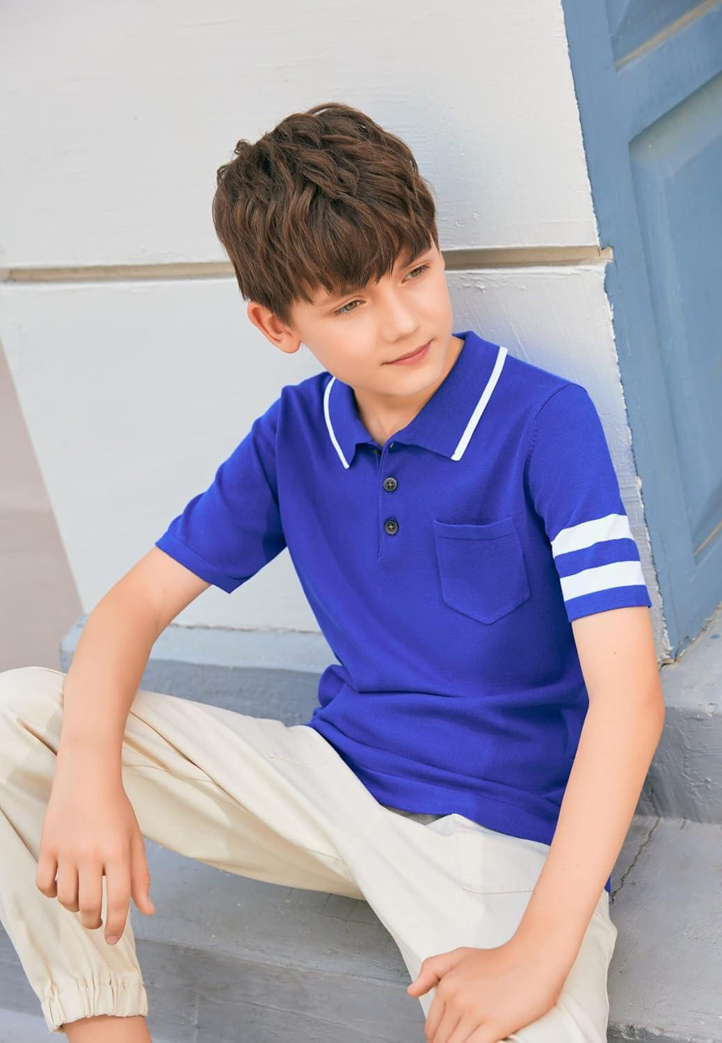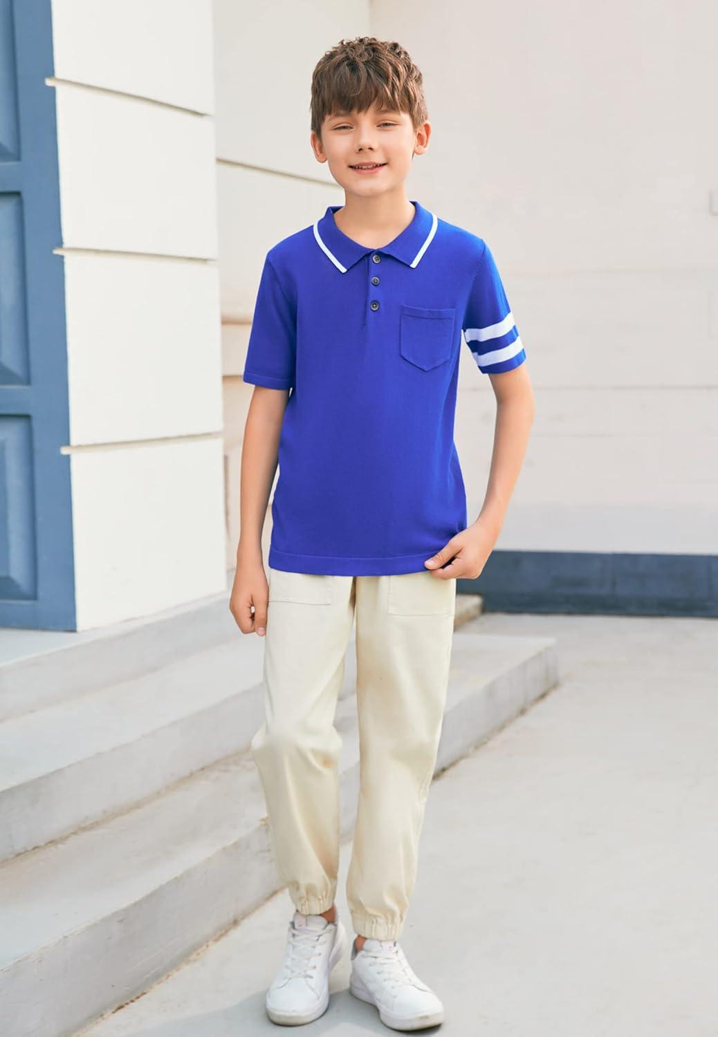 Boys Short Sleeve Knit Polo Shirts Kids School Uniform Casual Striped Polo T-Shirts 5-14 Years