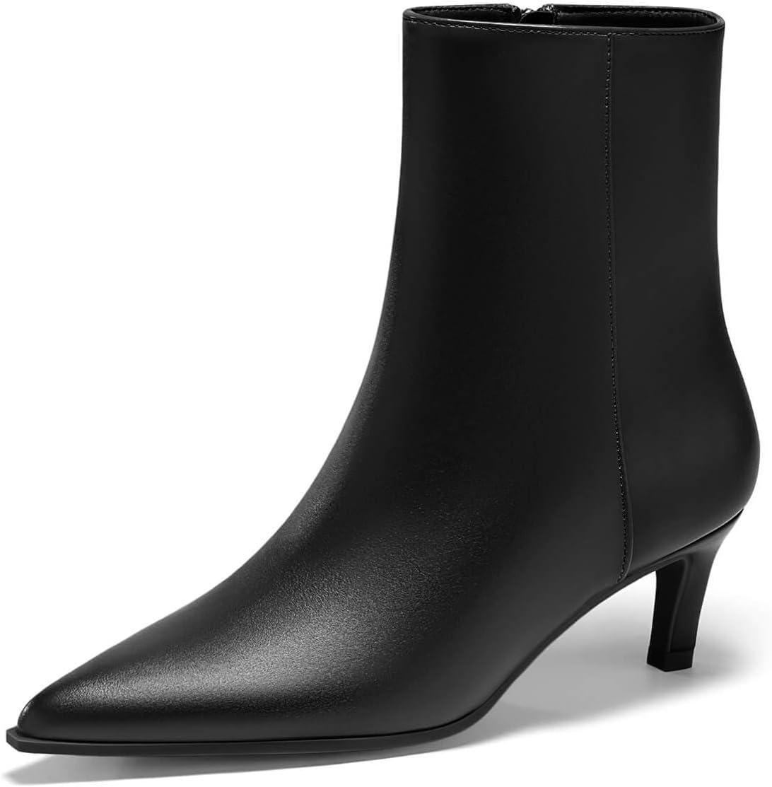 Coutgo Ankle Boots for Women Kitten Low Heel Pointed Toe Booties Side Zipper Fall Shoes(Black Pu)