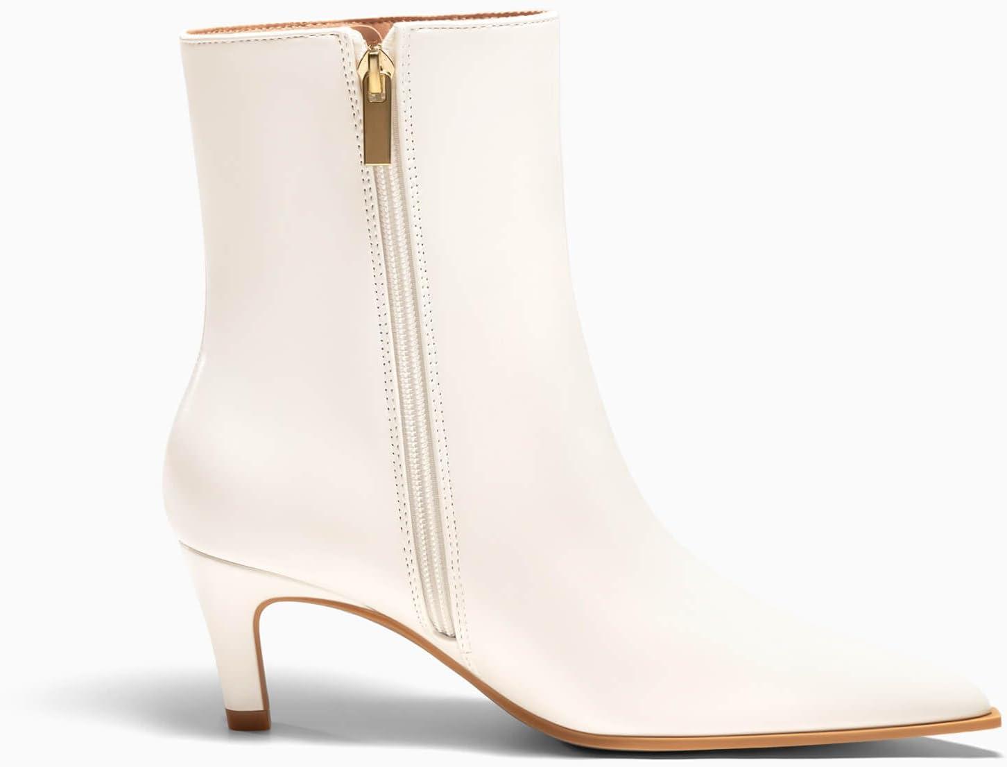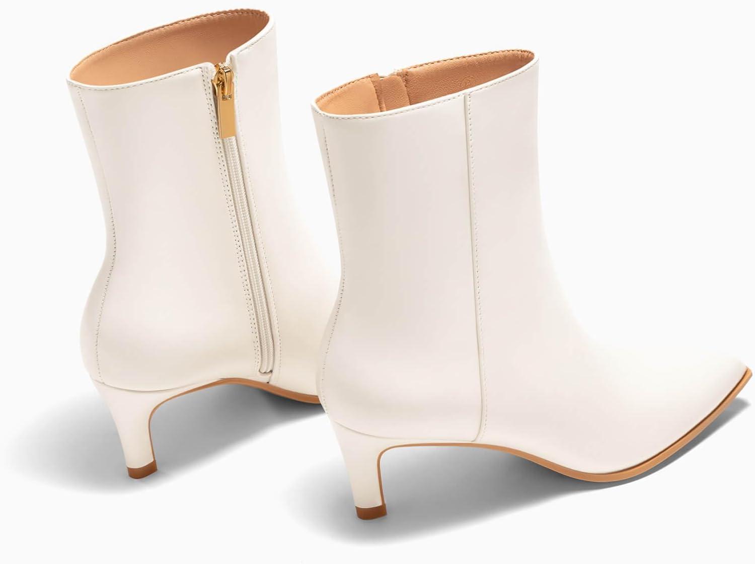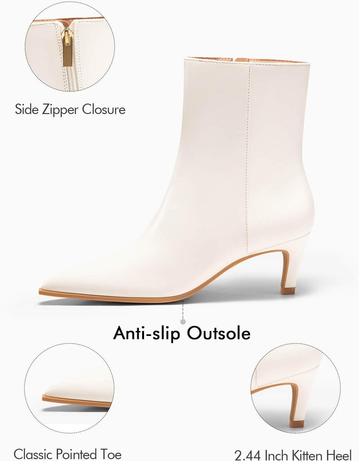 Get the Coutgo Ankle Boots for Women Kitten Low Heel Pointed Toe Booties Side Zipper Fall Shoes(Cream White Pu) you want at a discounted price during our markdown sale event.