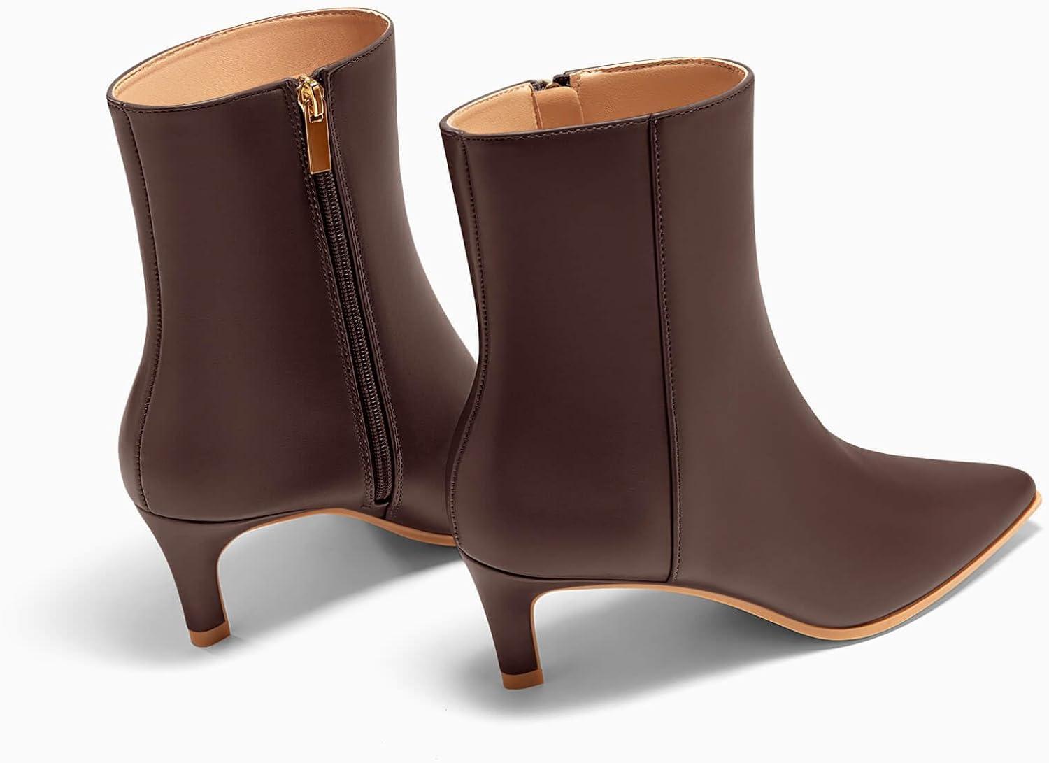 Coutgo Ankle Boots for Women Kitten Low Heel Pointed Toe Booties Side Zipper Fall Shoes(Dark Brown Pu)