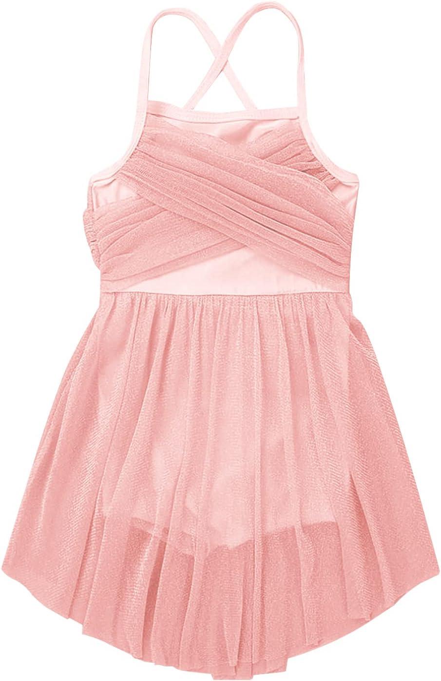 Coutgo Bow Back Dance Leotard for Girls Sparkly Ballet Leotards Dress Outfits with Tutu(Pink)