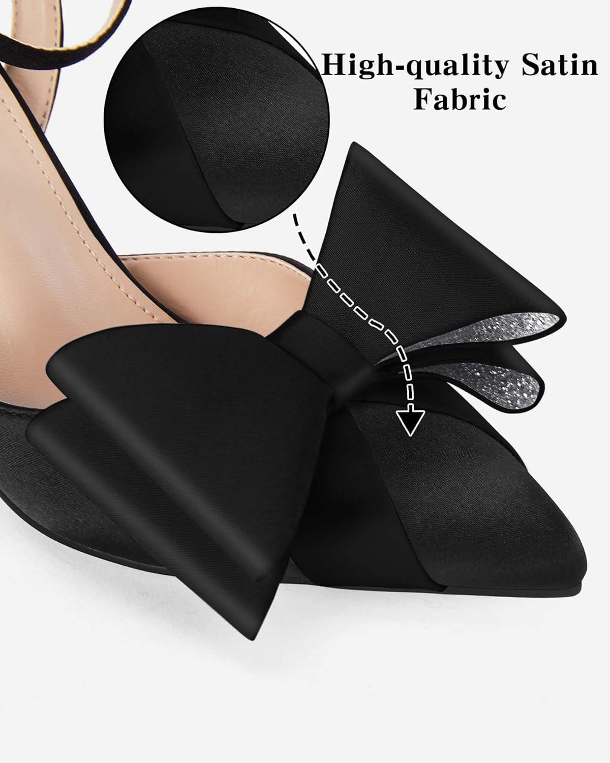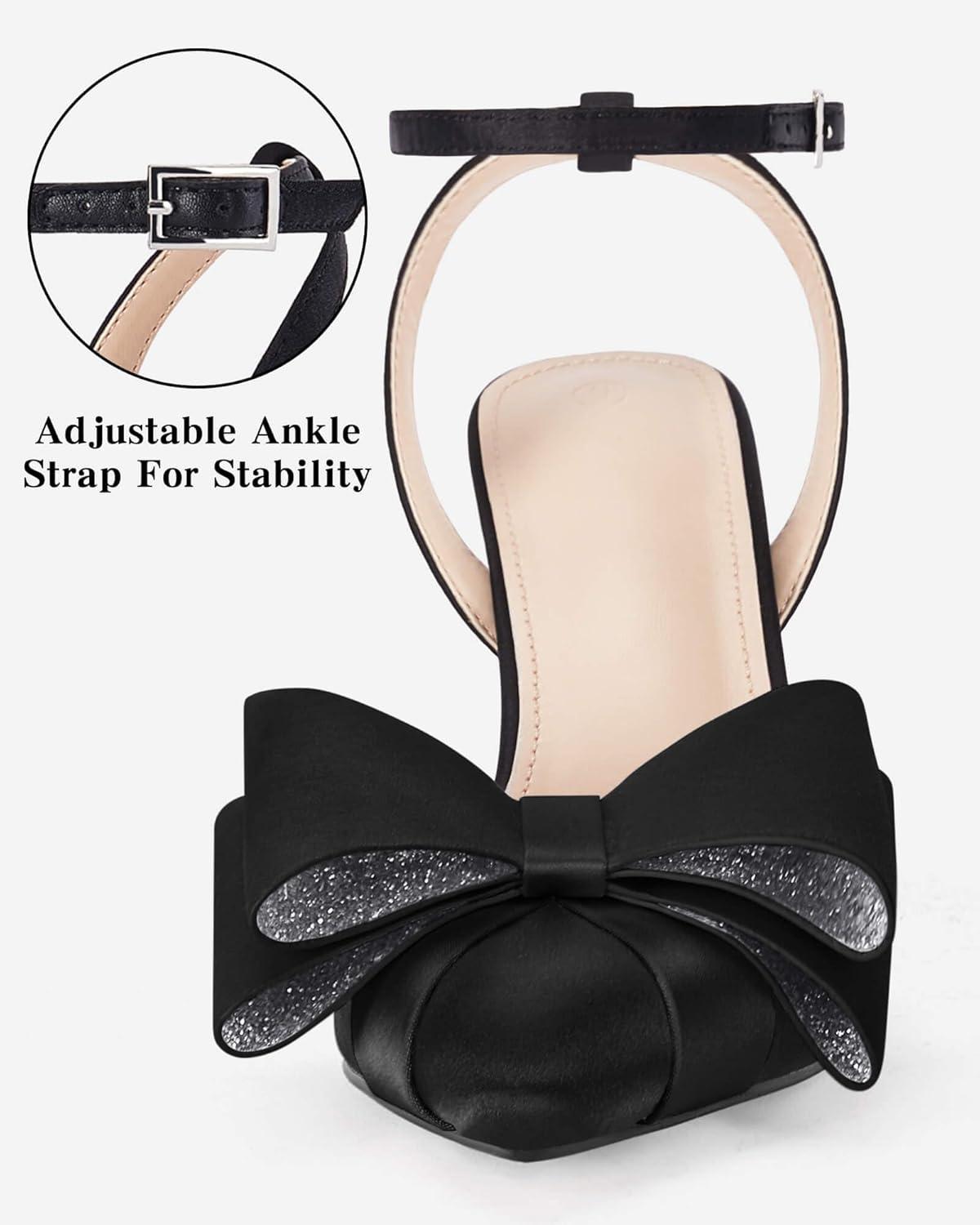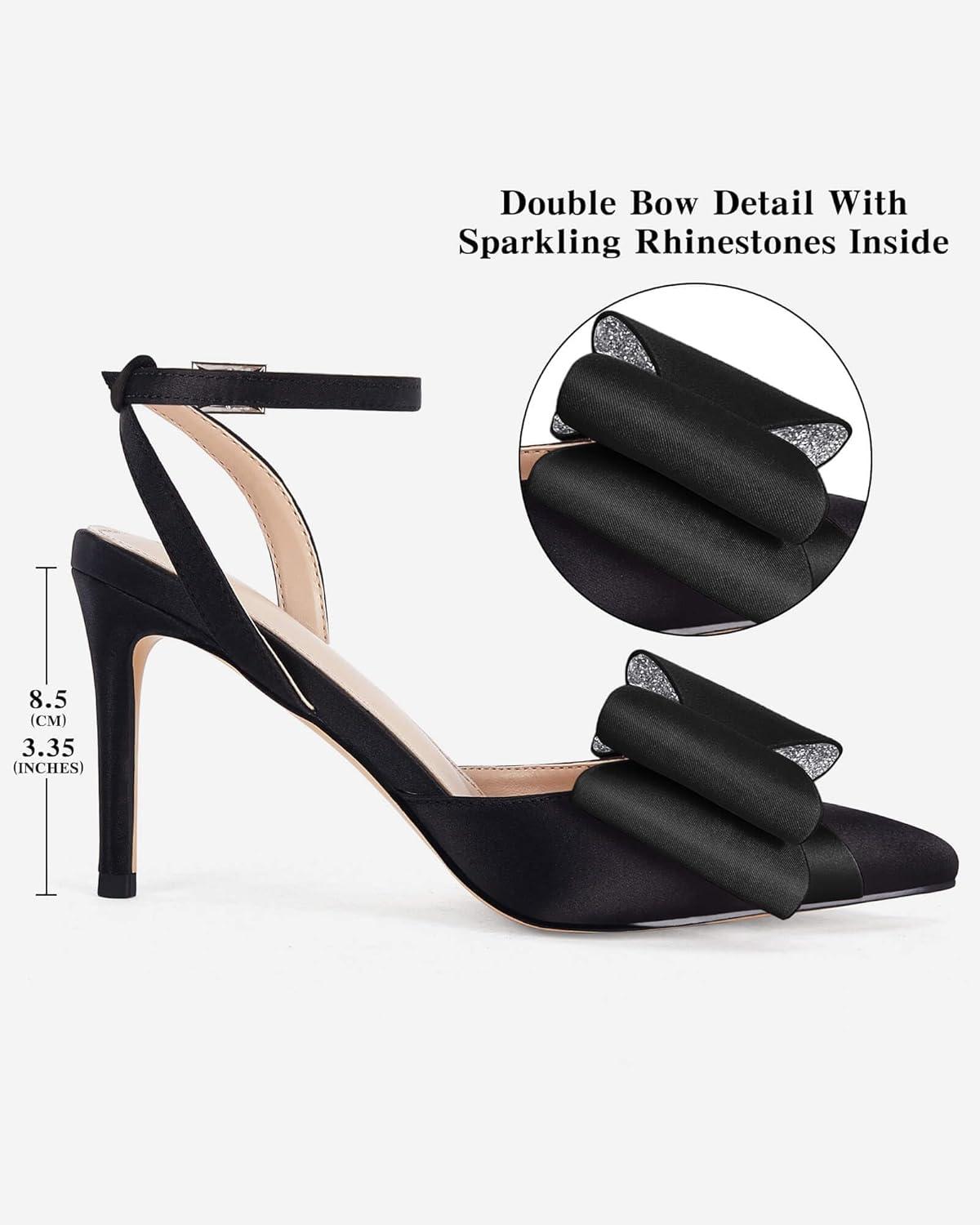 Coutgo Bow Black Heels for Women Rhinestone Closed Toe High Heel Strappy Dress Wedding Bridal Pumps Shoes(Black)