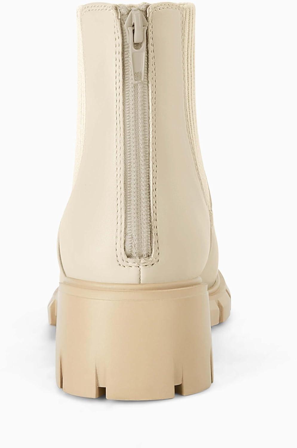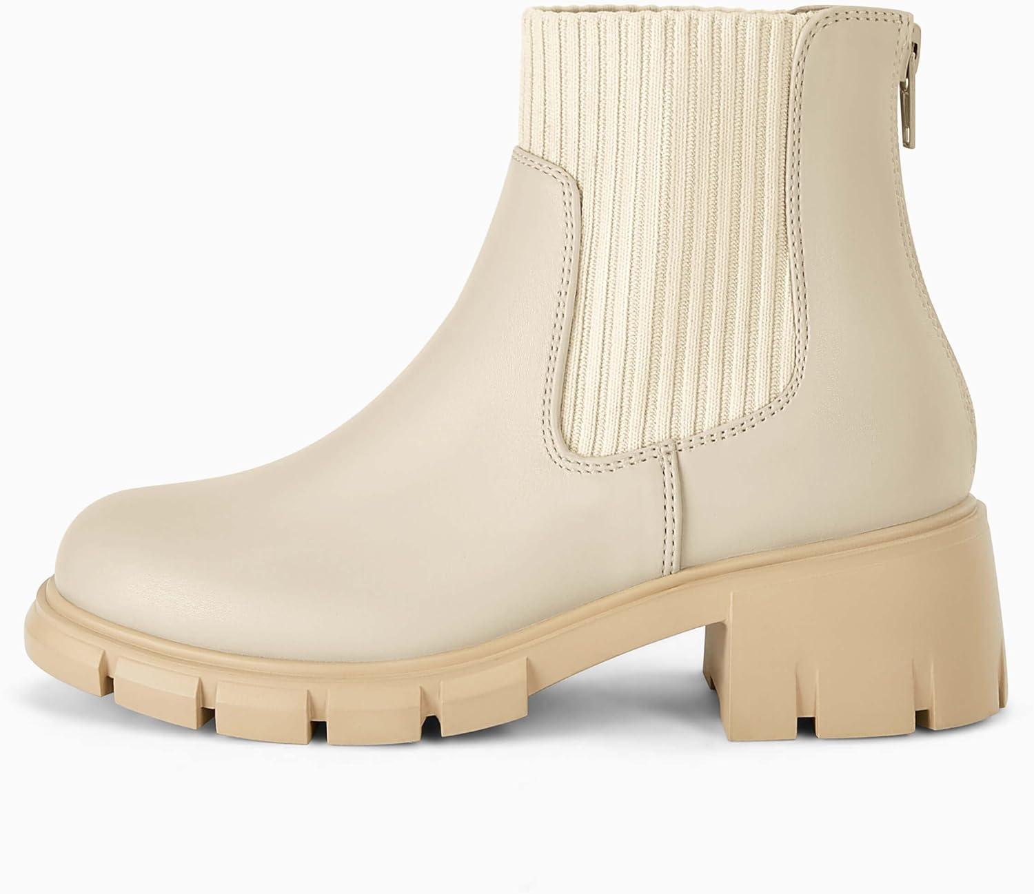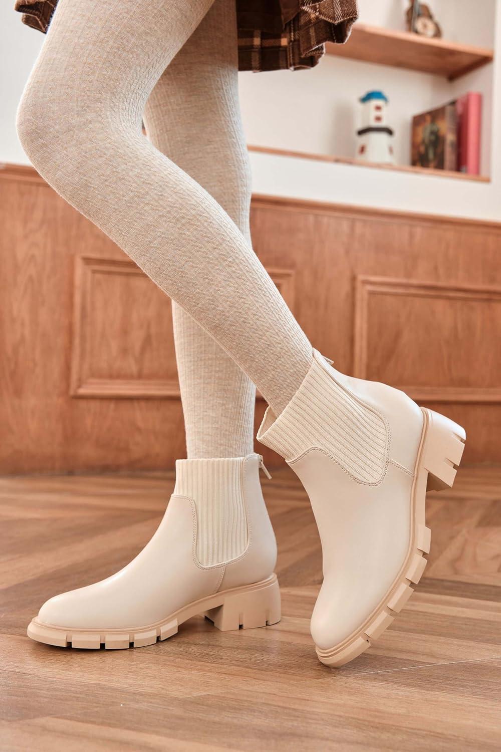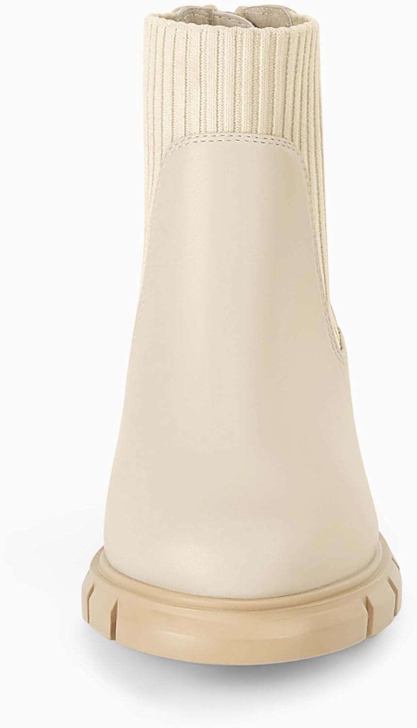 Coutgo Girl Boots Kids Ankle Boots Back Zipper Round Toe Chelsea Platform Elastic Short Booties Snow Boots for Little Kids/Big Kids(Beige)