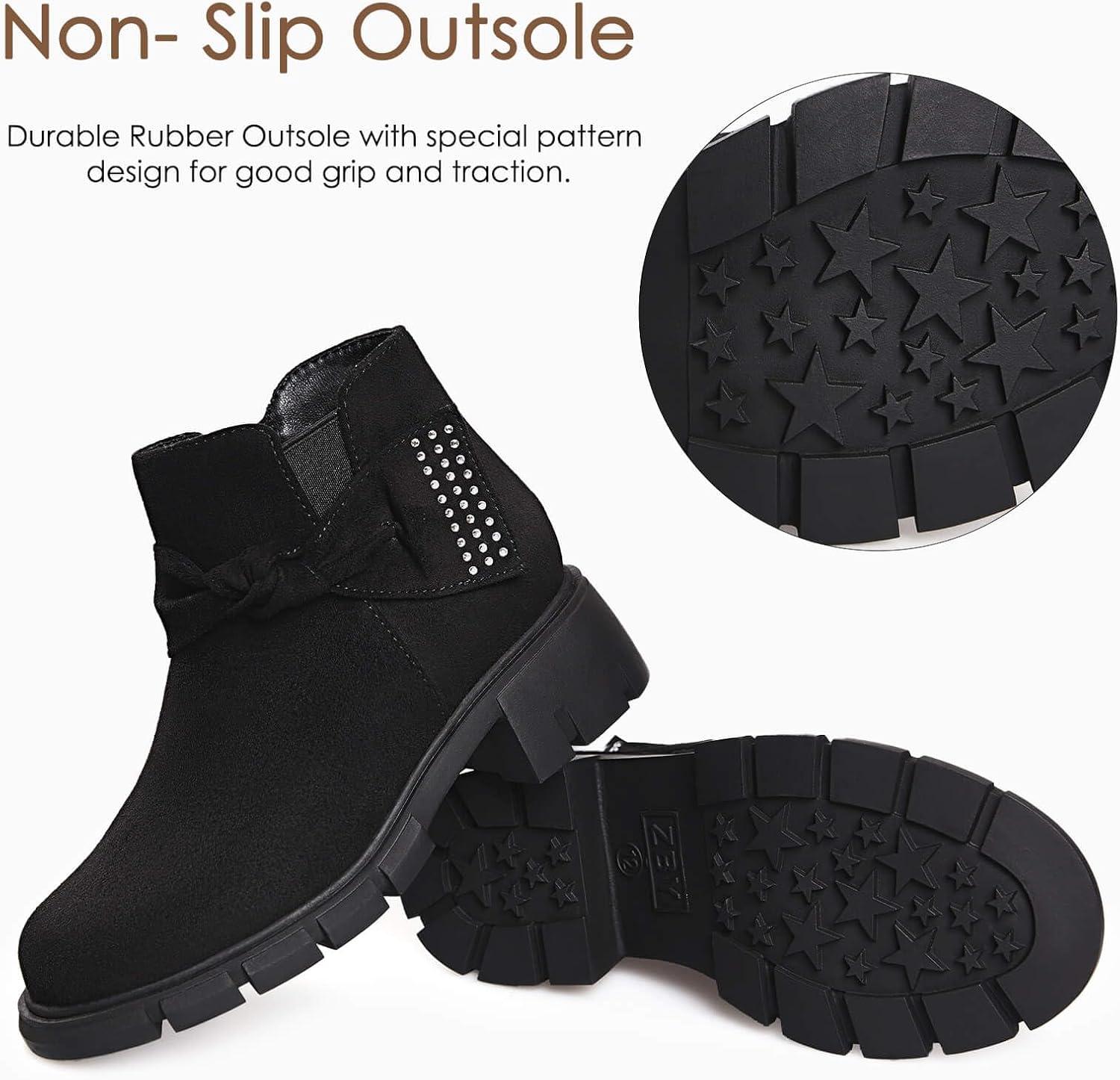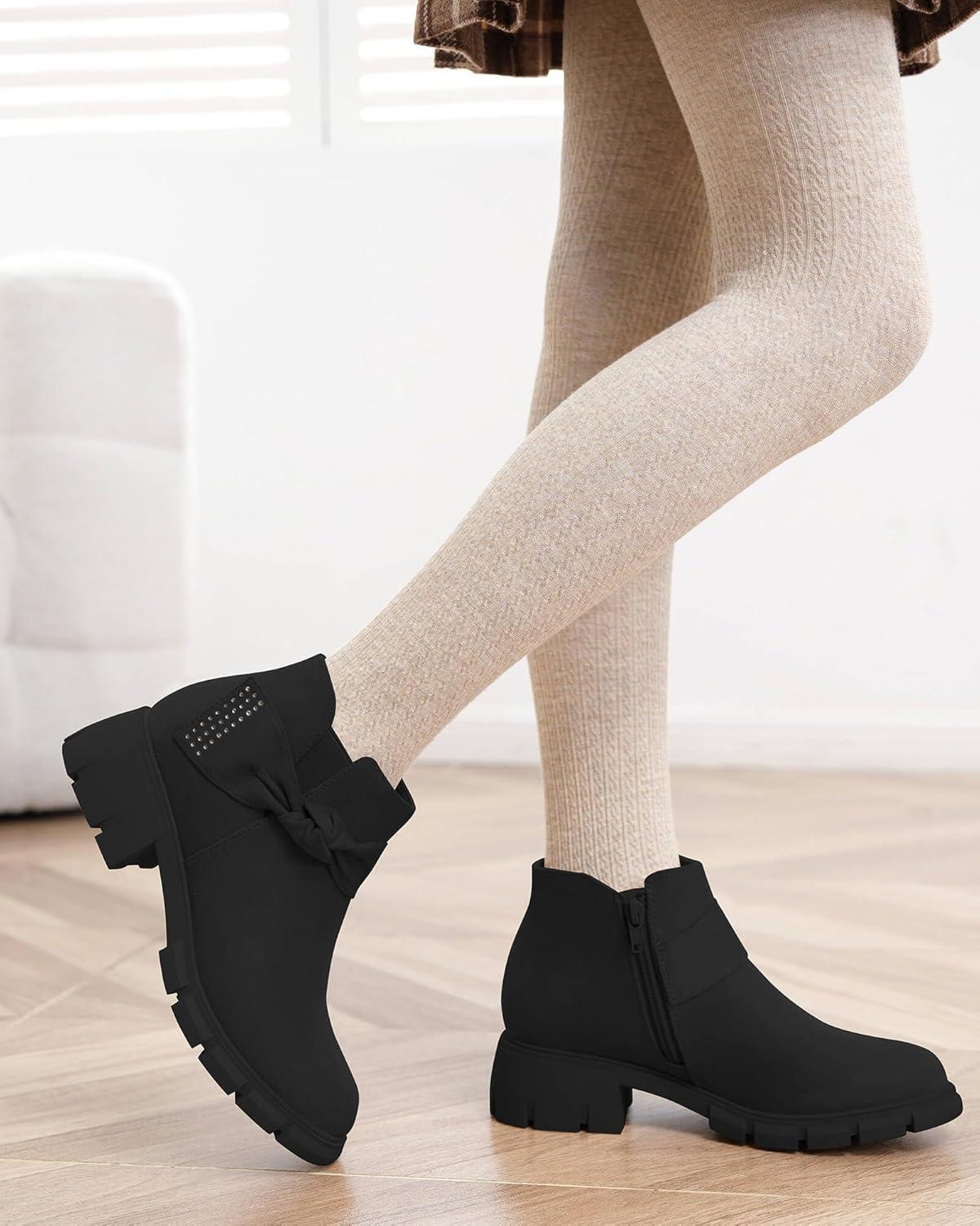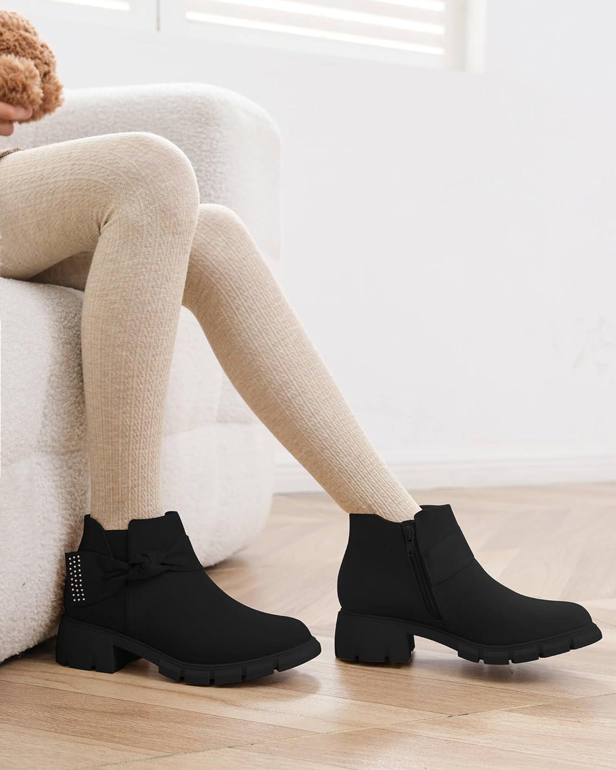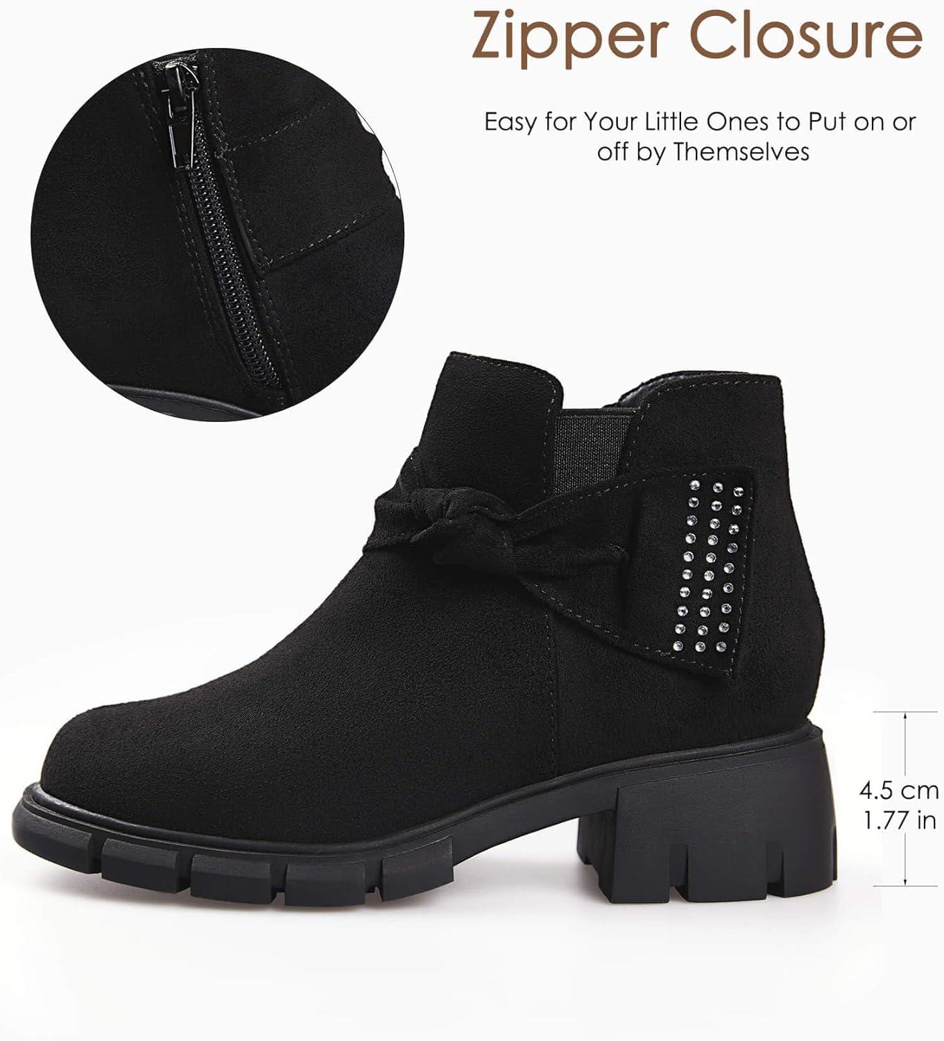 Coutgo Girls Ankle Boots Low Block Heel Glitter Bowknot Zipper Chelsea Booties Little Kid Big Kids(Black)