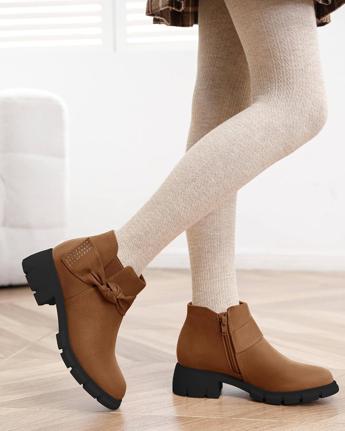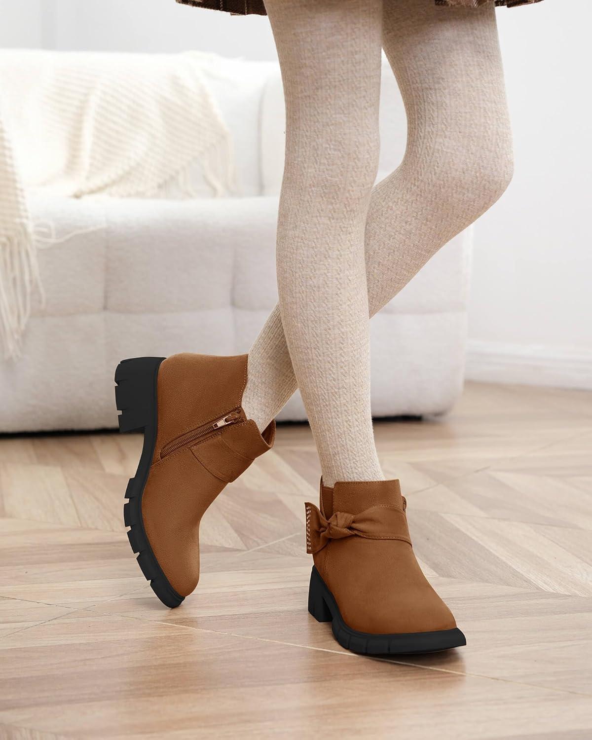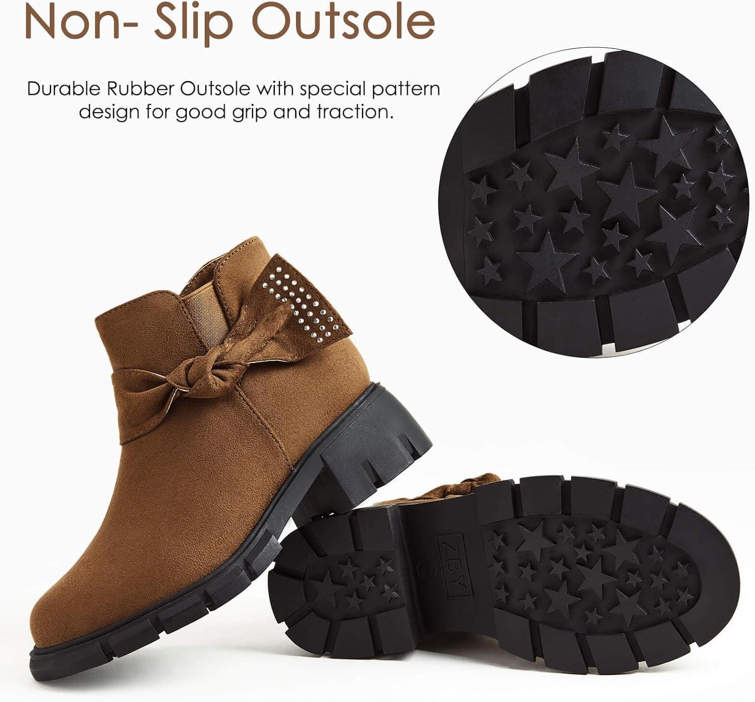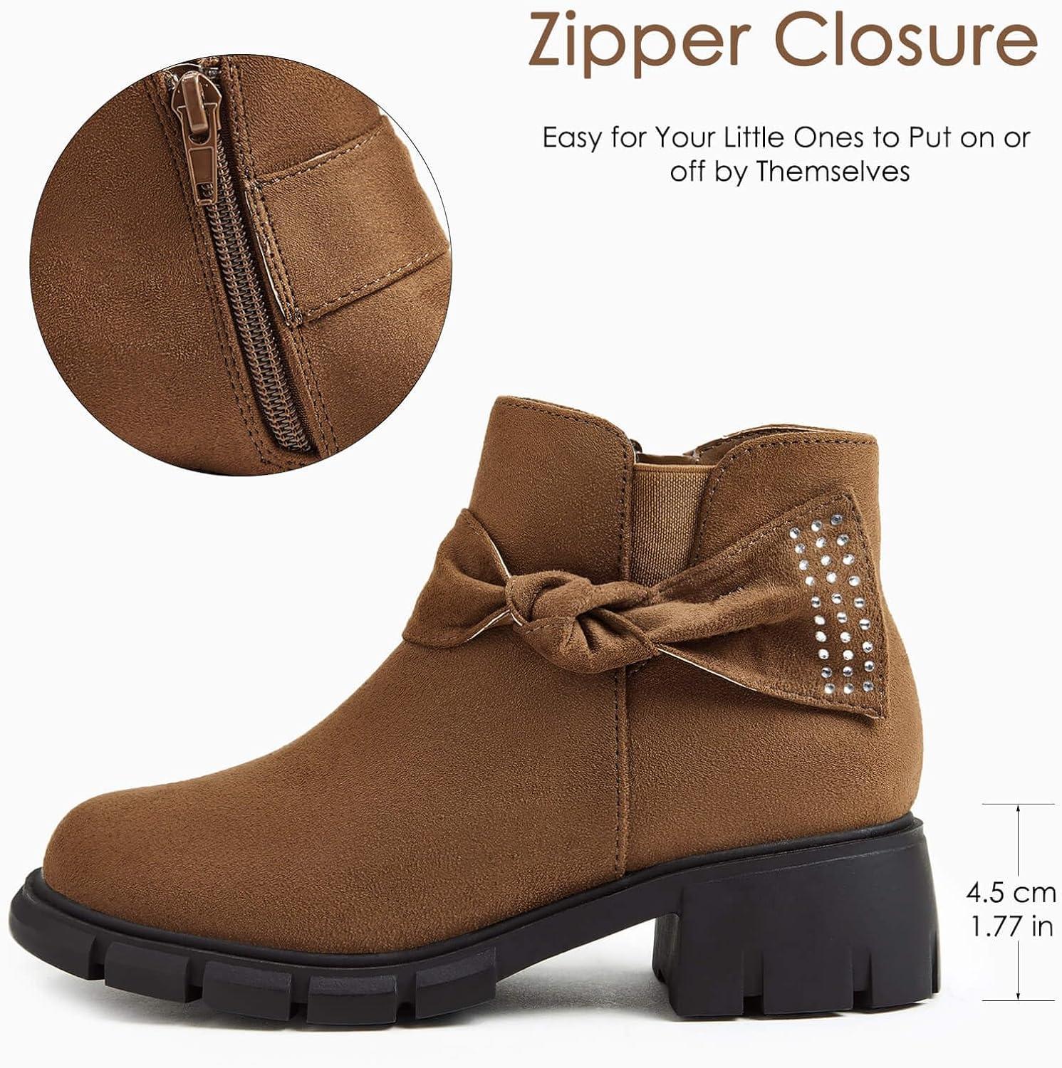 Coutgo Girls Ankle Boots Low Block Heel Glitter Bowknot Zipper Chelsea Booties Little Kid Big Kids(Brown)