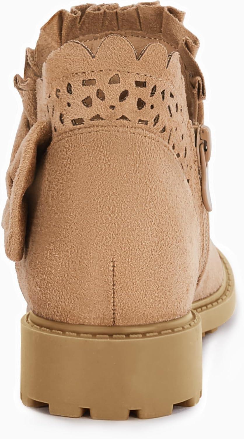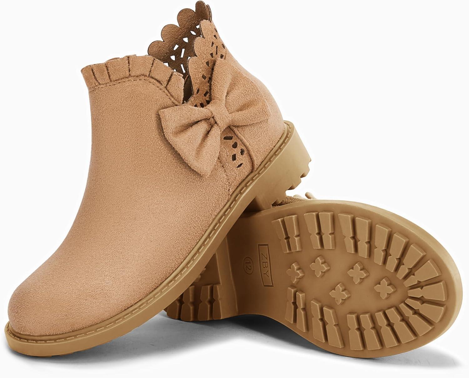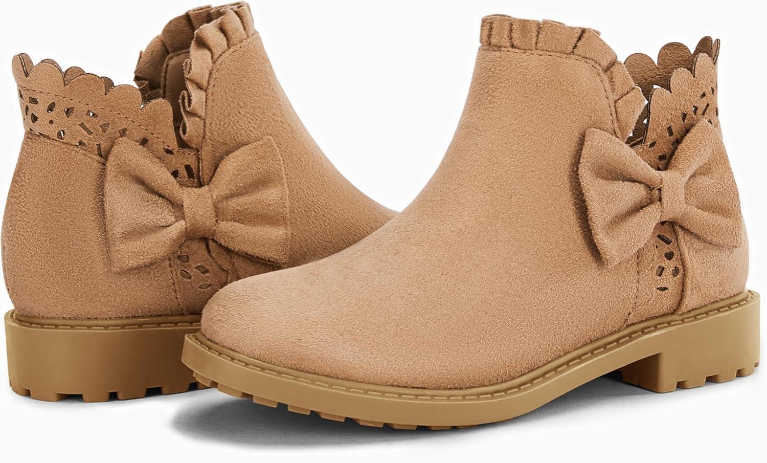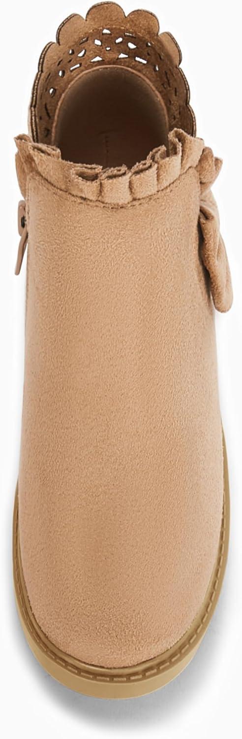 Coutgo Girls Bow Ankle Boots Ruffled Chunky Heel with Classic Side Zipper Dress Booties for Little Kids/Big Kids(Khaki)