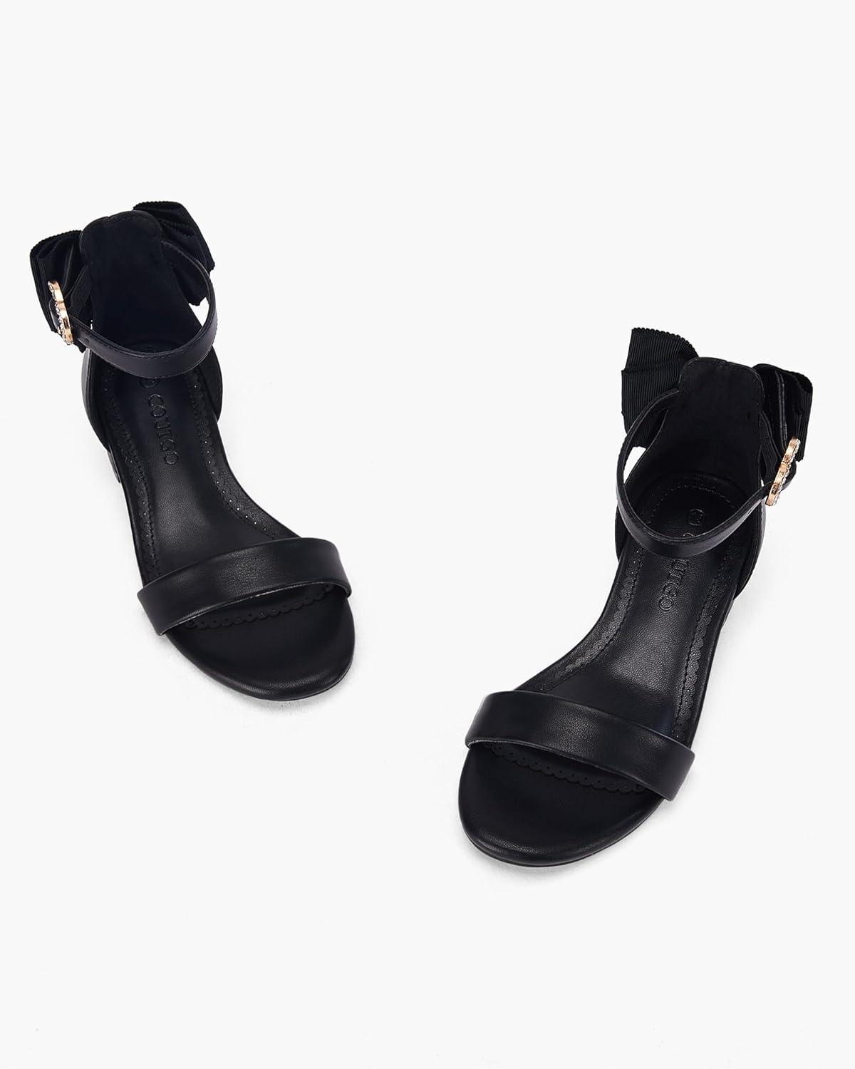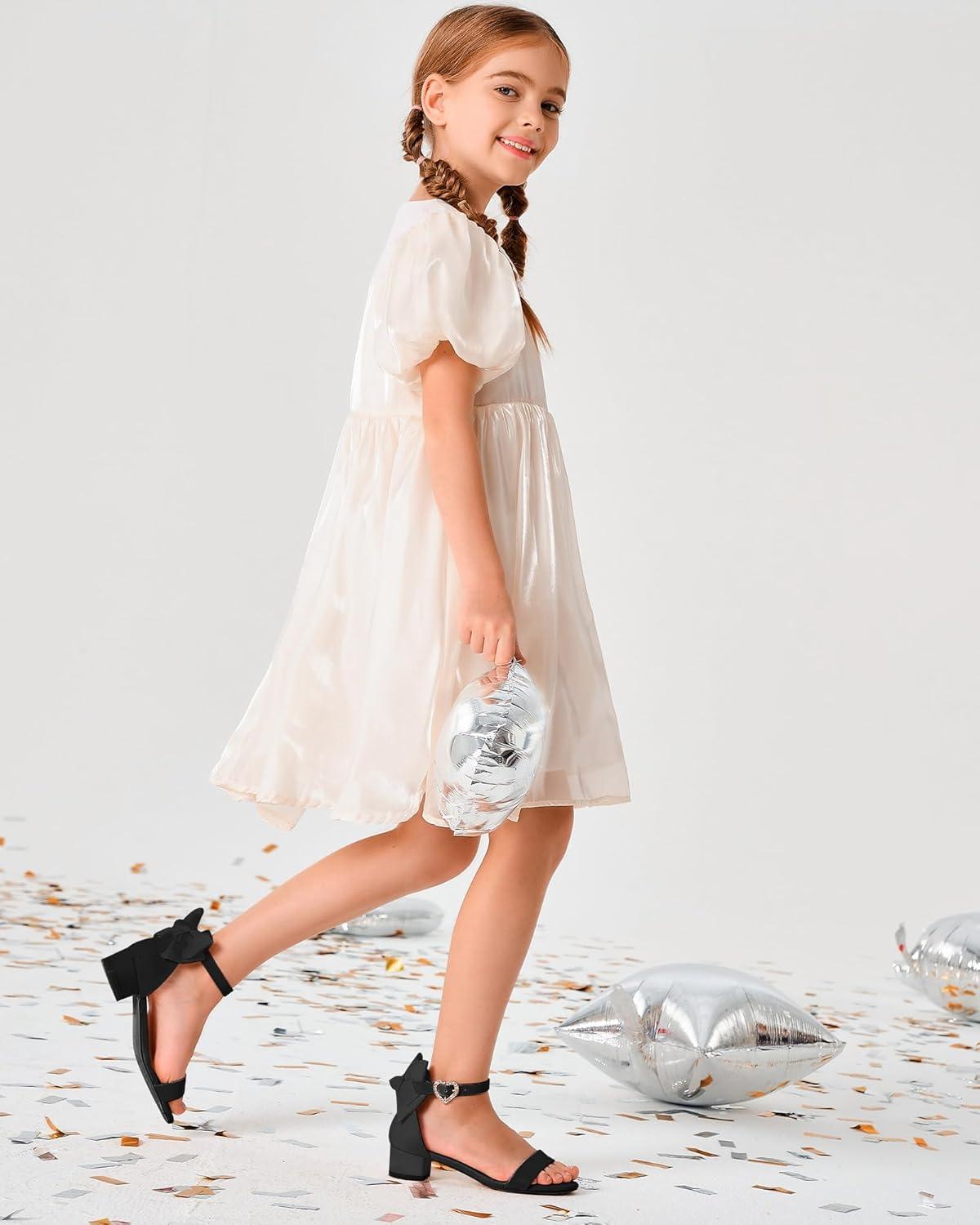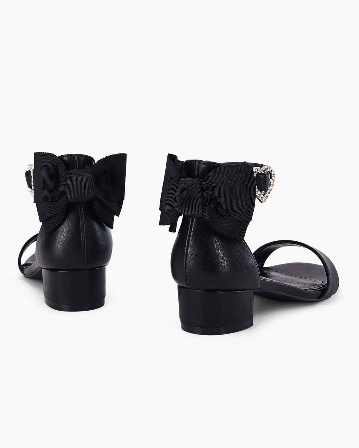 Coutgo Girl’s Bow Tie Heeled Sandals Open Toe Chunky Low Heel Rhinestone Princess Dress Shoes(Black)