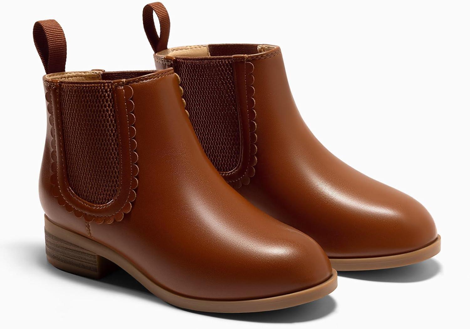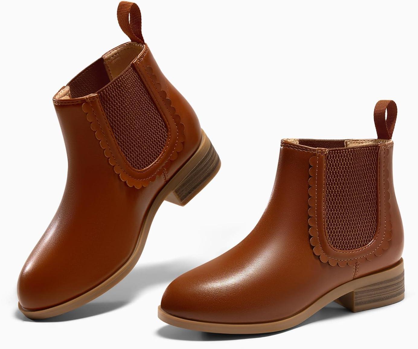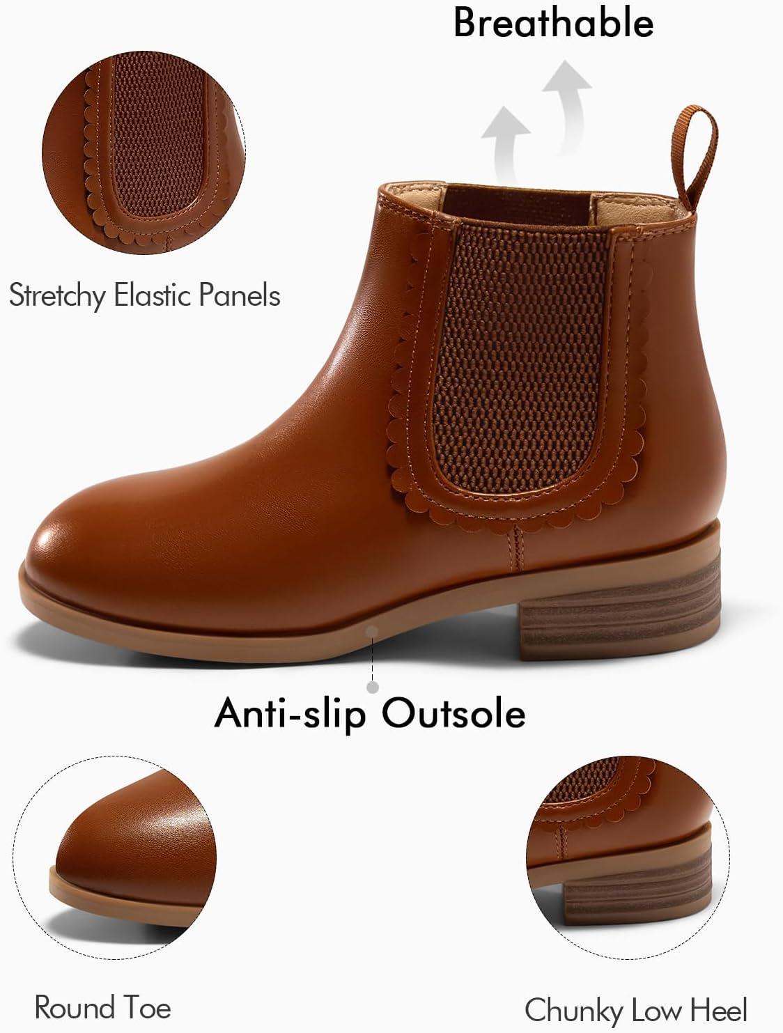 Coutgo Girls Chelsea Ankle Boots Kids Slip On Chunky Low Heel Elastic Fall Winter Booties Shoes(Dark Brown)