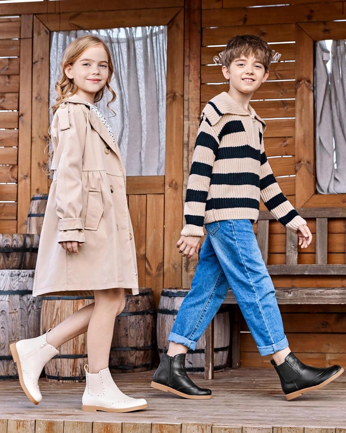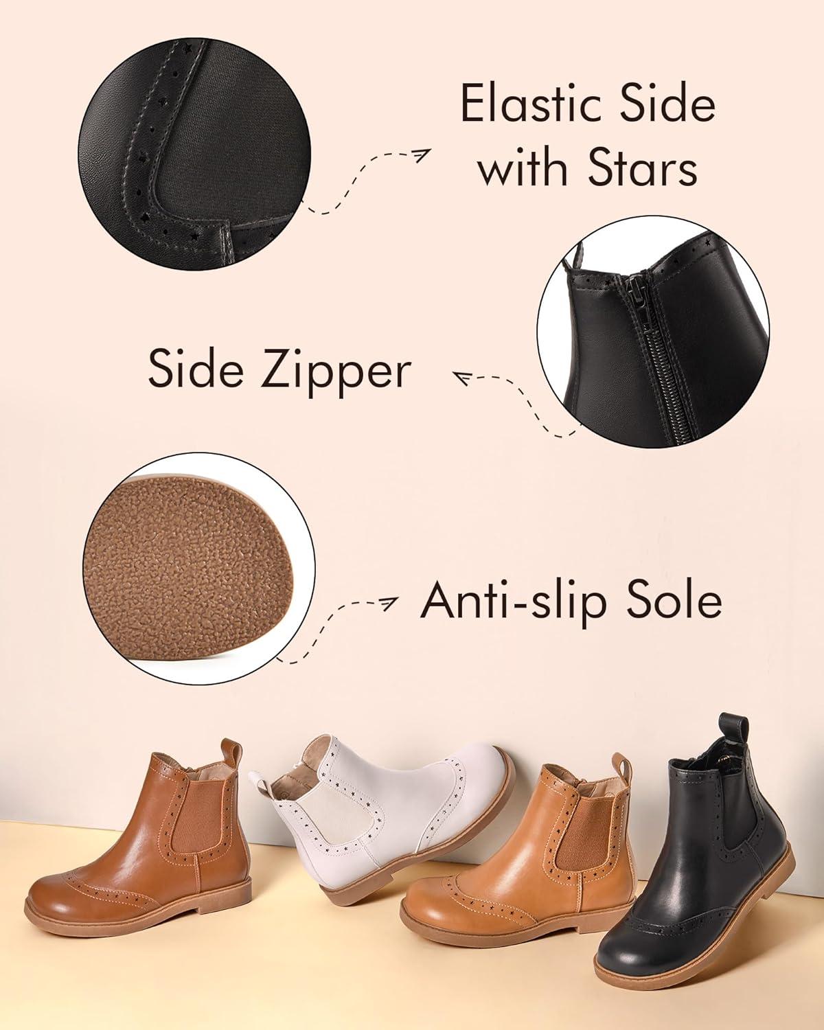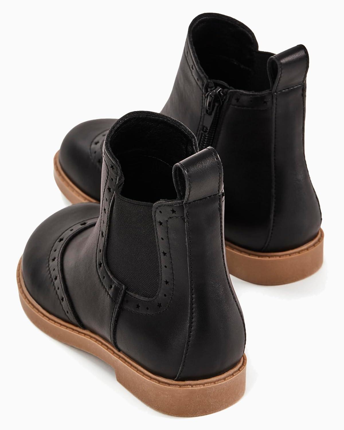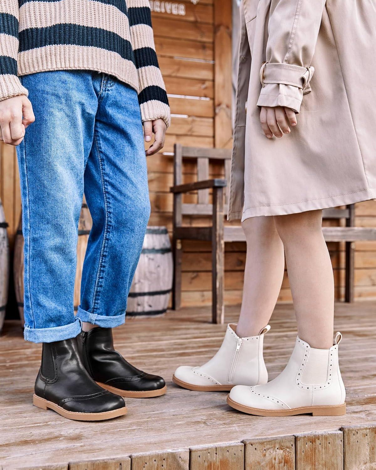 Coutgo Girls Chelsea Ankle Boots Side Zipper Comfortable Combat Dress Booties for Toddler/Little Kid/Big Kids(Black)