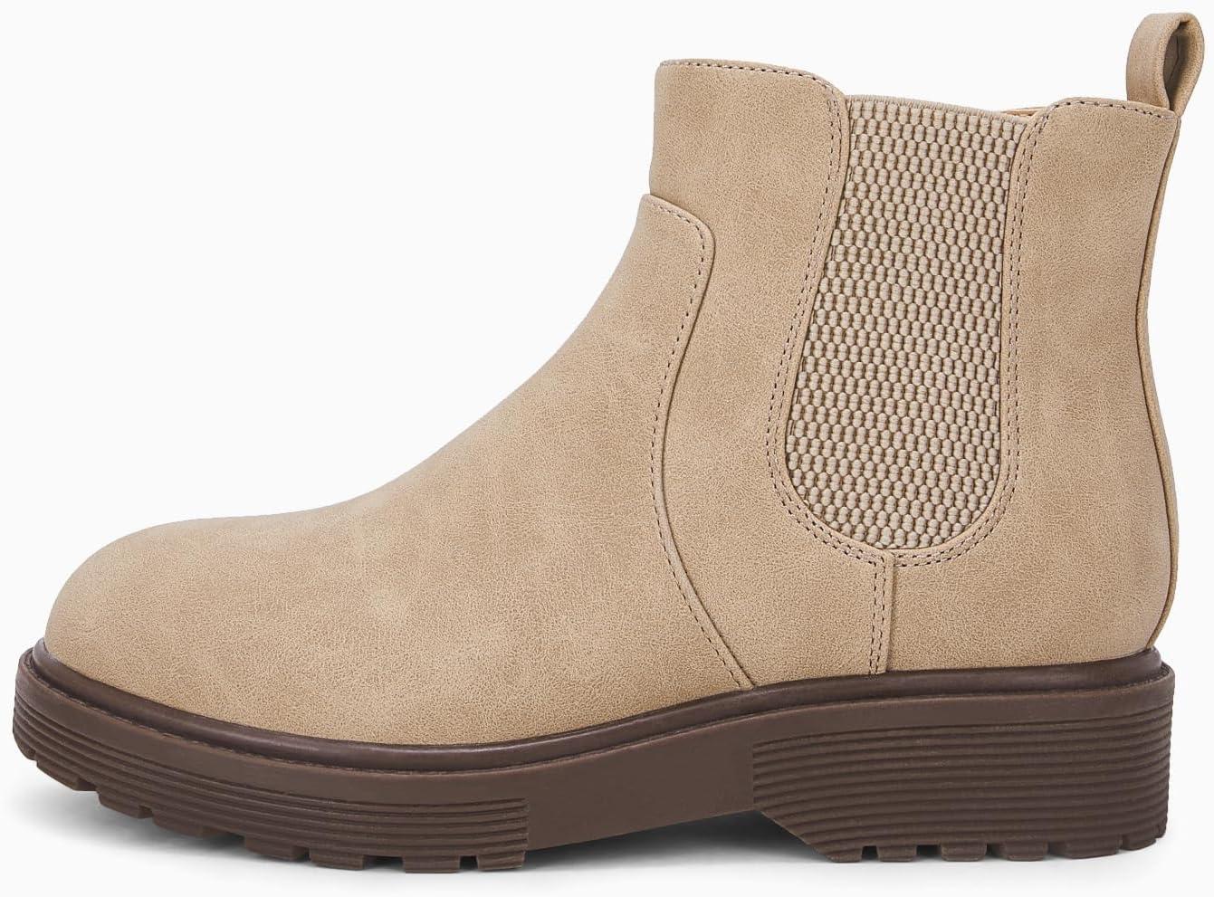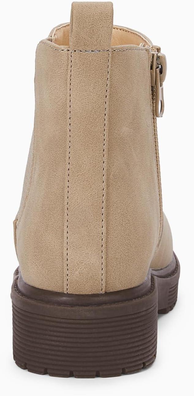 Coutgo Girls Kids Lug Sole Ankle Boots Side Zip Chunky Low Heel Slip On Winter Casual Chelsea Booties Shoes(Khaki)