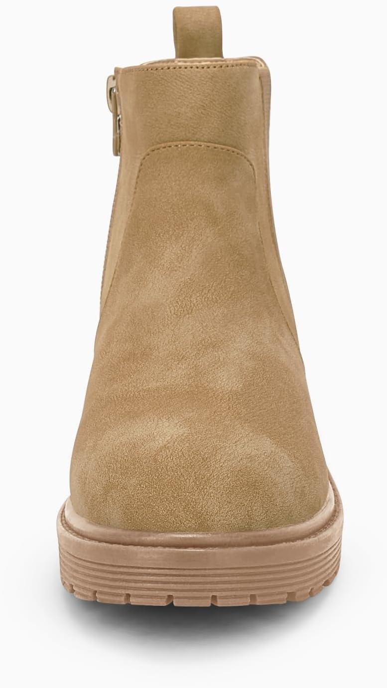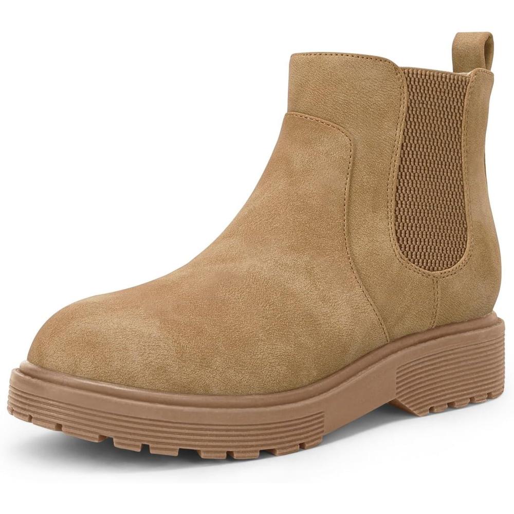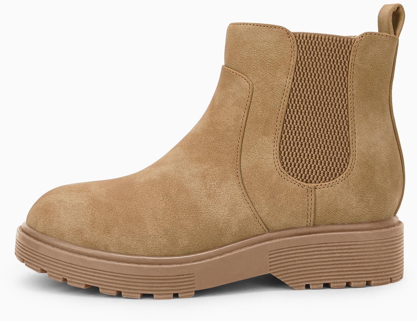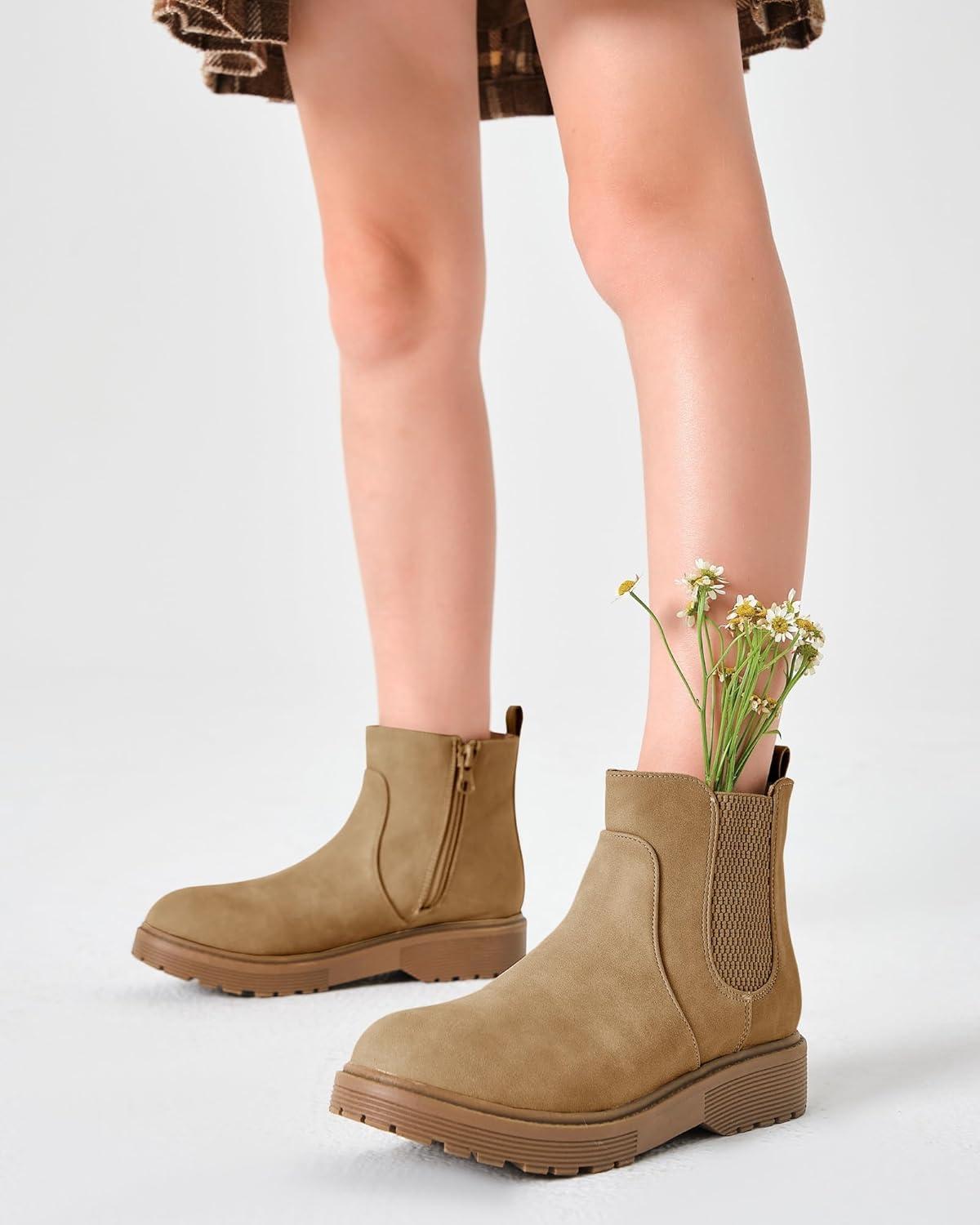 Coutgo Girls Kids Lug Sole Ankle Boots Side Zip Chunky Low Heel Slip On Winter Casual Chelsea Booties Shoes(Light Brown)