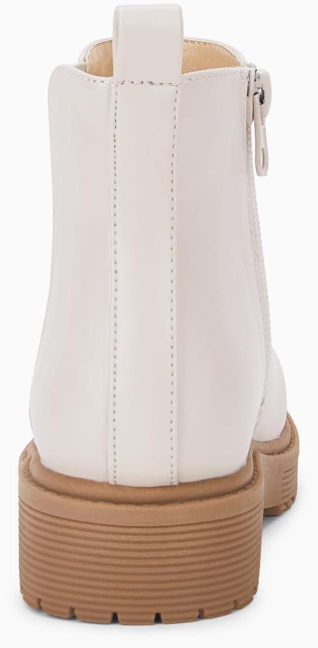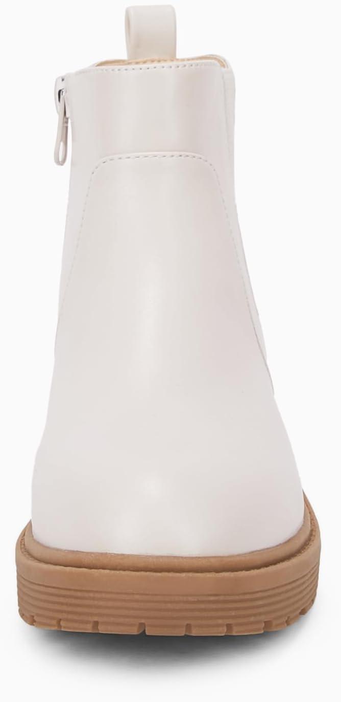 Coutgo Girls Kids Lug Sole Ankle Boots Side Zip Chunky Low Heel Slip On Winter Casual Chelsea Booties Shoes(Nude)