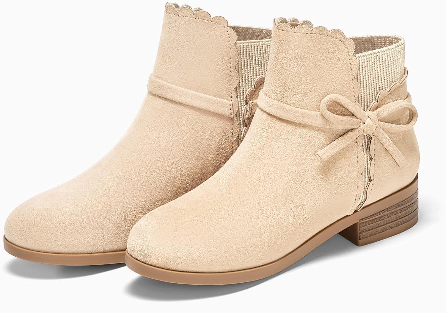 Get the Coutgo Girls Toddler Bow Ankle Boots Pull On Low Chunky Heel Fall Dress Booties Shoes(Beige) you’ve been eyeing at a discounted price during our seasonal sale event.