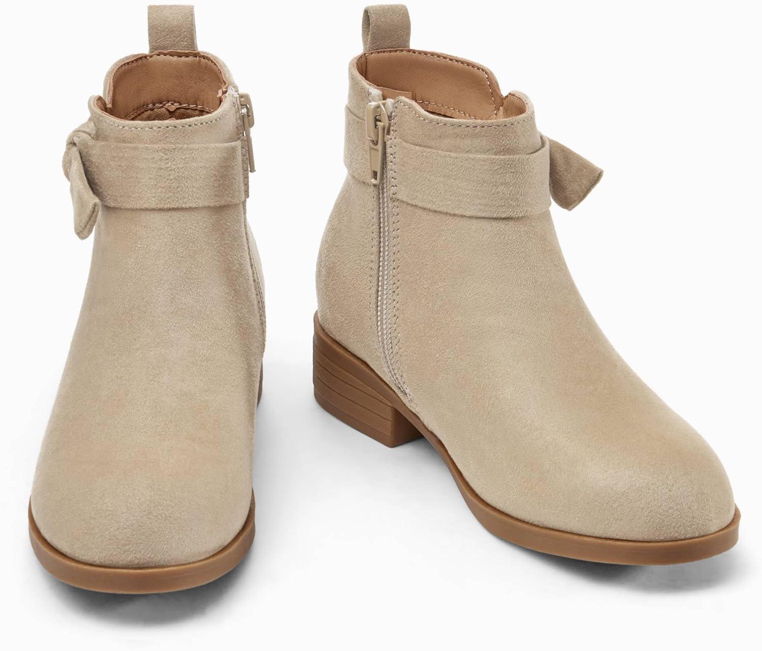Coutgo Girls Toddler Bow knot Ankle Boots Low Chunky Heel Side Zipper Cute Dress Booties Little Big Kid(Beige)