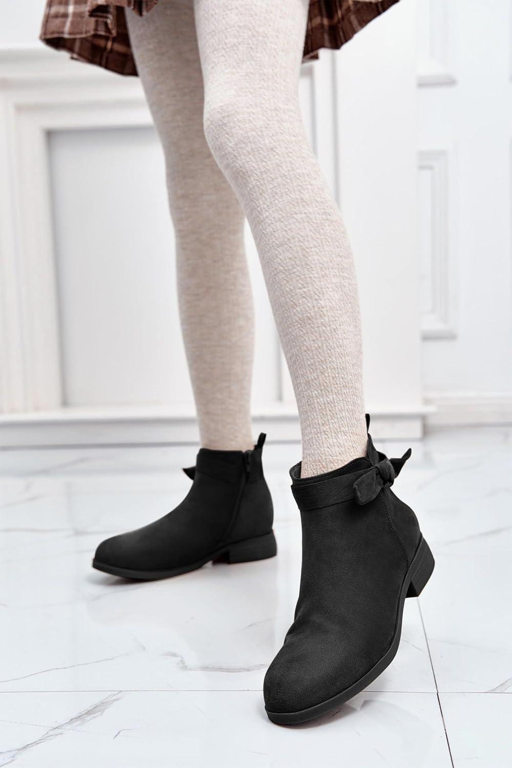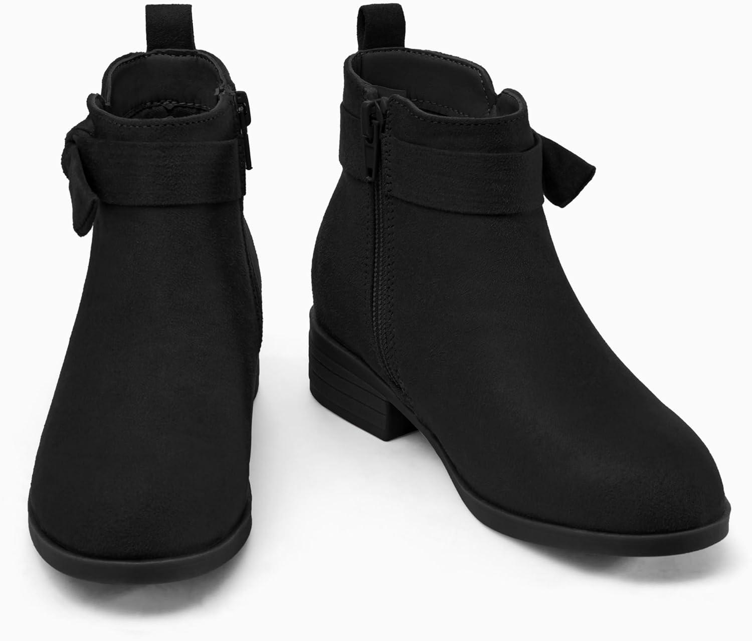Coutgo Girls Toddler Bow knot Ankle Boots Low Chunky Heel Side Zipper Cute Dress Booties Little Big Kid(Black)