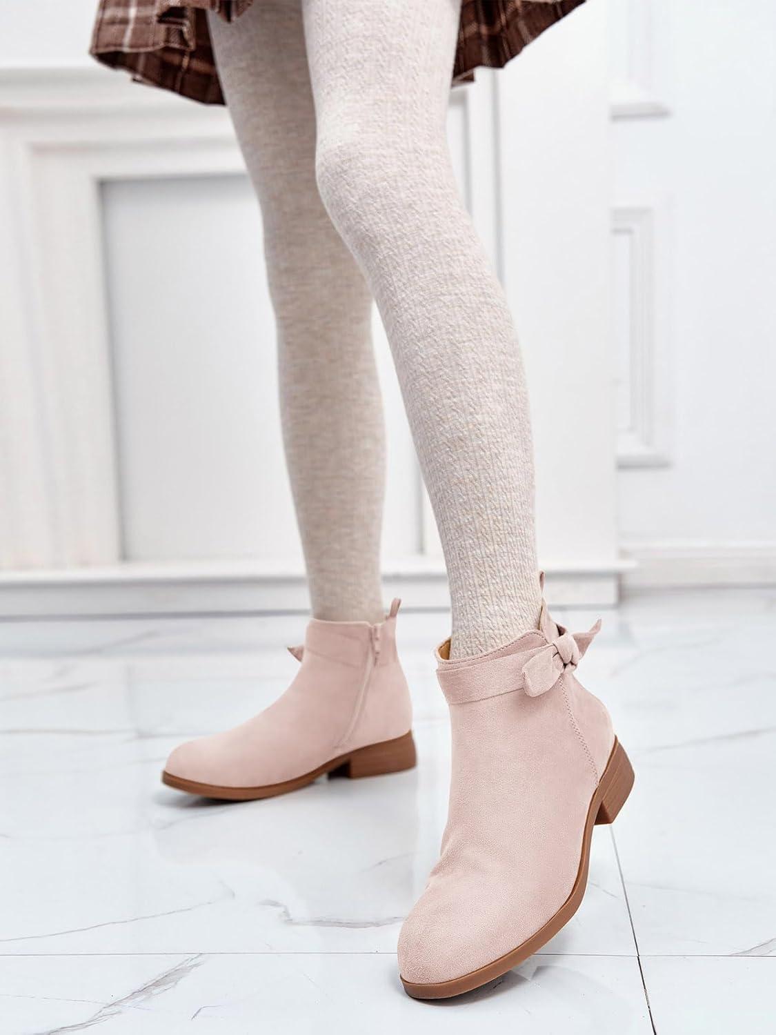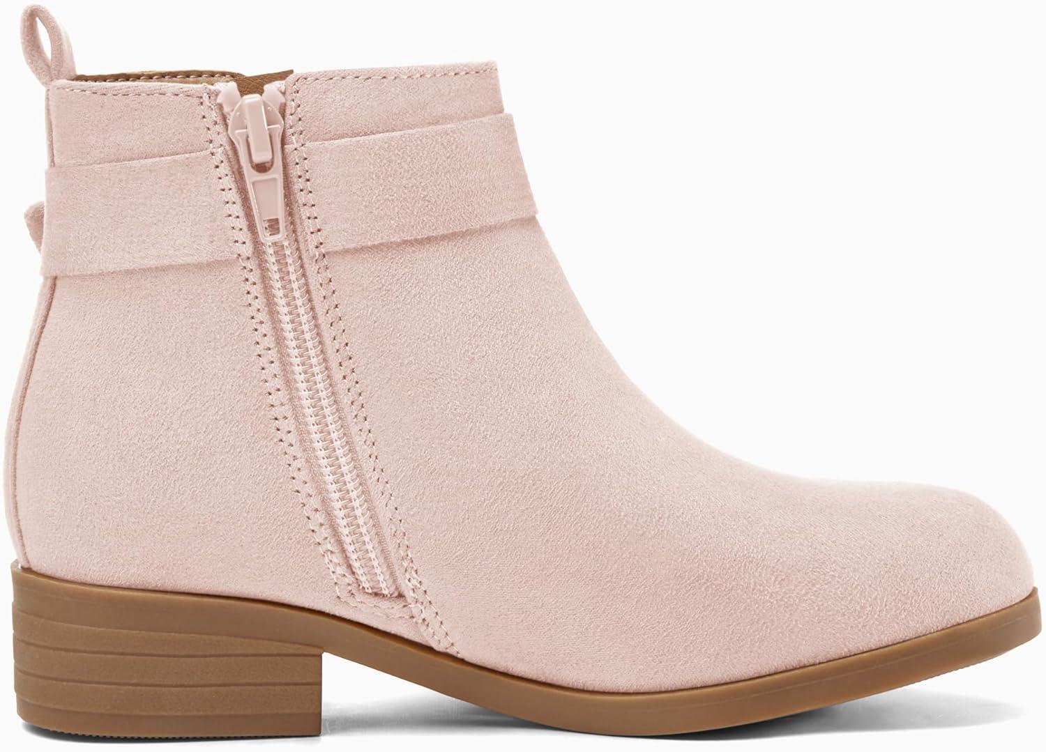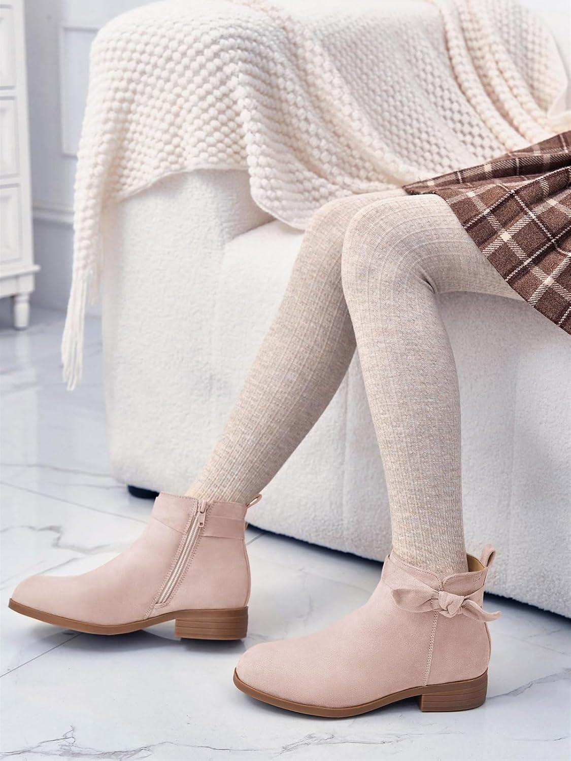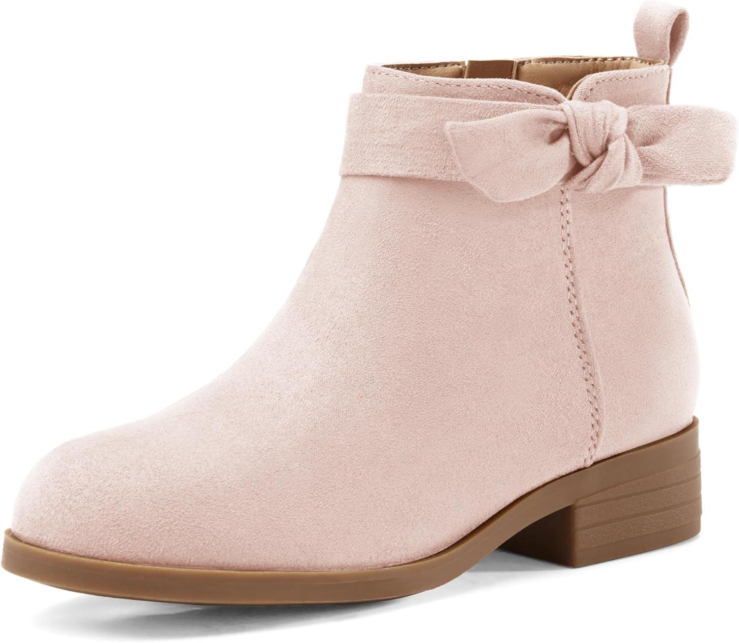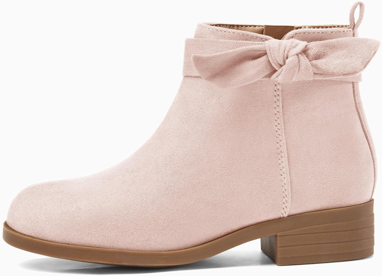 Coutgo Girls Toddler Bow knot Ankle Boots Low Chunky Heel Side Zipper Cute Dress Booties Little Big Kid(Pink)