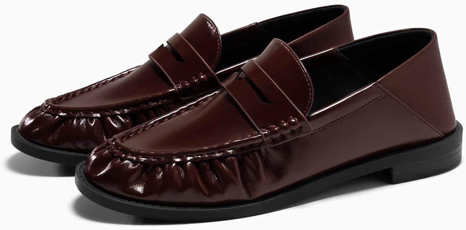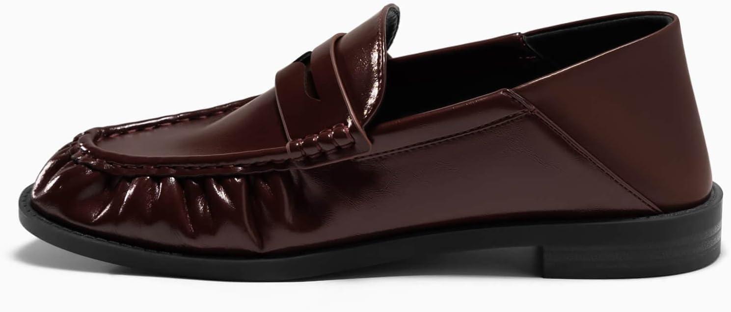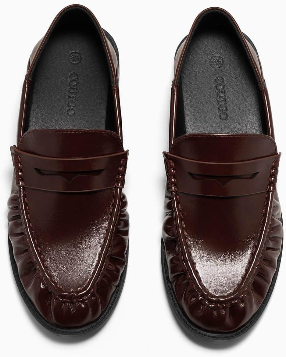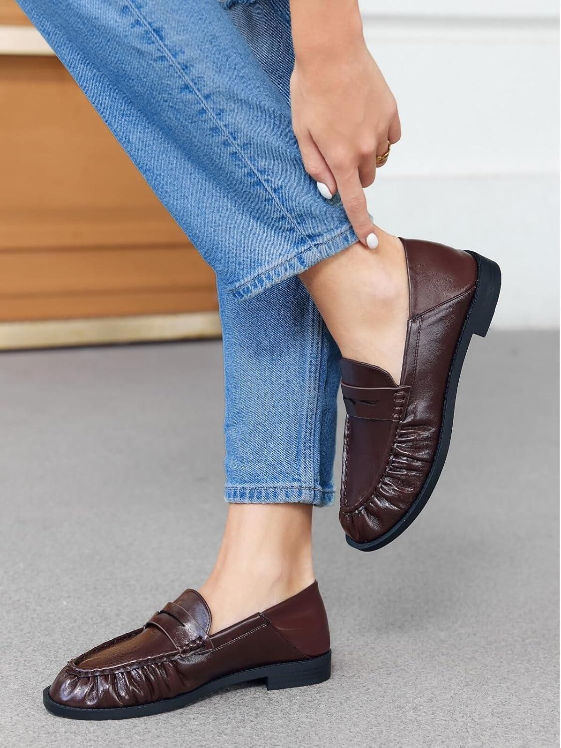 Coutgo Penny Loafers for Women Comfortable Slip on Shoes Collapsible Heel Closed Toe Dressy Casual Work Flats(Chocolate)
