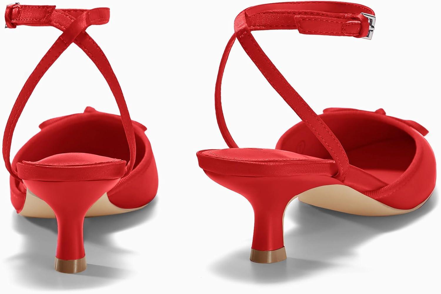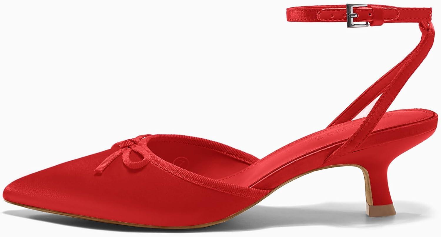 Get up to 50% off on Coutgo Satin Kitten Low Heels with Bow Closed Pointed Toe Short Pumps Dress Wedding Party Shoes(Red) styles during our spring sale event.