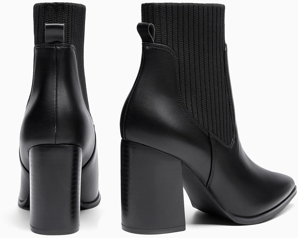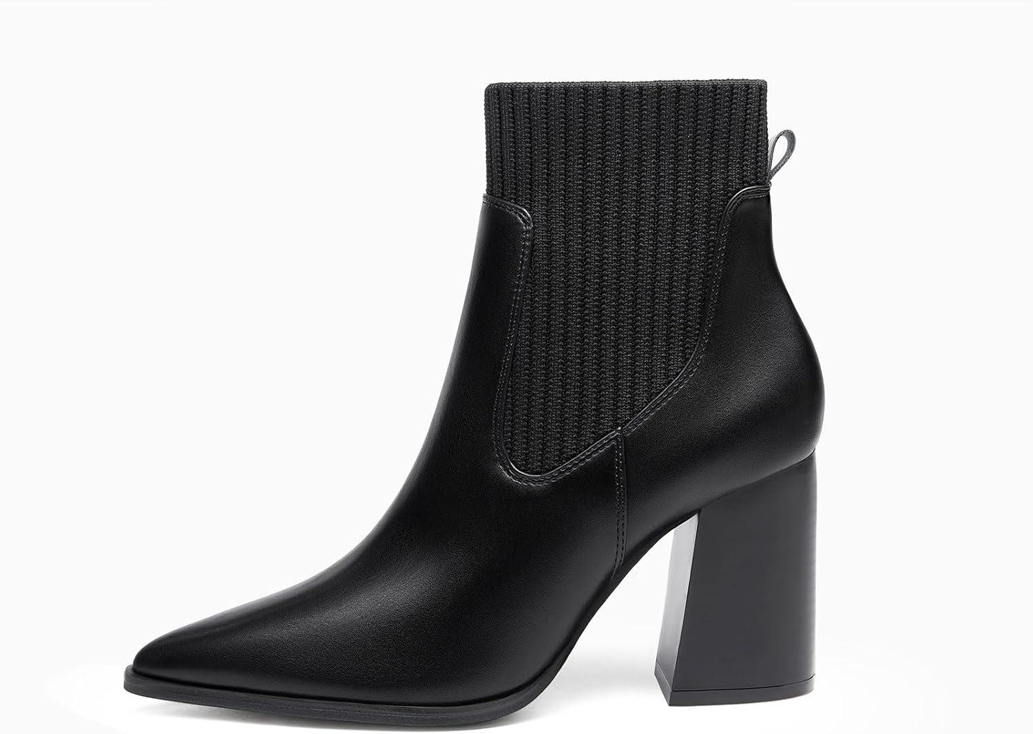 Coutgo Women Ankle Boots Sock Booties Pointed Toe Chunky Stacked High Heel Knit Chelsea Winter Dress Booties(Black)