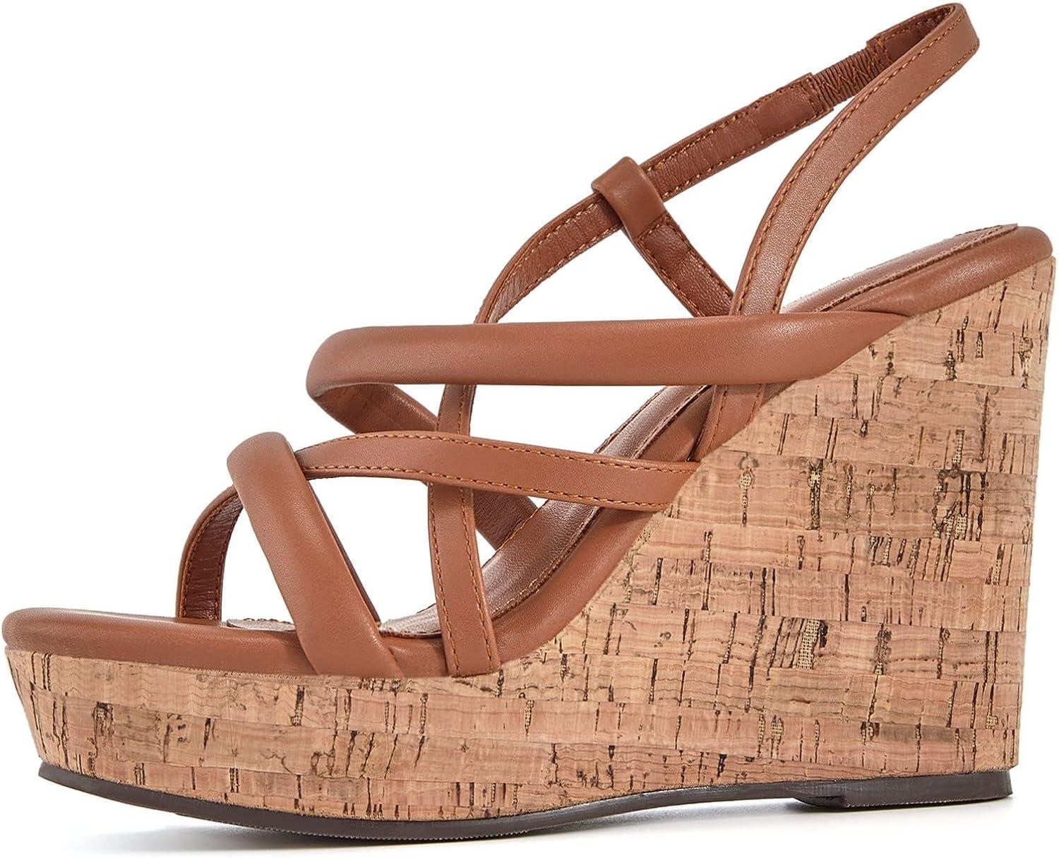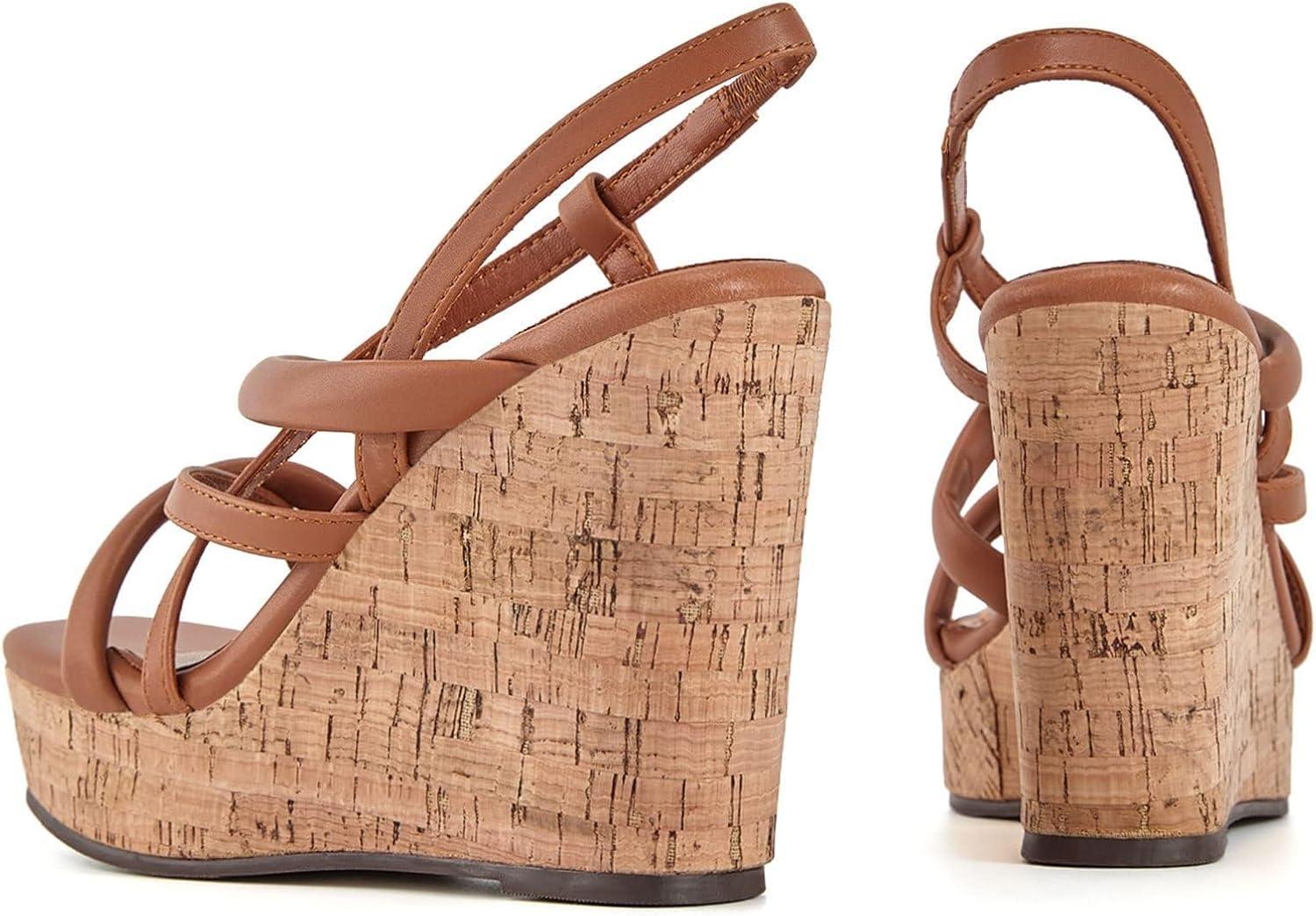 Coutgo Women Platform Wedge Sandals Cork Slingback Wedges Espadrilles Heels Summer Shoes(Brown)