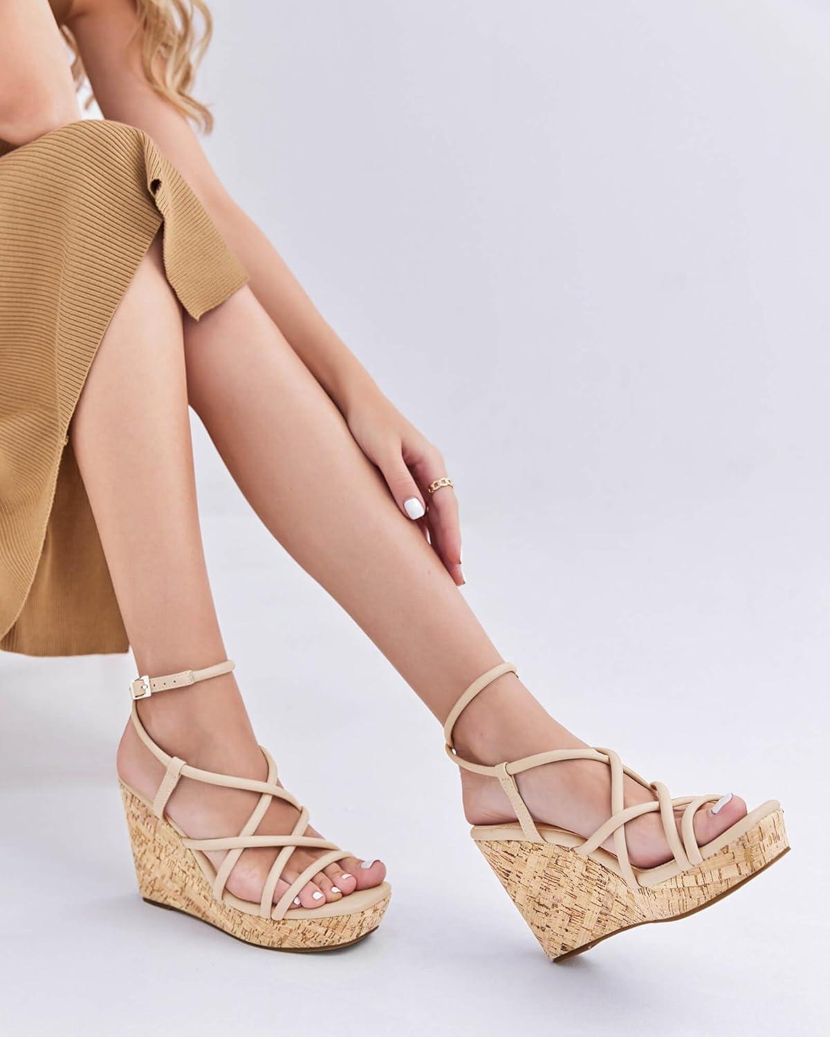 Coutgo Women Platform Wedge Sandals Cork Slingback Wedges Espadrilles Heels Summer Shoes(Cool Beige)