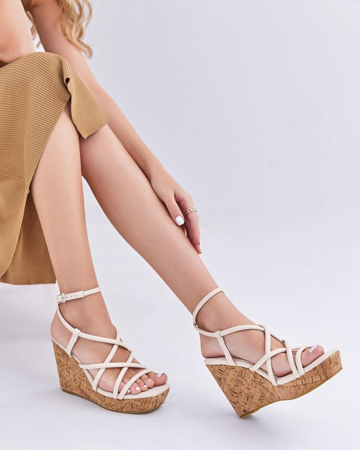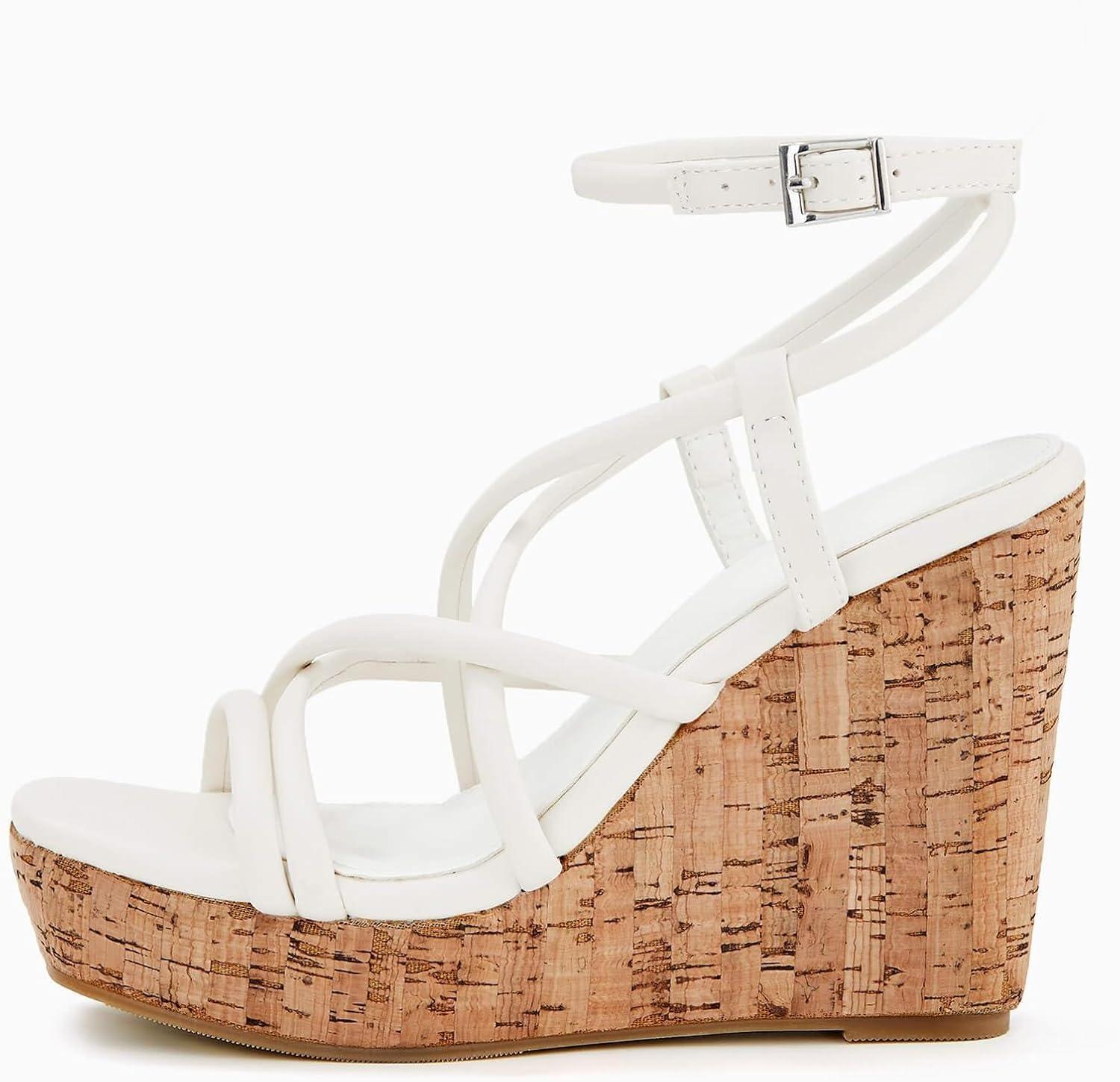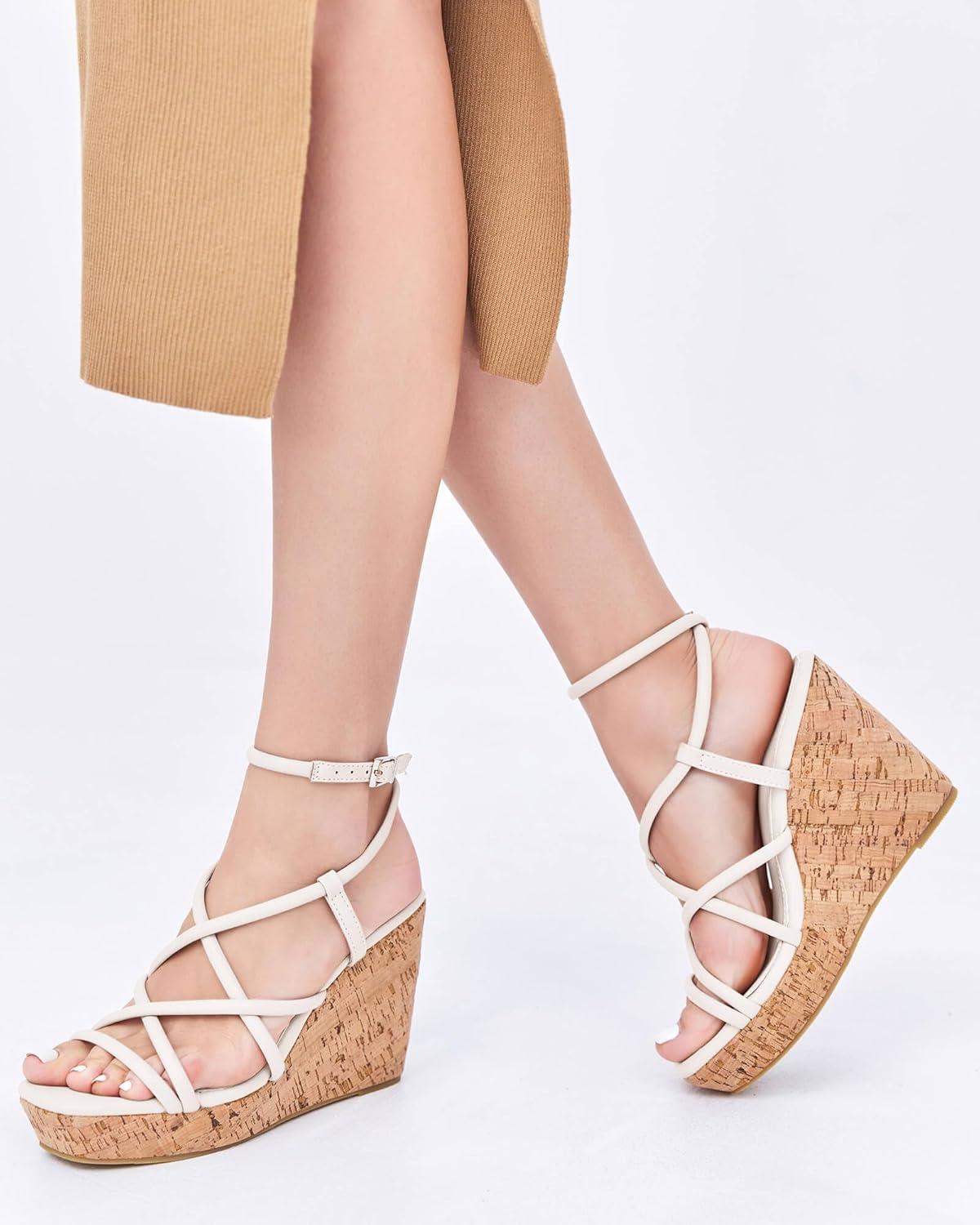 Coutgo Women Platform Wedge Sandals Cork Slingback Wedges Espadrilles Heels Summer Shoes(Off-white)
