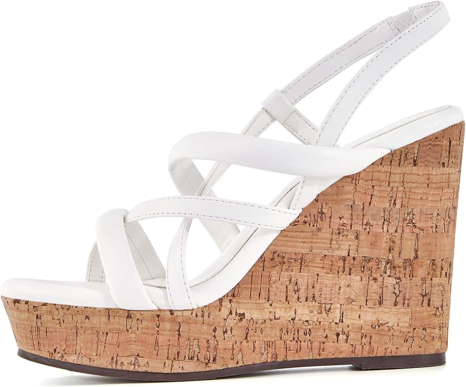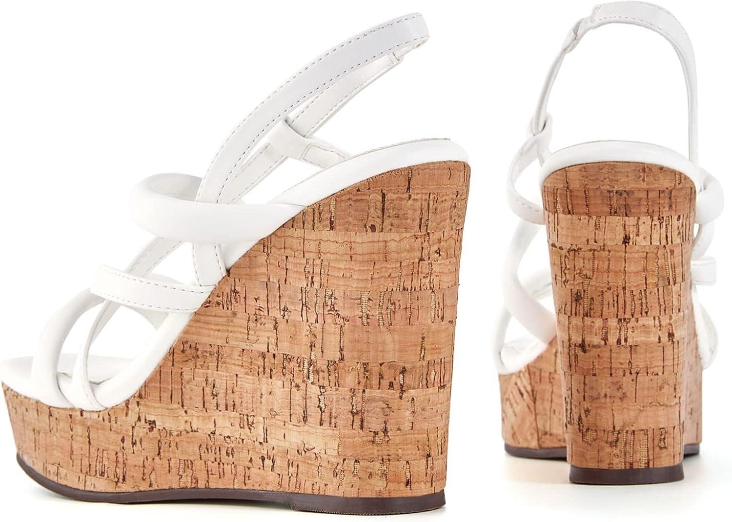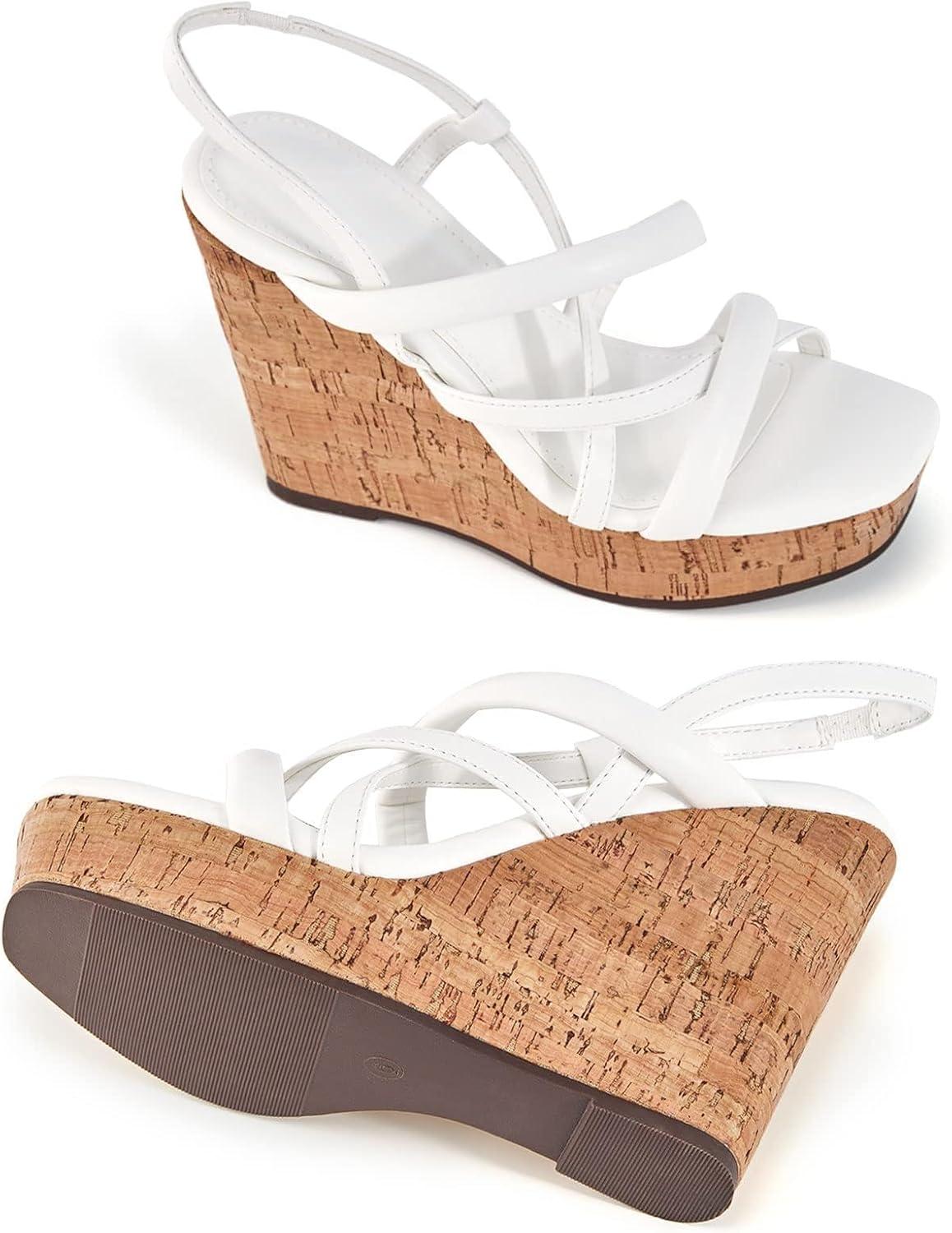 Coutgo Women Platform Wedge Sandals Cork Slingback Wedges Espadrilles Heels Summer Shoes(White)