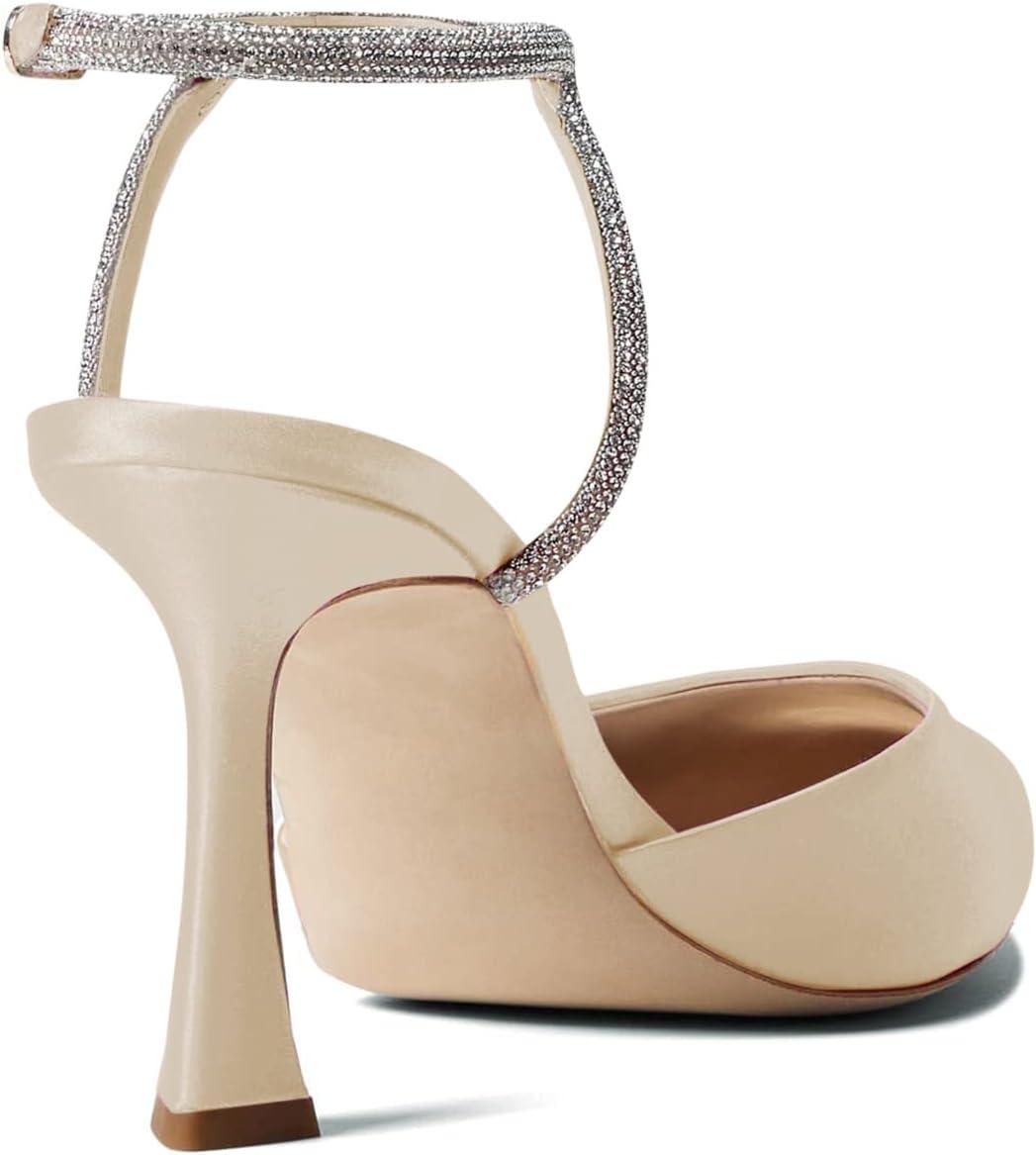 Coutgo Women Rhinestone Heels Kitten High Satin Pumps Pointed Toe Sparkly Sexy Wedding Dress Shoes(Apricot)