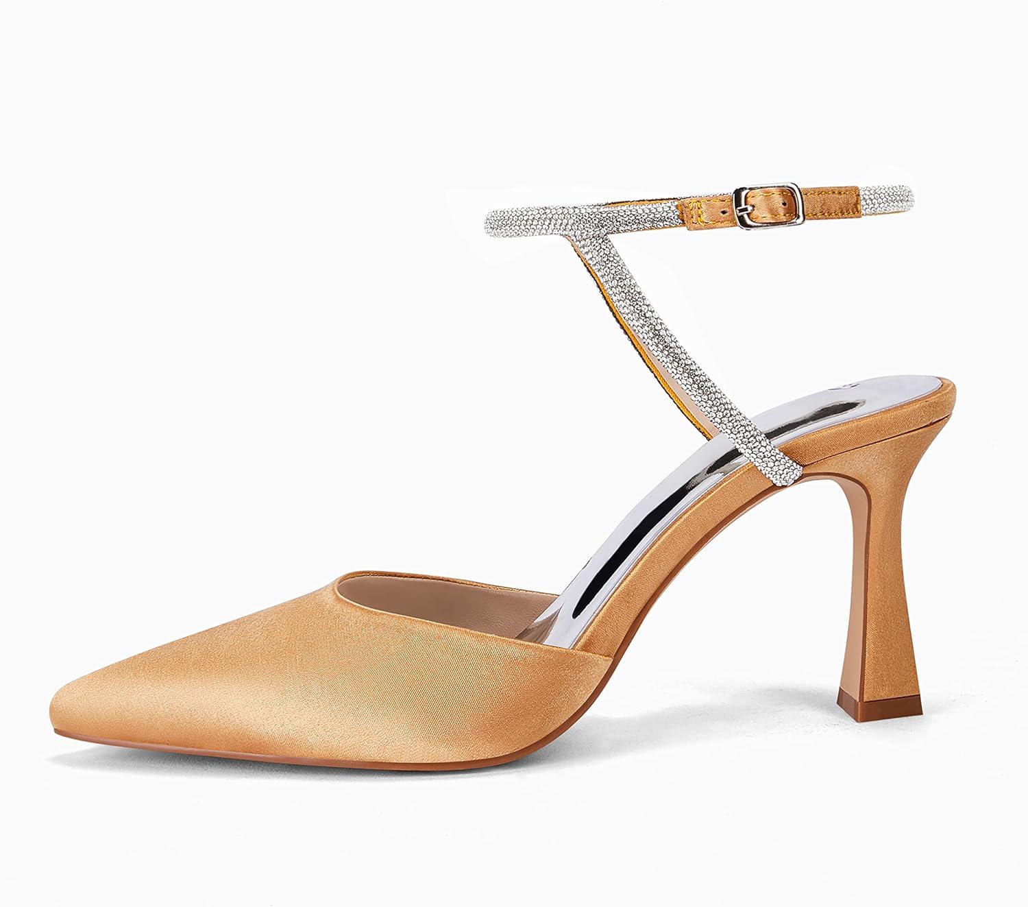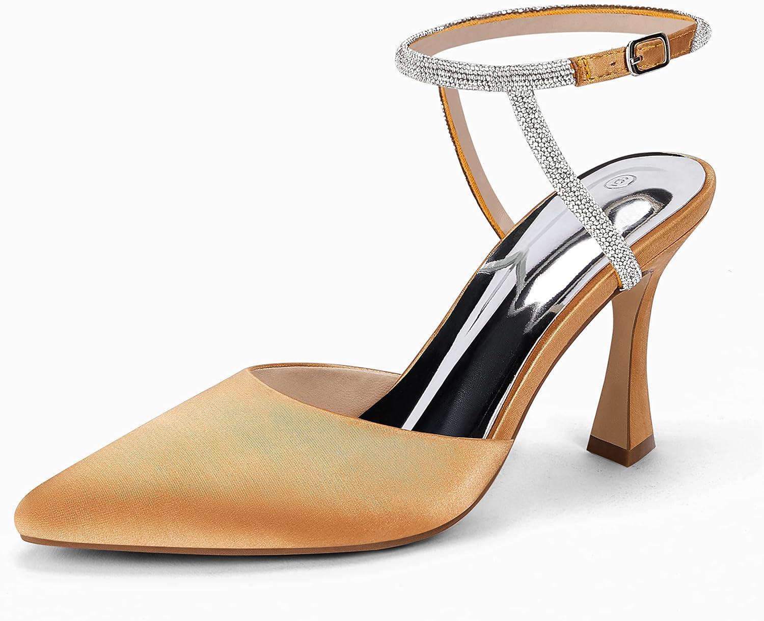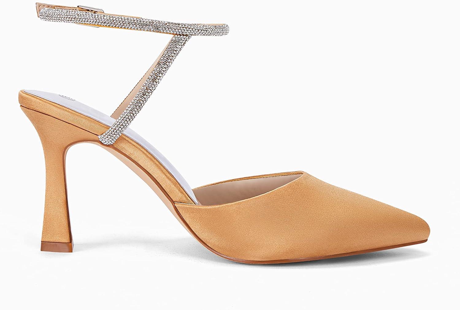 Get up to 50% off on Coutgo Women Rhinestone Heels Kitten High Satin Pumps Pointed Toe Sparkly Sexy Wedding Dress Shoes(Camel) styles during our spring sale event.