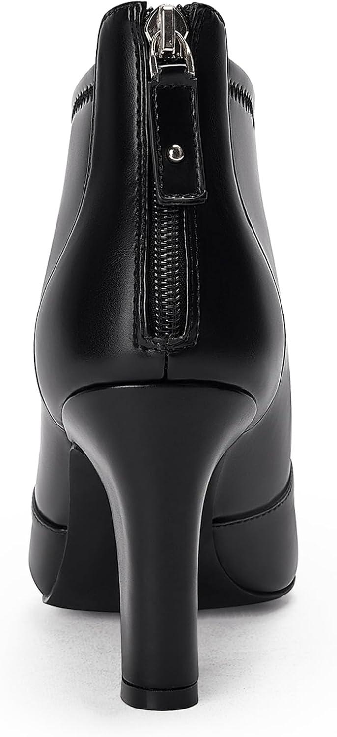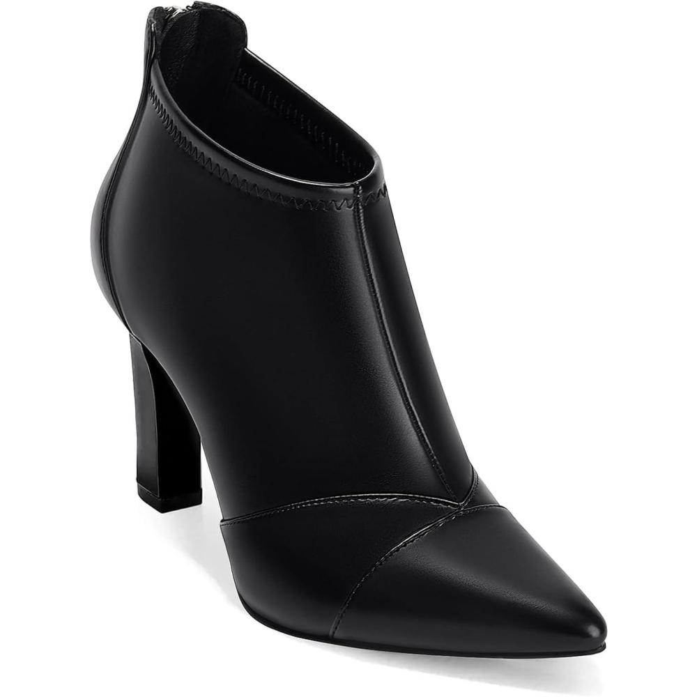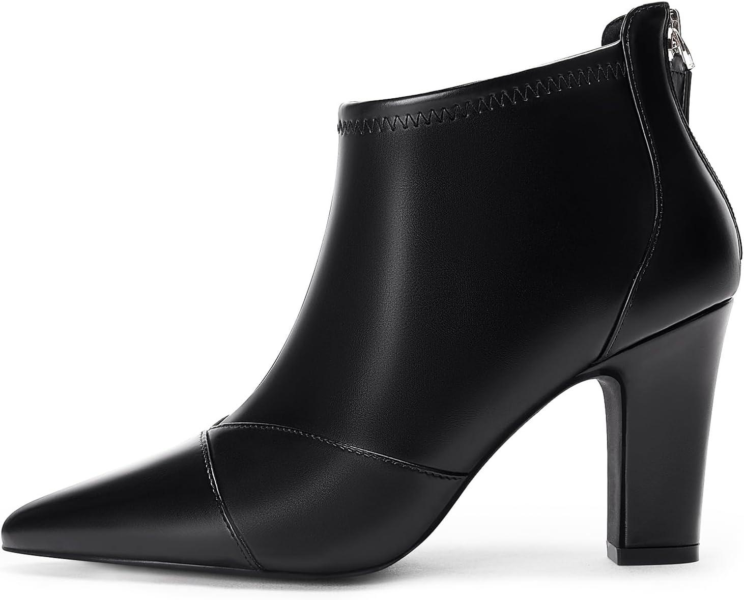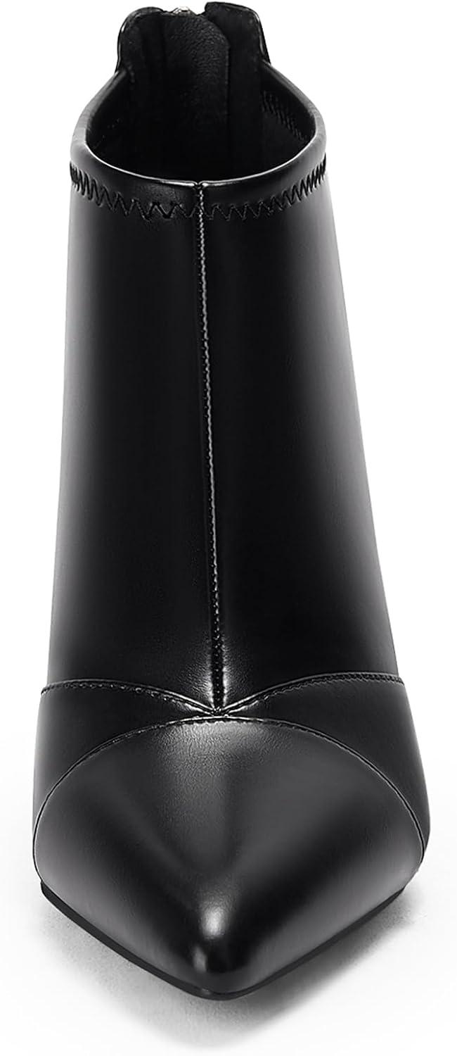 Coutgo Womens Ankle Booties Dress Boots Pointed Toe Stiletto High Heel Splicing Booties Shoes with Back Zipper(Black-leather)