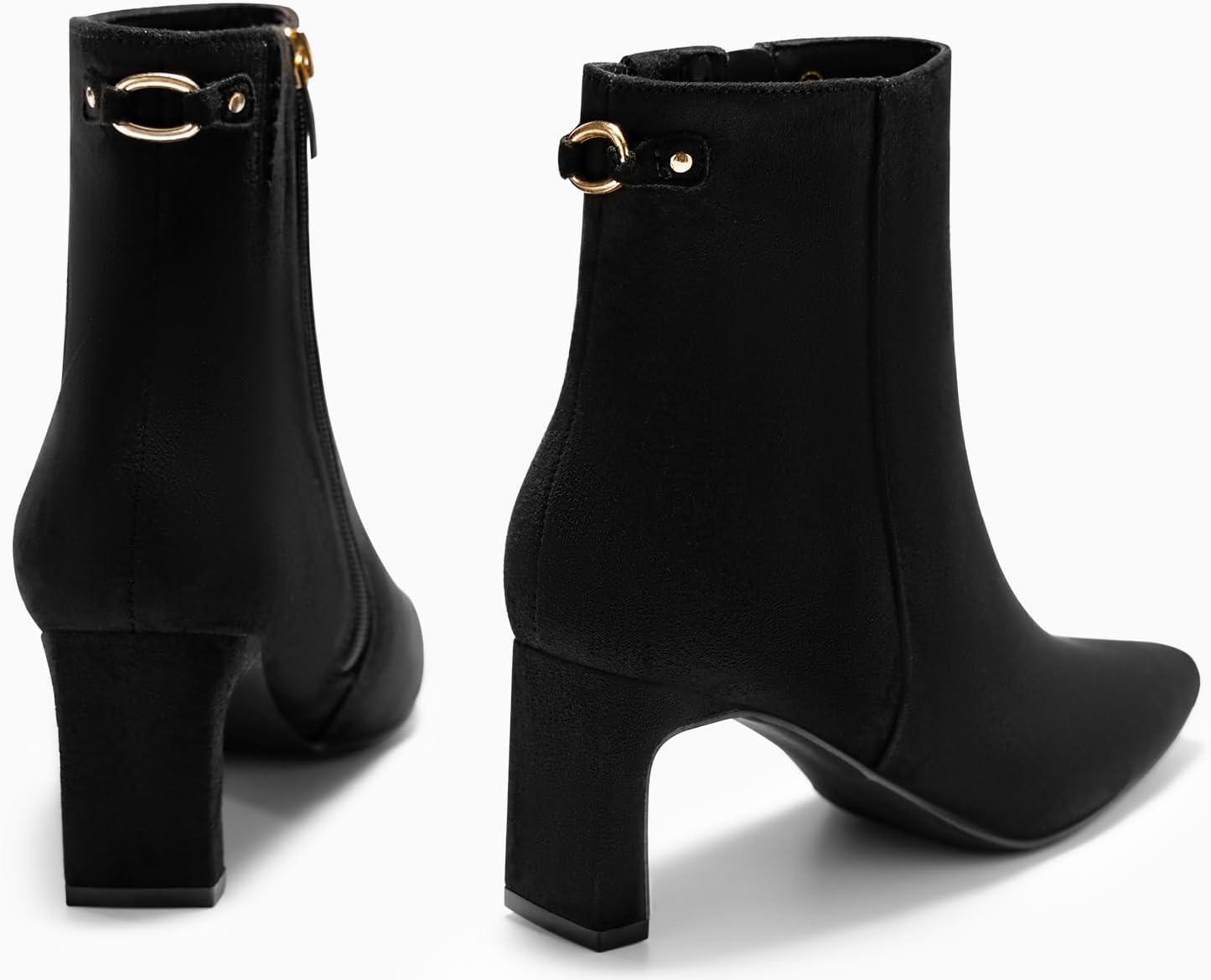 Coutgo Womens Ankle Boots Chunky Heel Closed Square Toe Booties Side Zipper Winter Dress Shoes(Black)