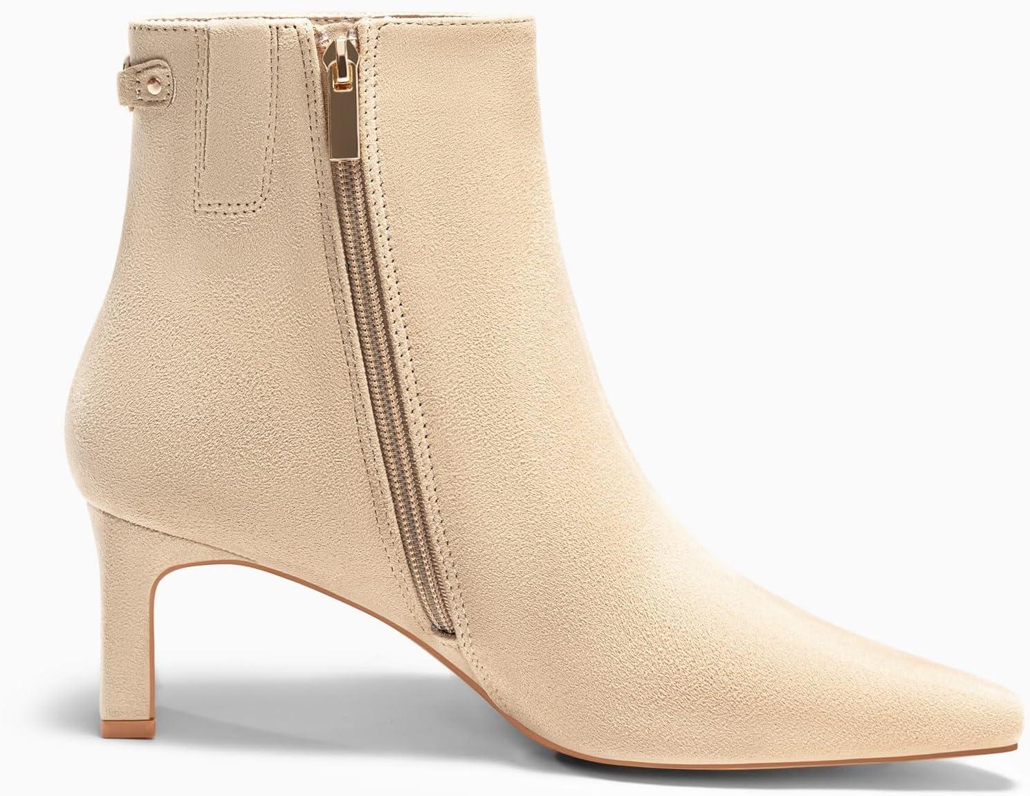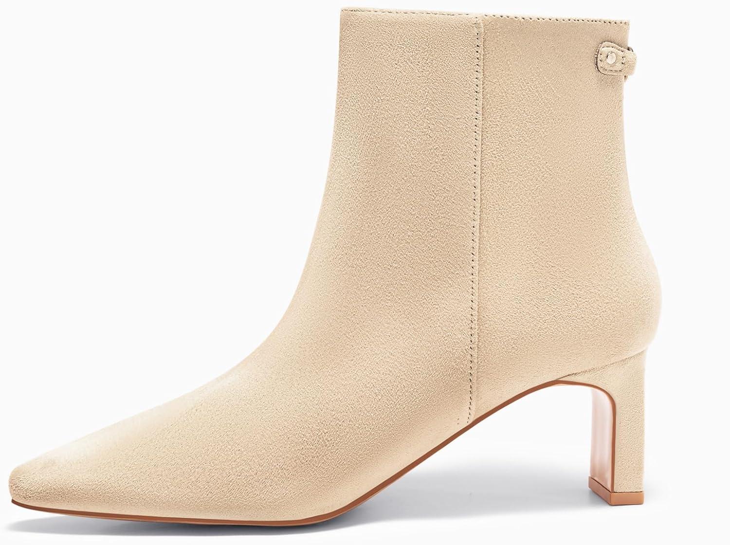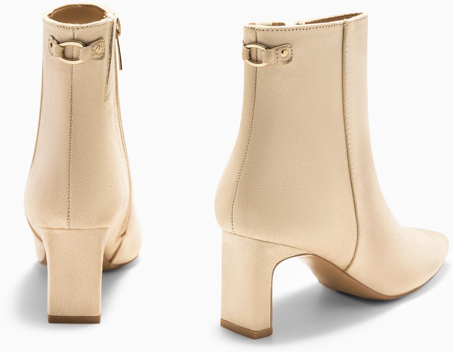 Coutgo Womens Ankle Boots Chunky Heel Closed Square Toe Booties Side Zipper Winter Dress Shoes(Nude)