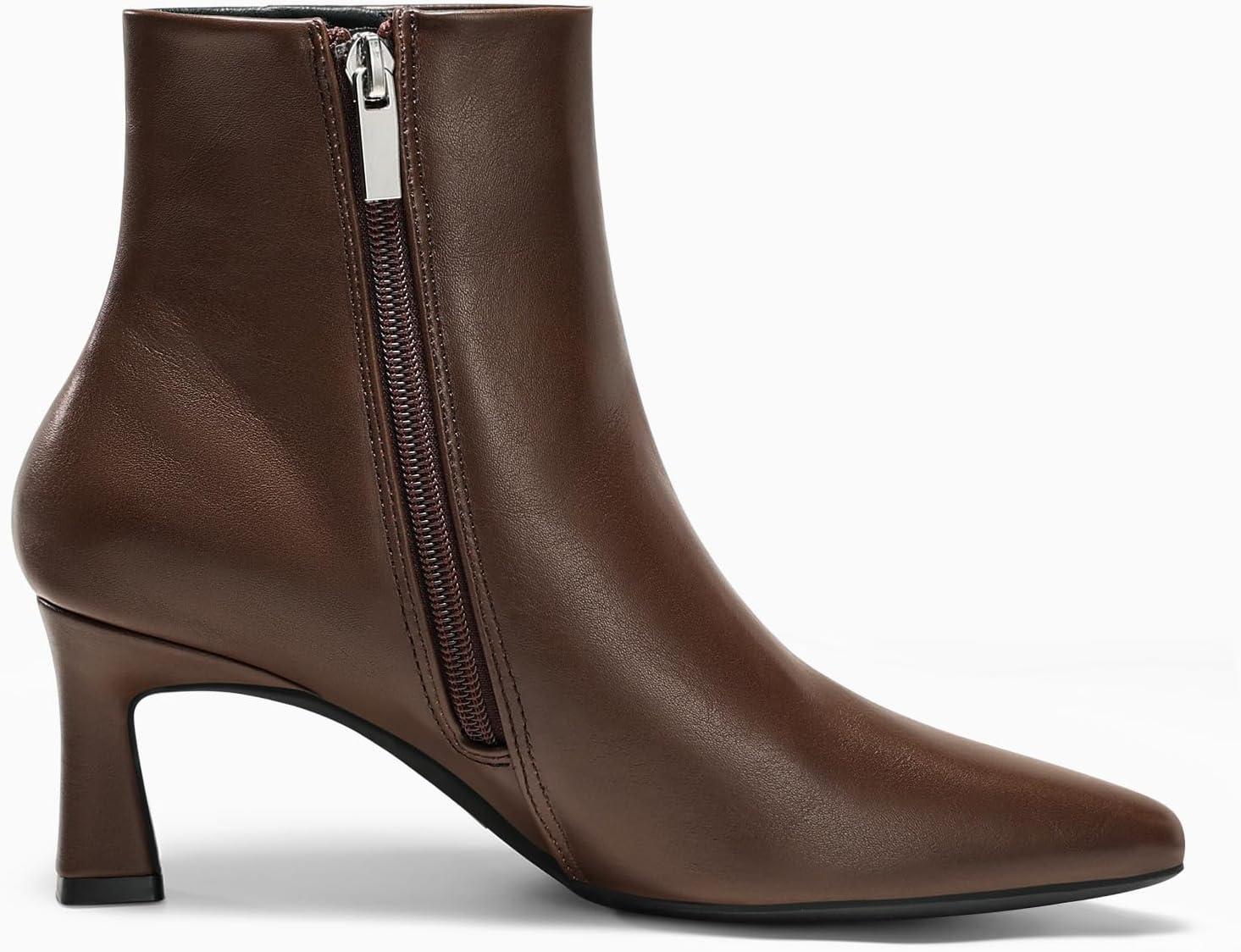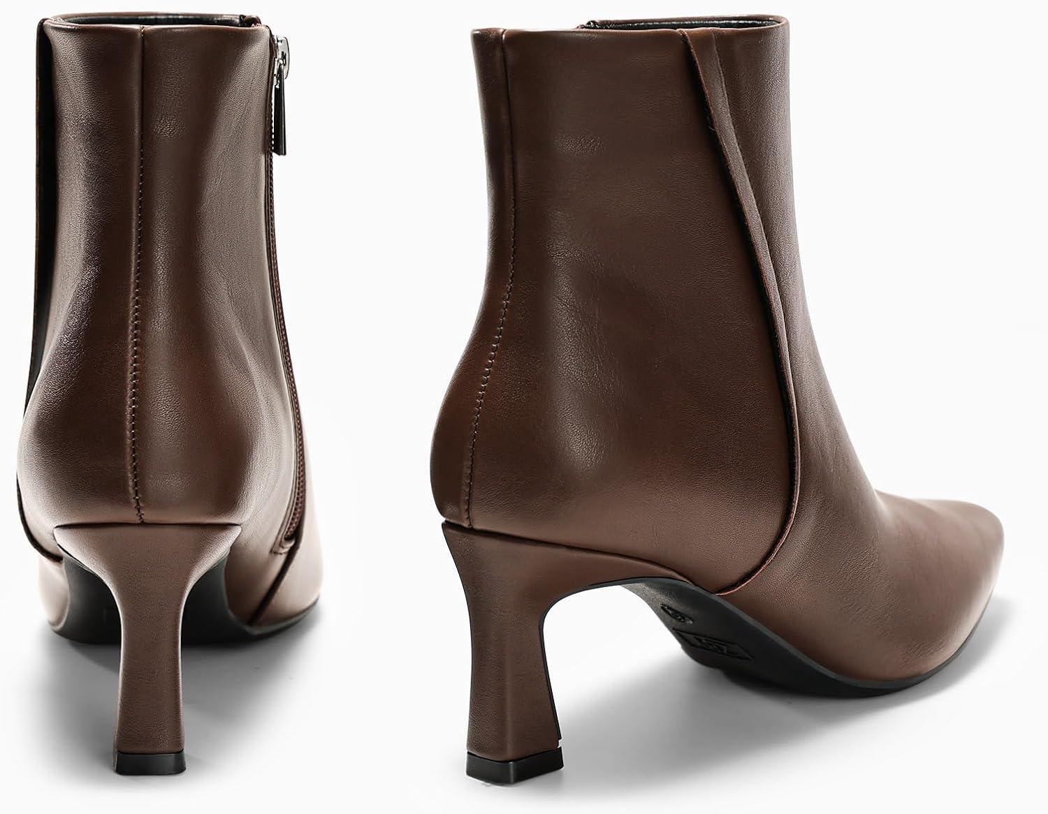 Coutgo Womens Ankle Boots Kitten Low Heel Closed Pointed Booties Side Zipper Winter Dress Shoes(Chocolate Brown)