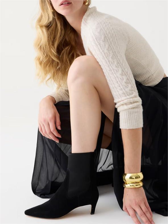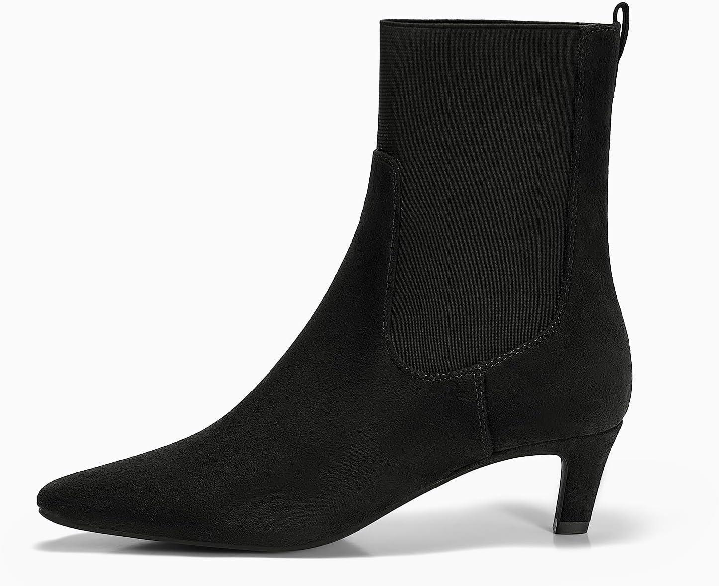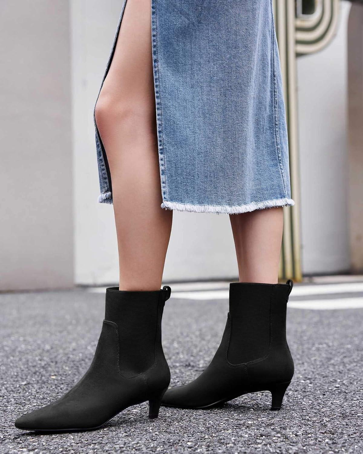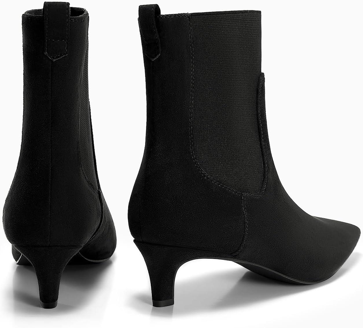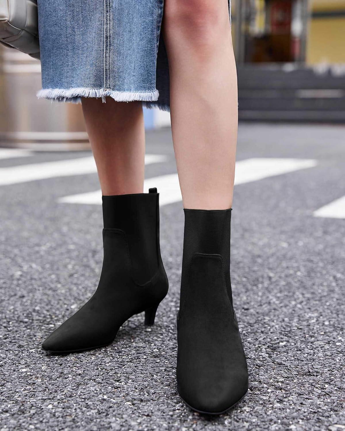 Coutgo Womens Ankle Boots Low Kitten Heel Pointed Toe Slip On Elastic Dressy Fall Winter Booties Shoes(Black)