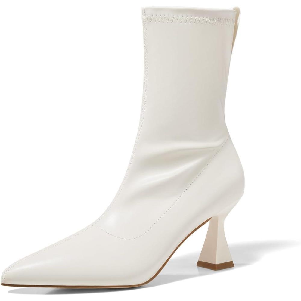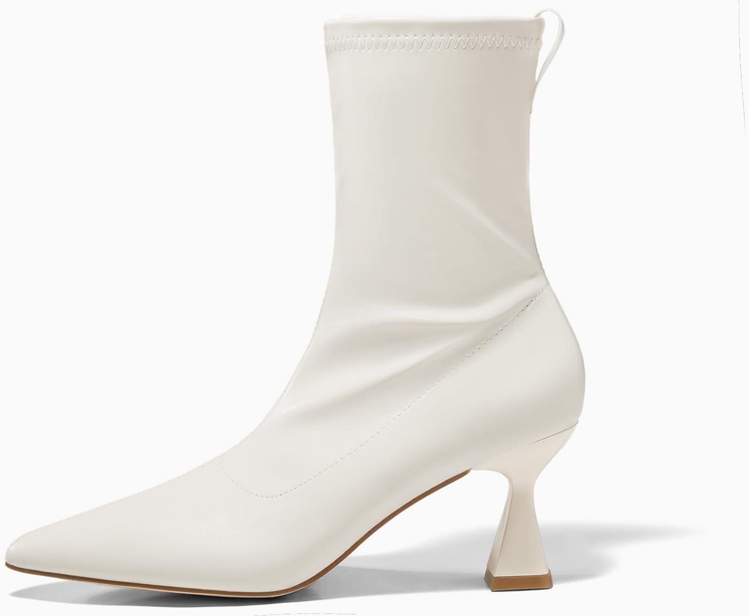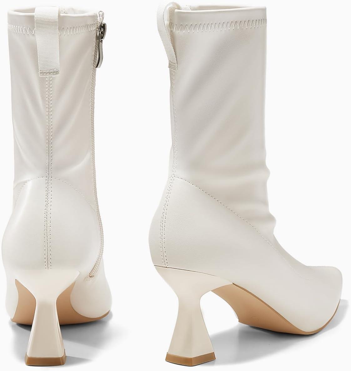 Coutgo Womens Ankle Boots Pointed Toe Low Kitten Heel Side Zipper Office Dress Fall Booties Shoes(Beige)