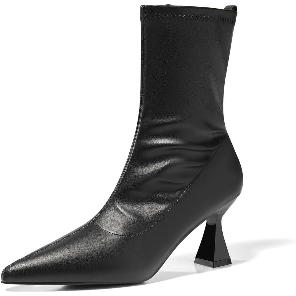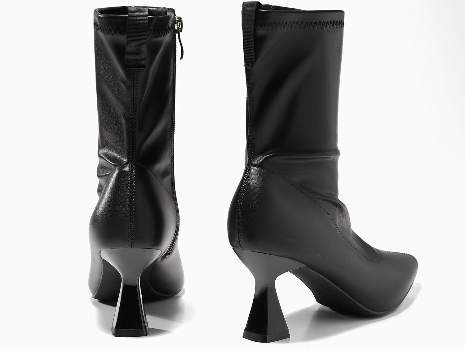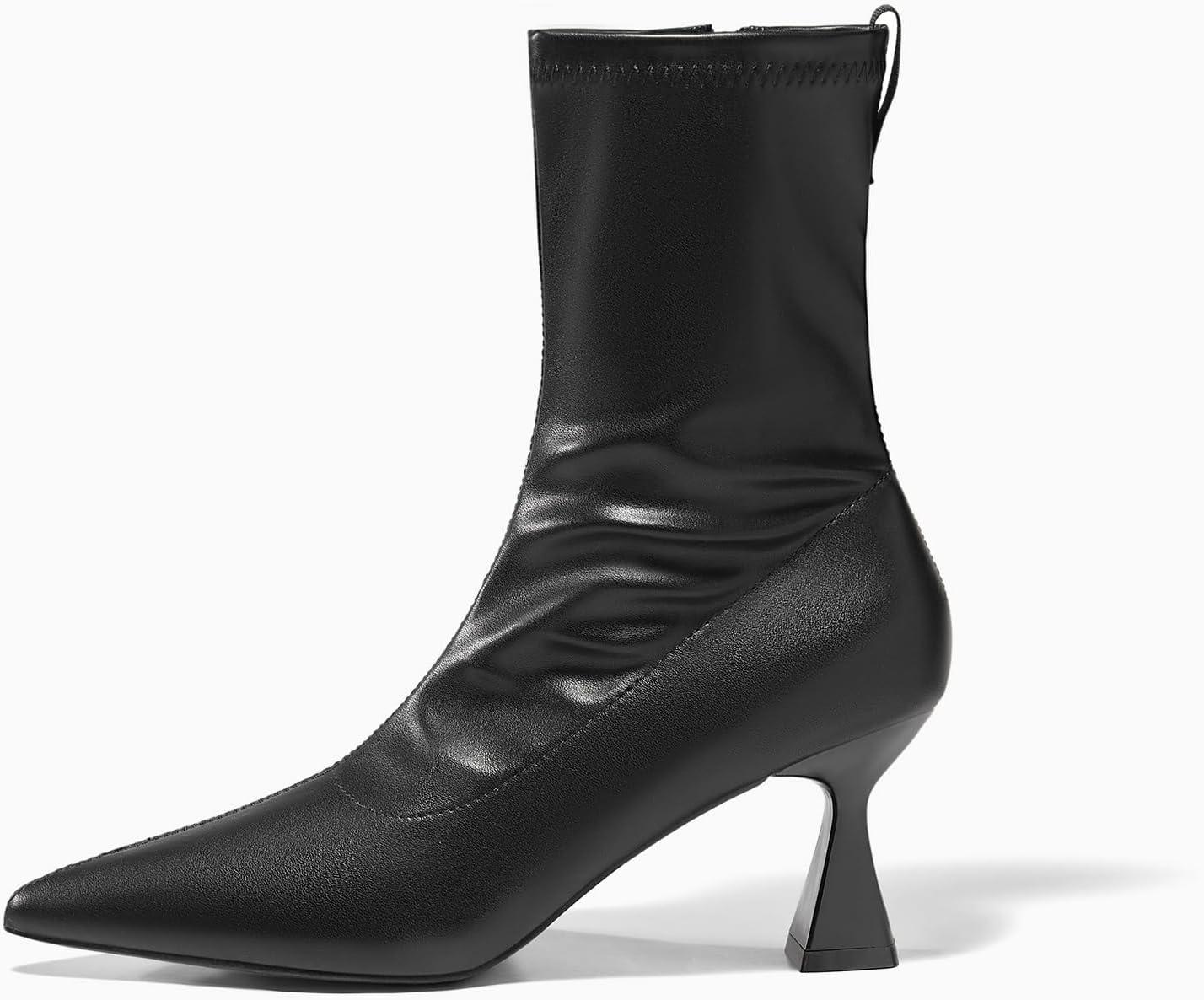 Coutgo Womens Ankle Boots Pointed Toe Low Kitten Heel Side Zipper Office Dress Fall Booties Shoes(Black)