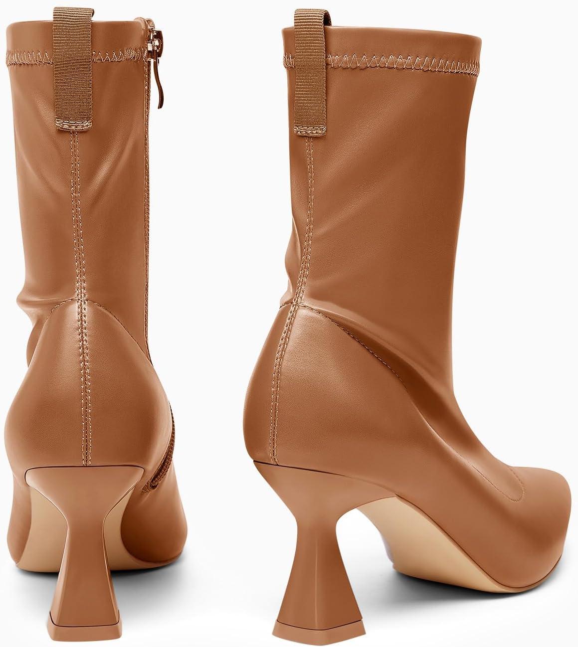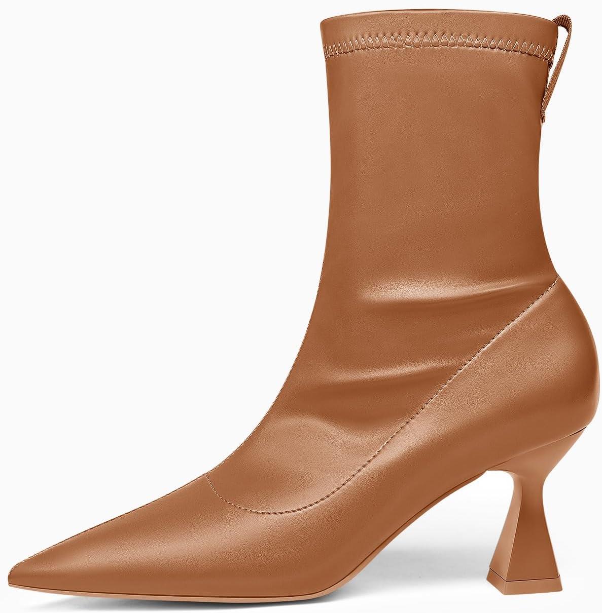 Coutgo Womens Ankle Boots Pointed Toe Low Kitten Heel Side Zipper Office Dress Fall Booties Shoes(Brown)