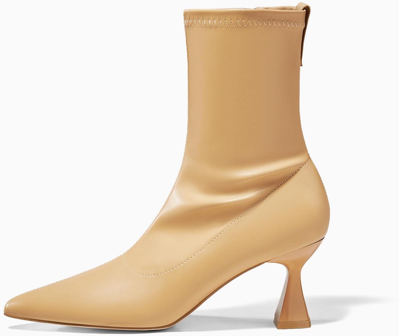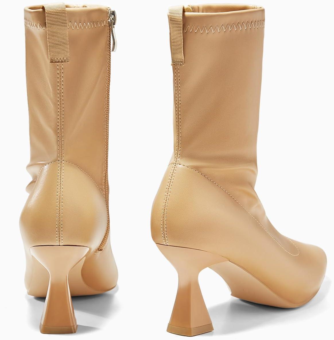 Coutgo Womens Ankle Boots Pointed Toe Low Kitten Heel Side Zipper Office Dress Fall Booties Shoes(Khaki)