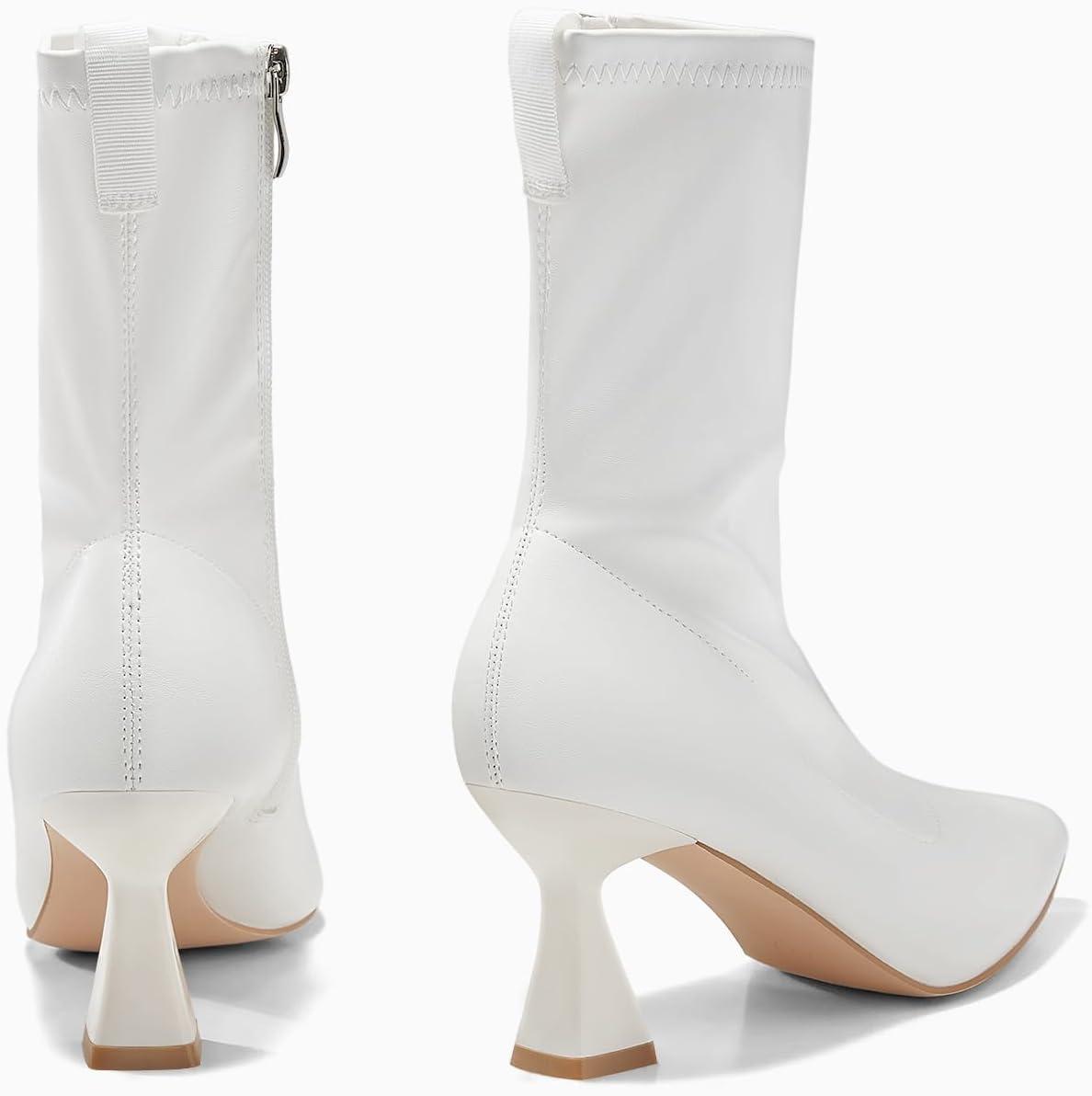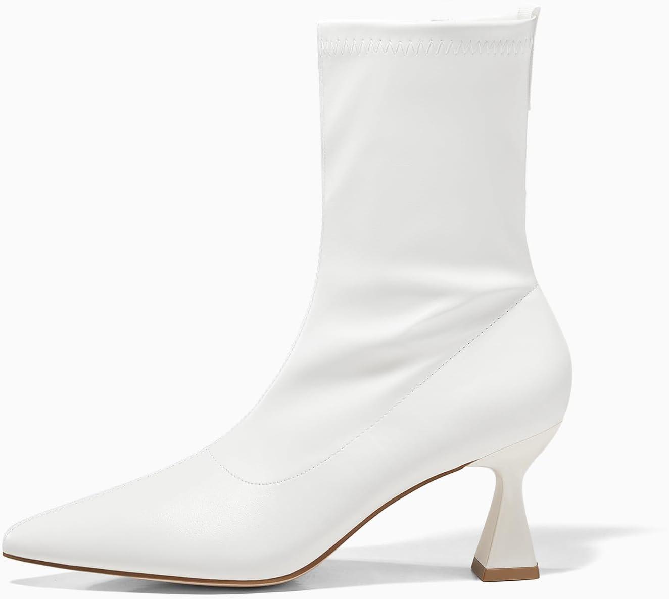 Coutgo Womens Ankle Boots Pointed Toe Low Kitten Heel Side Zipper Office Dress Fall Booties Shoes(White)