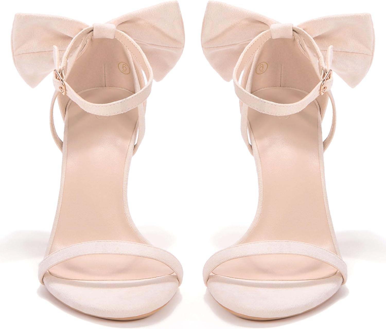Coutgo Womens Ankle Strap High Heels Open Toe Stiletto Bow Tie Knot Heeled Sandals Fashion Wedding Dress Pump Shoes(Beige)