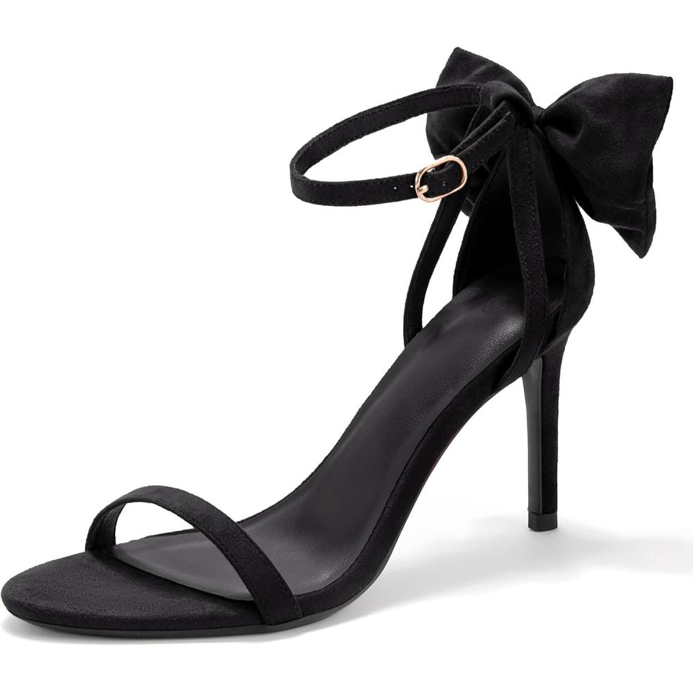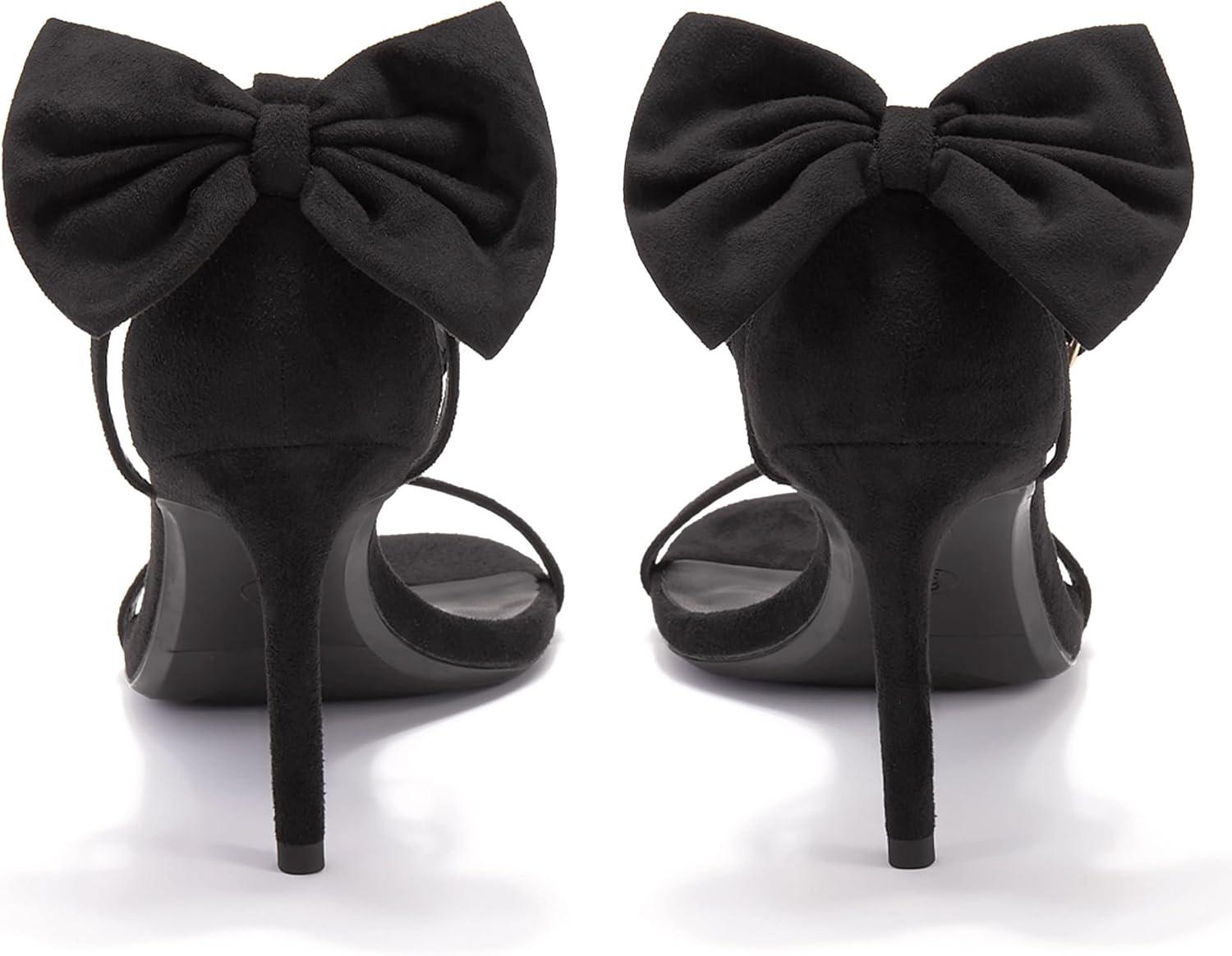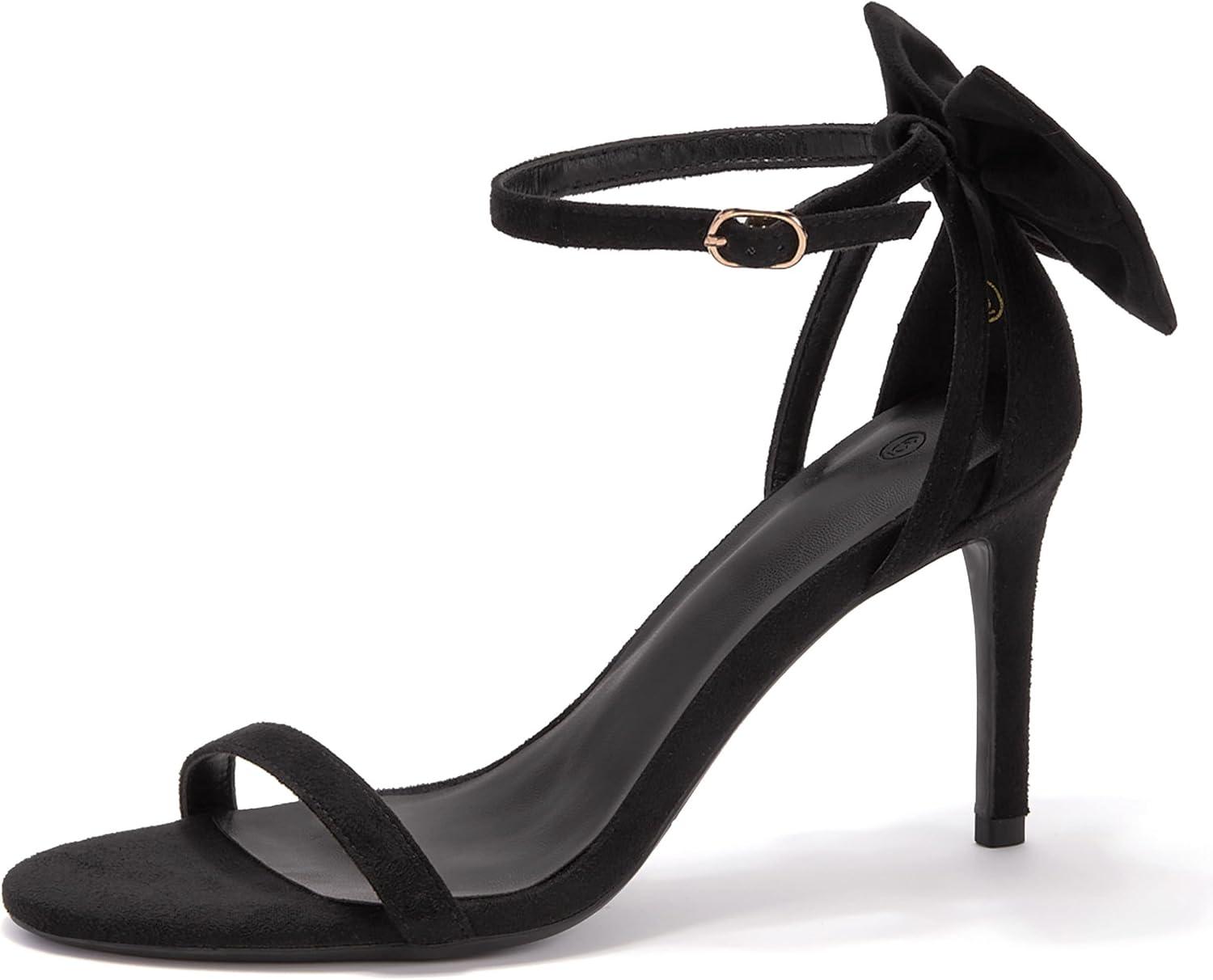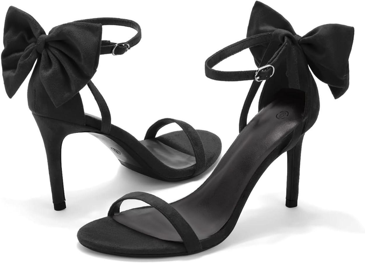 Coutgo Womens Ankle Strap High Heels Open Toe Stiletto Bow Tie Knot Heeled Sandals Fashion Wedding Dress Pump Shoes(Black)