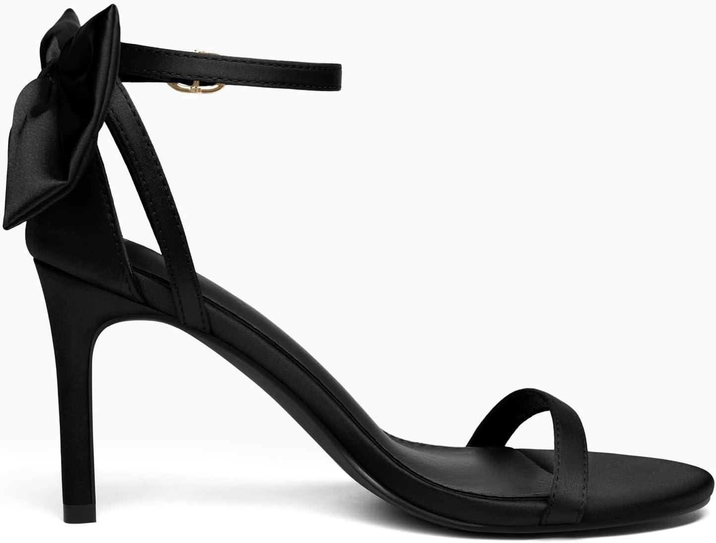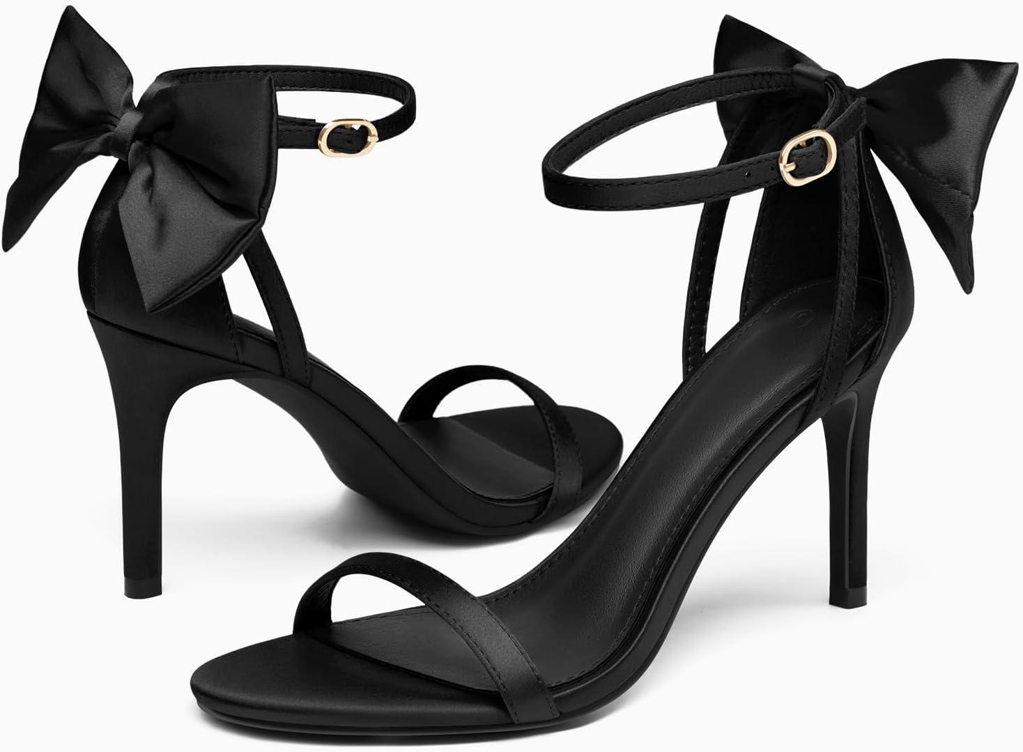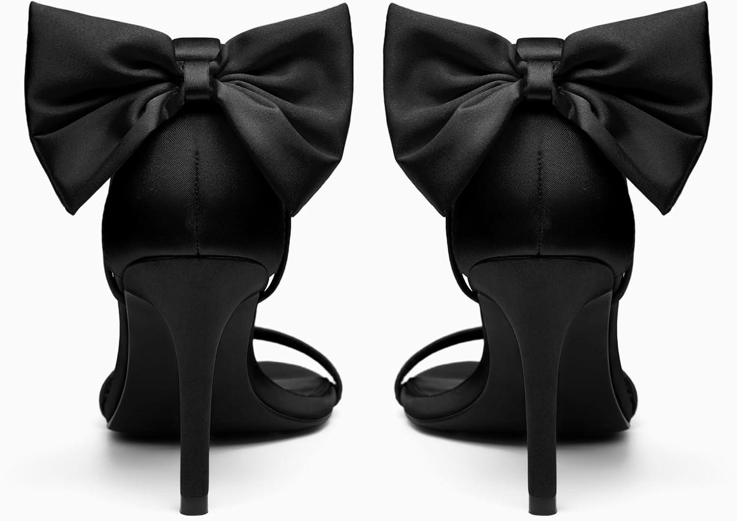 Coutgo Womens Ankle Strap High Heels Open Toe Stiletto Bow Tie Knot Heeled Sandals Fashion Wedding Dress Pump Shoes(Polish Black)