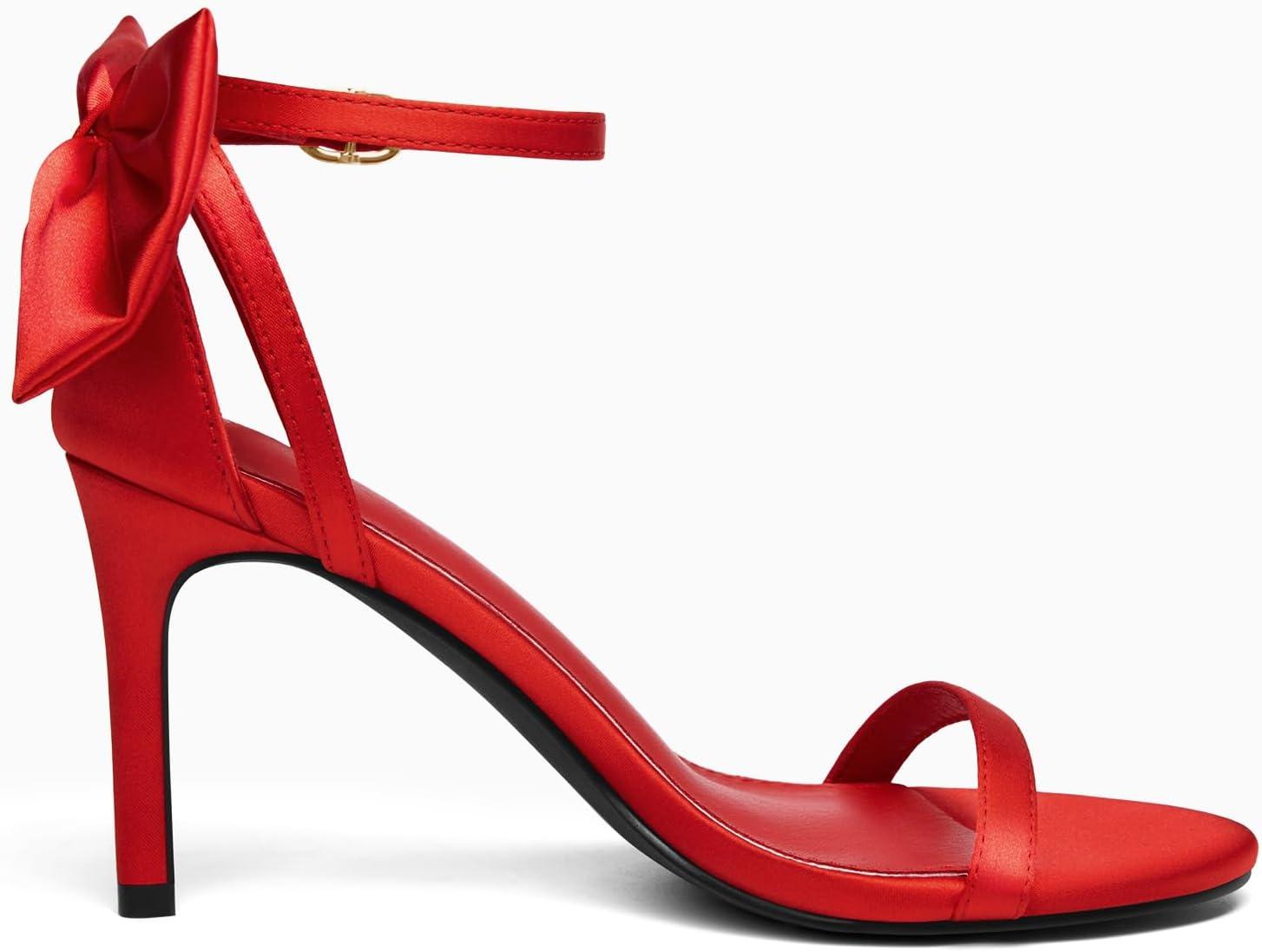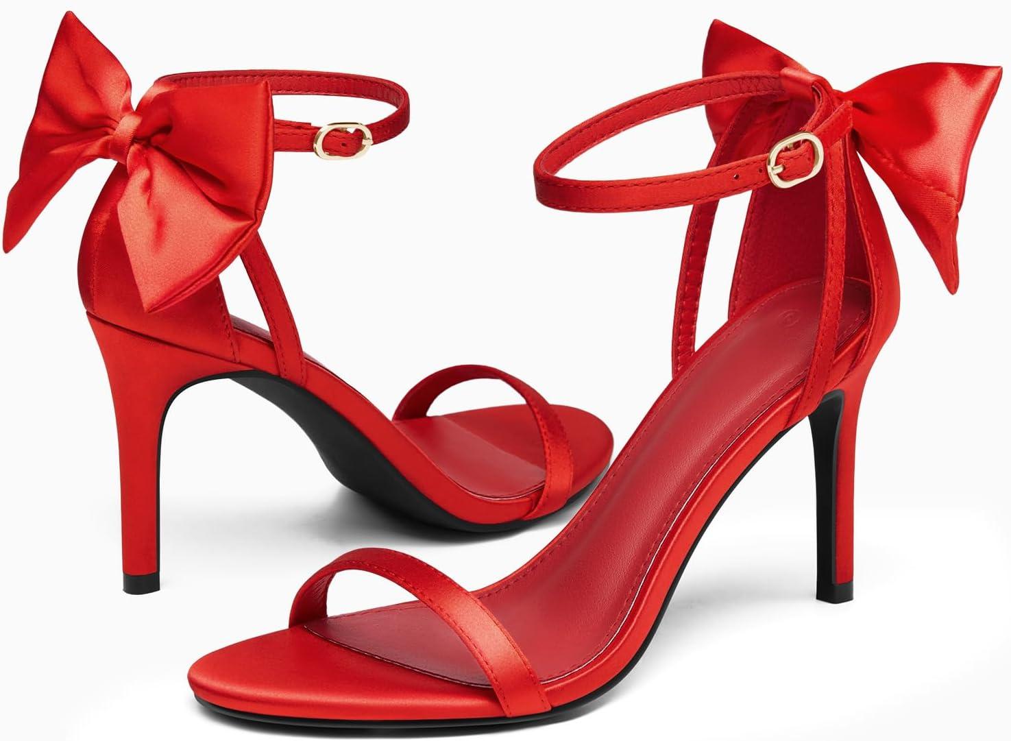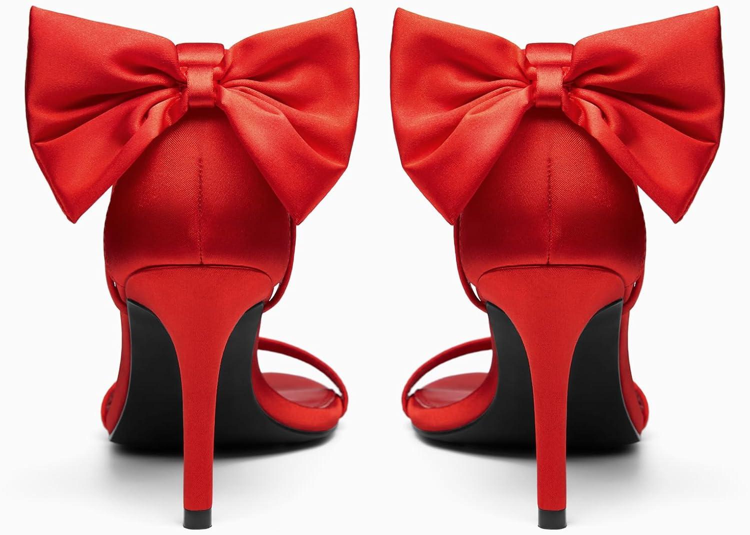 Coutgo Womens Ankle Strap High Heels Open Toe Stiletto Bow Tie Knot Heeled Sandals Fashion Wedding Dress Pump Shoes(Wine Red(satin))