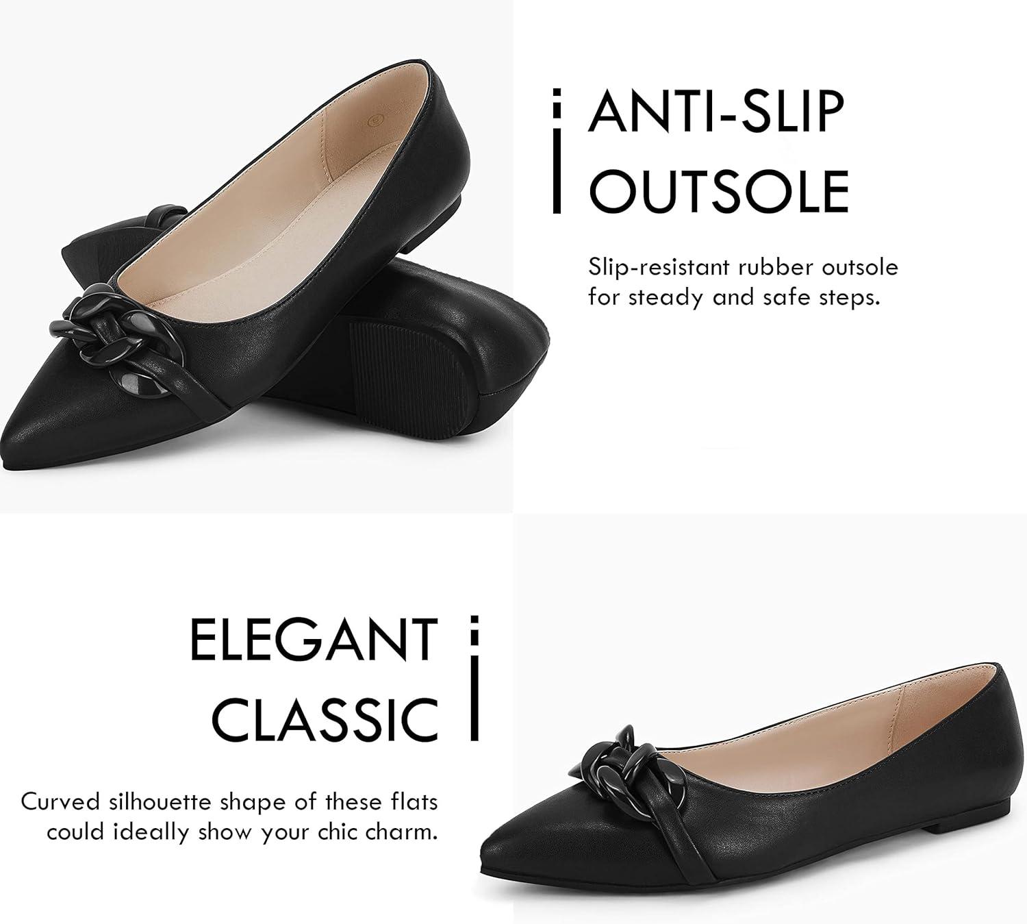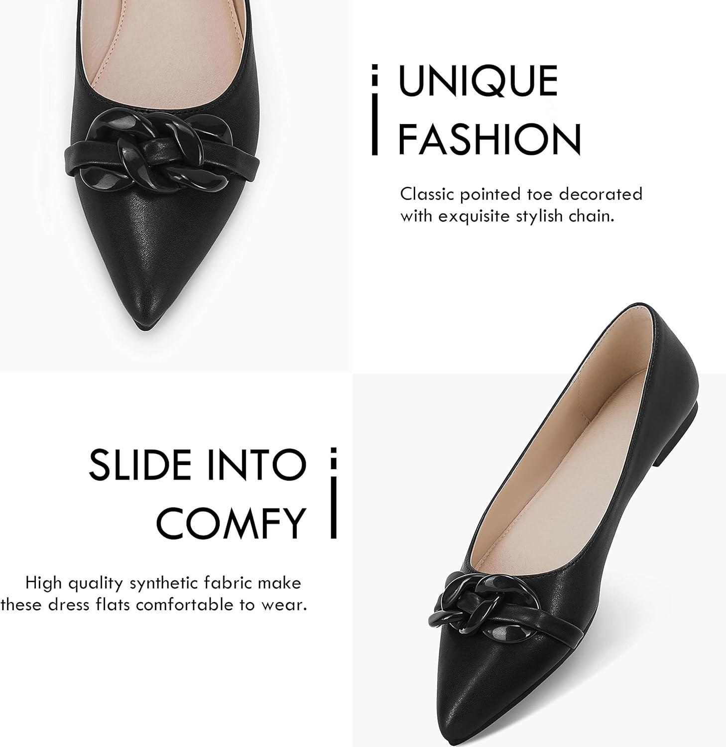 Coutgo Women’s Ballet Flats Chain Pointed Toe Slip On Flats Shoes for Women Dressy Comfort Loafers(Black)