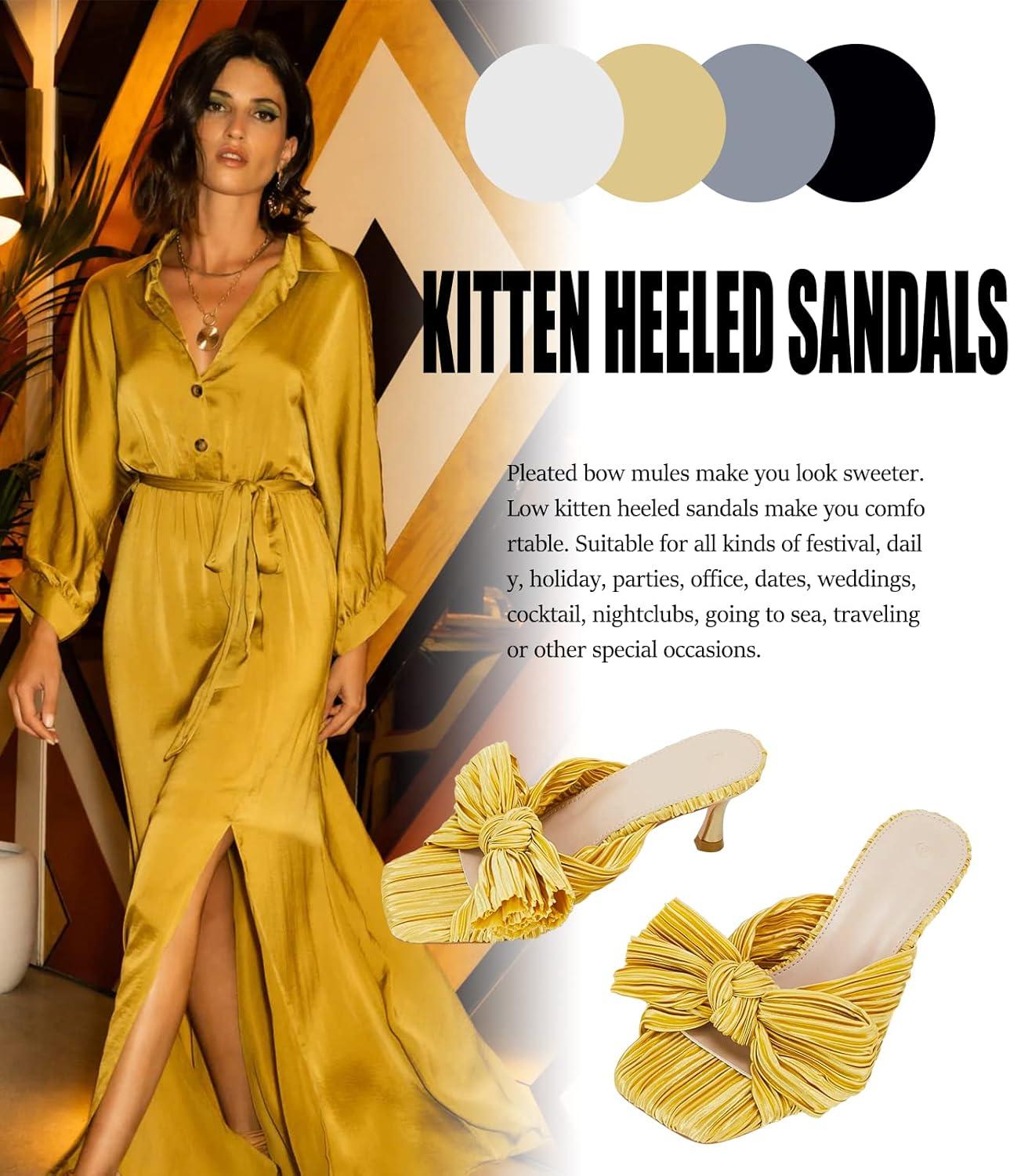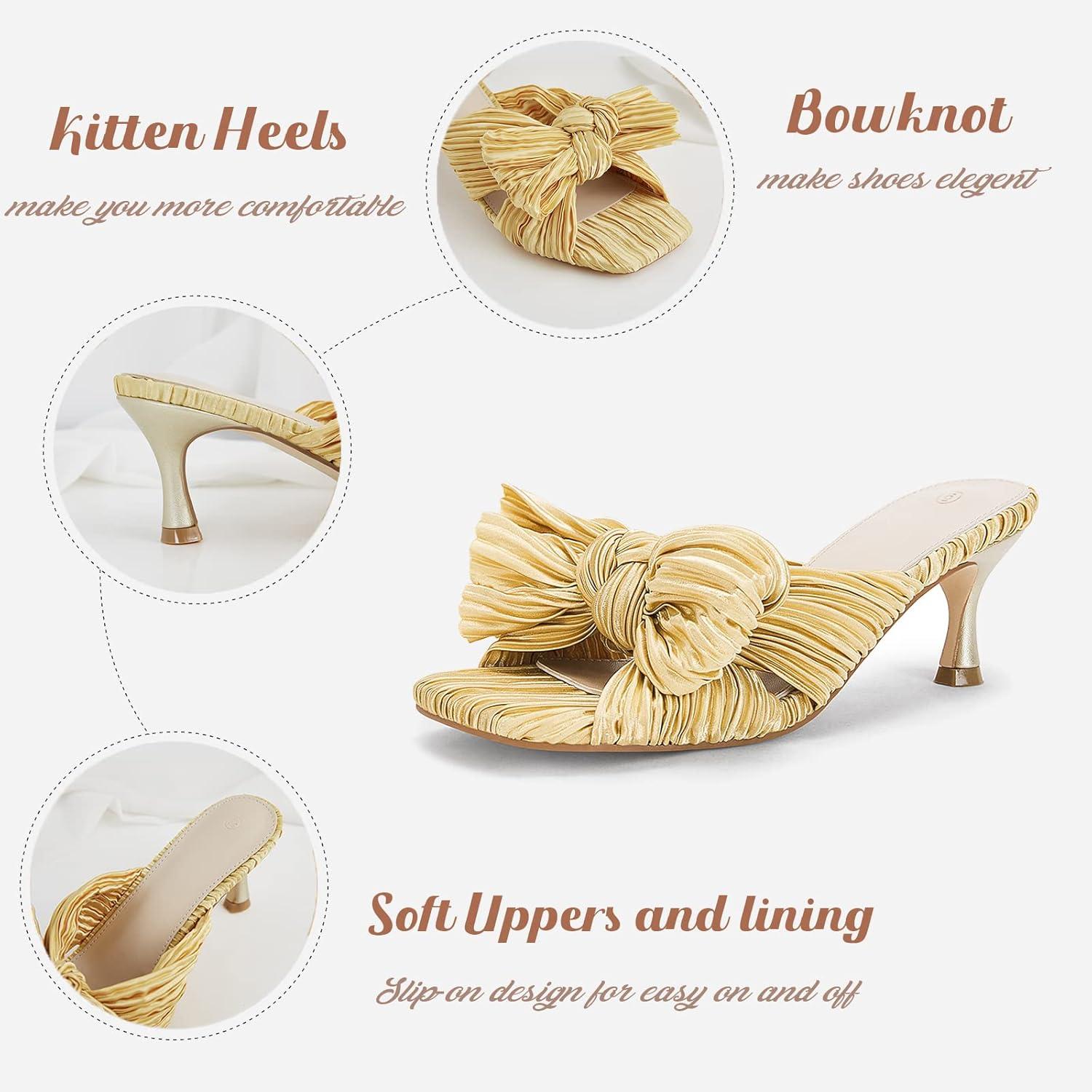 Our holiday sale features the best deals on Coutgo Womens Bow Heeled Sandals Pleated Bowknot Heels Open Square Toe Cute Kitten Heel Mules Slip On Wedding Dress Shoes(Gold) and accessories. Shop now and save!