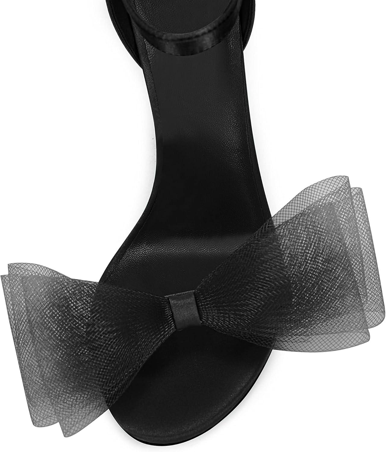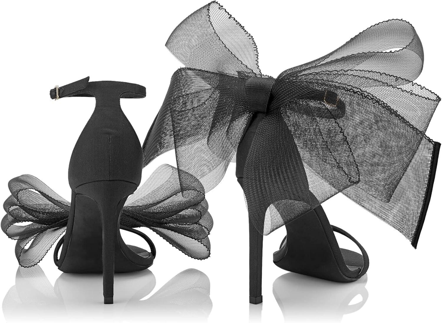 Coutgo Women’s Bow Heels Open Toe Stiletto Heels One Strap Party Summer High Heeled Sandals Asymmetric Non-Removable Bow Knot(Black)