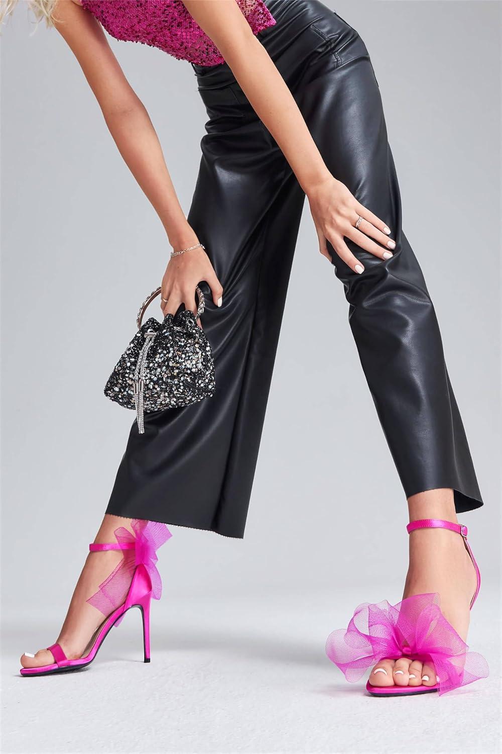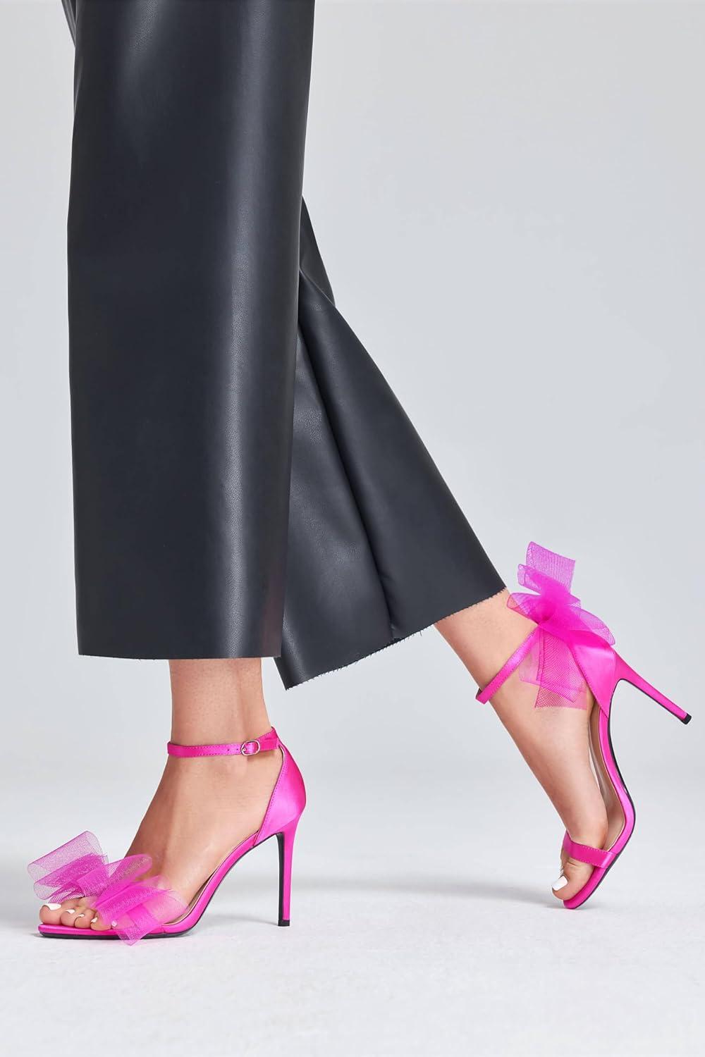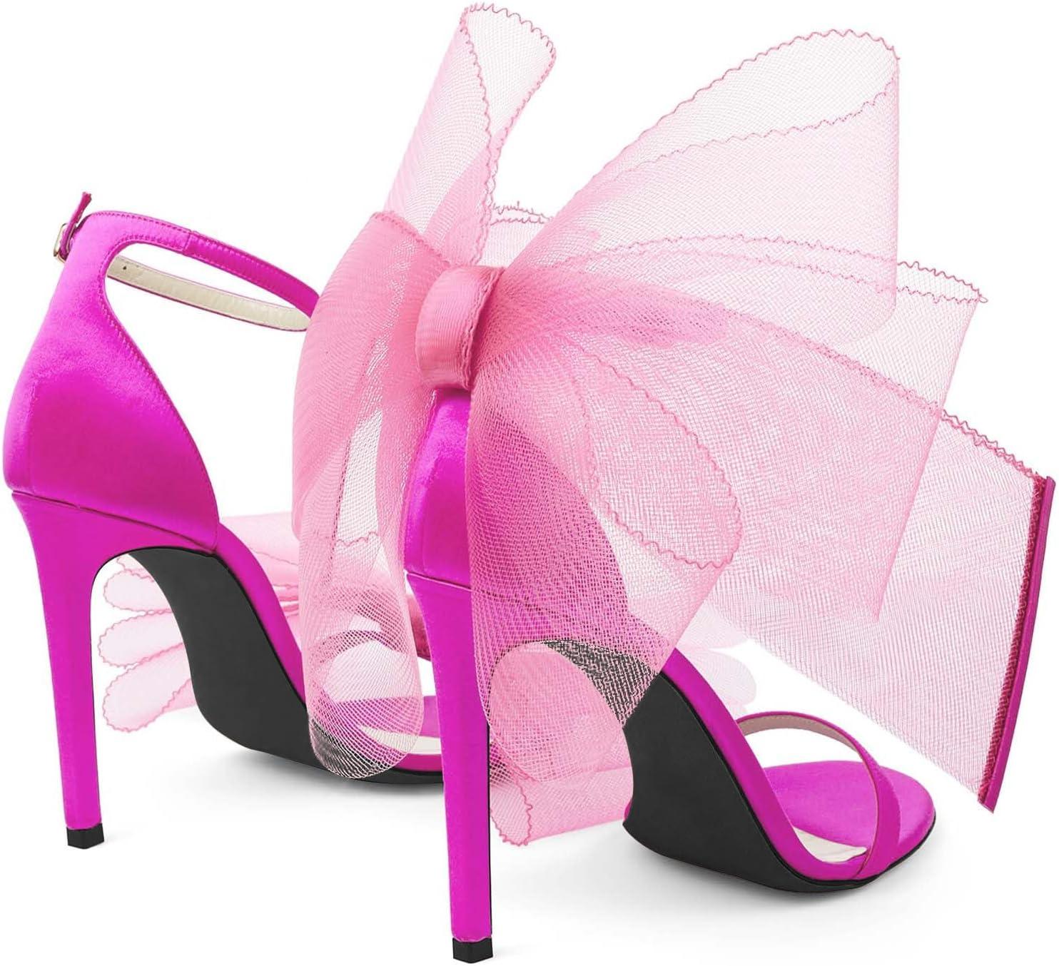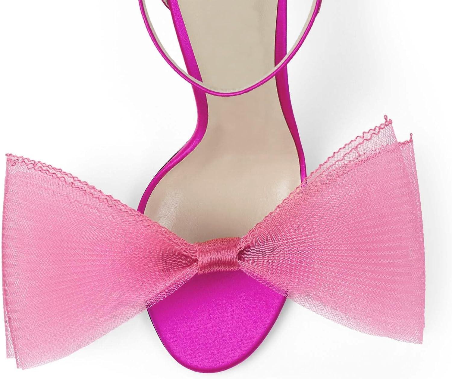Coutgo Women’s Bow Heels Open Toe Stiletto Heels One Strap Party Summer High Heeled Sandals Asymmetric Non-Removable Bow Knot(Hot Pink)