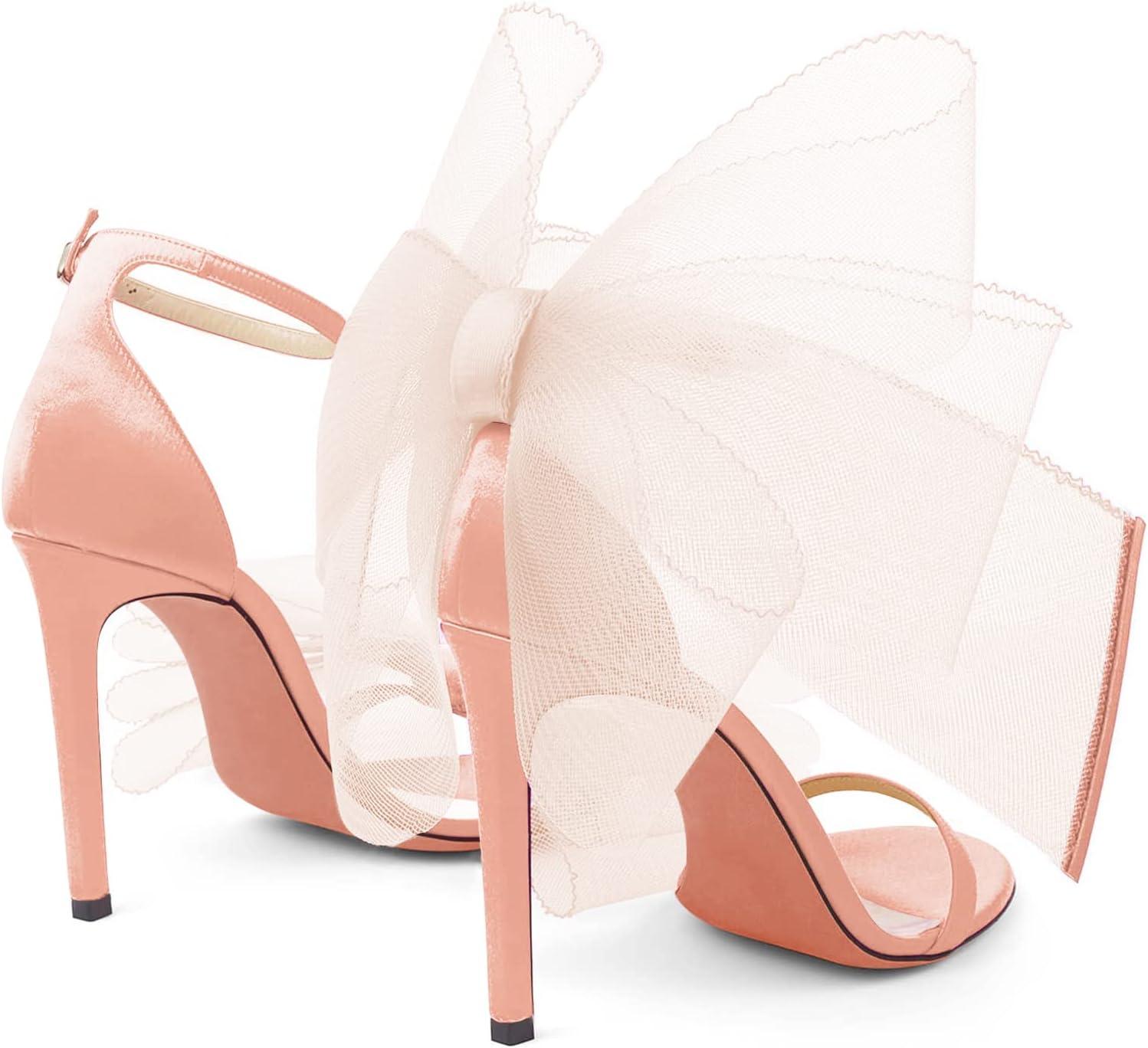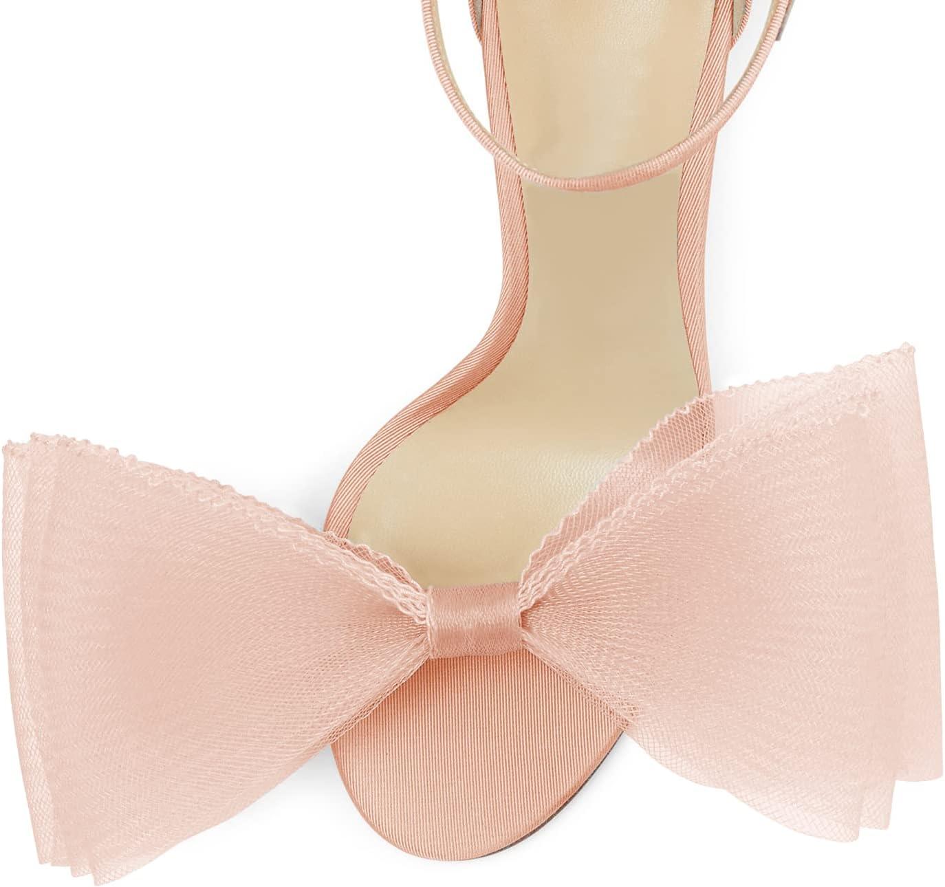 Coutgo Women’s Bow Heels Open Toe Stiletto Heels One Strap Party Summer High Heeled Sandals Asymmetric Non-Removable Bow Knot(Khaki)