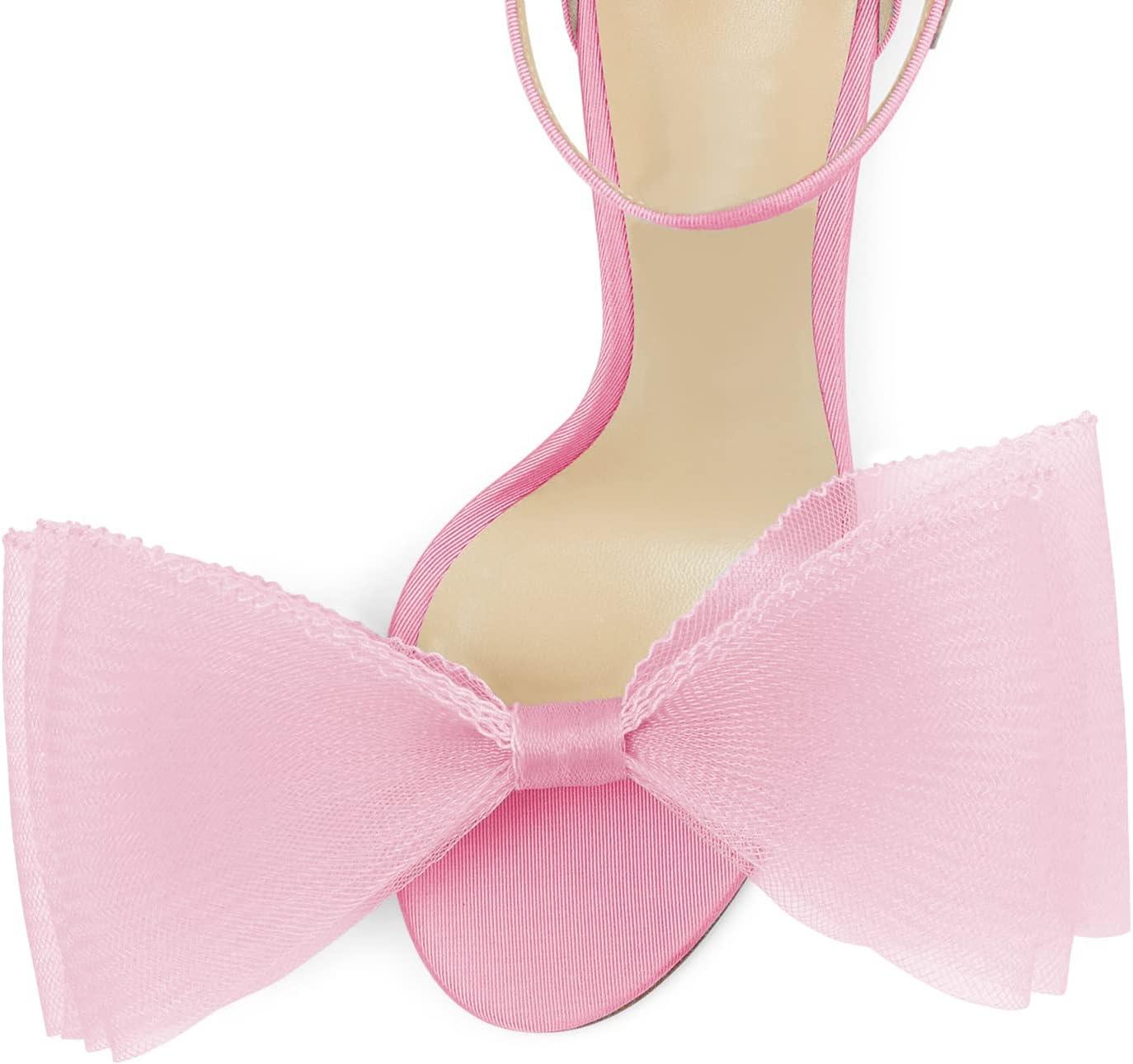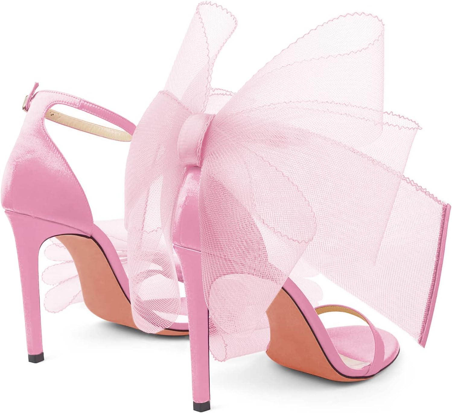 Coutgo Women’s Bow Heels Open Toe Stiletto Heels One Strap Party Summer High Heeled Sandals Asymmetric Non-Removable Bow Knot(Pink)