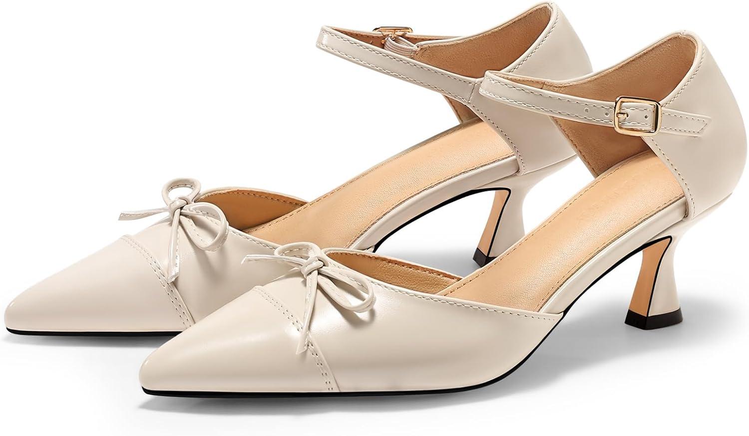 Be the first to review “Coutgo Womens Bow Kitten Heels Low Heel Dress Shoes Closed Pointed Toe Ankle Strap D’Orsay Pumps(Beige)”